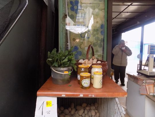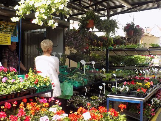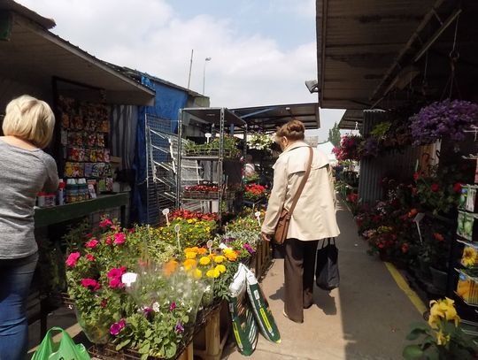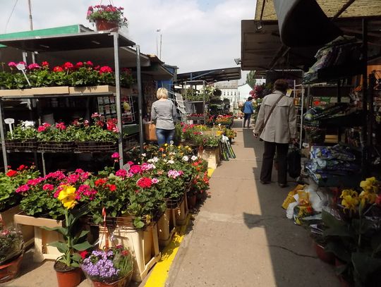 Wiatr ucichł i nie zdążył rozwiać śmieci z przepełnionego wiadra. Gołębie korzystają i wyjadają resztki deseru. Powodzeniem cieszą się wszystkie wiosenne nowości: kapusta, szczaw, szczypiorek, sałata. Sadzonki czekają na posadzenie w ogródkach działkowych. Na widok całej gamy kolorowych, przeróżnych kwiatów trudno się nie uśmiechać. Przy okazji nowalijkowych i kwiatowych zakupów zainteresowaniem kupujących cieszą się również inne stoiska. No i proszę co może zrobić słońce, które sobie przypomniało, że jest wiosna.