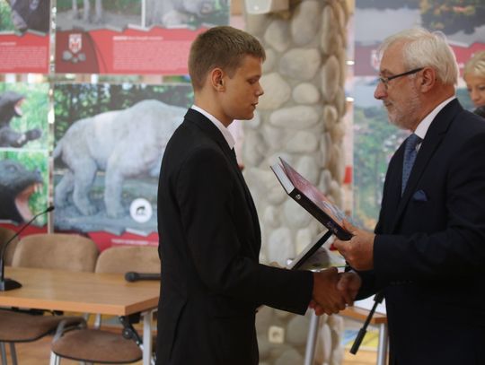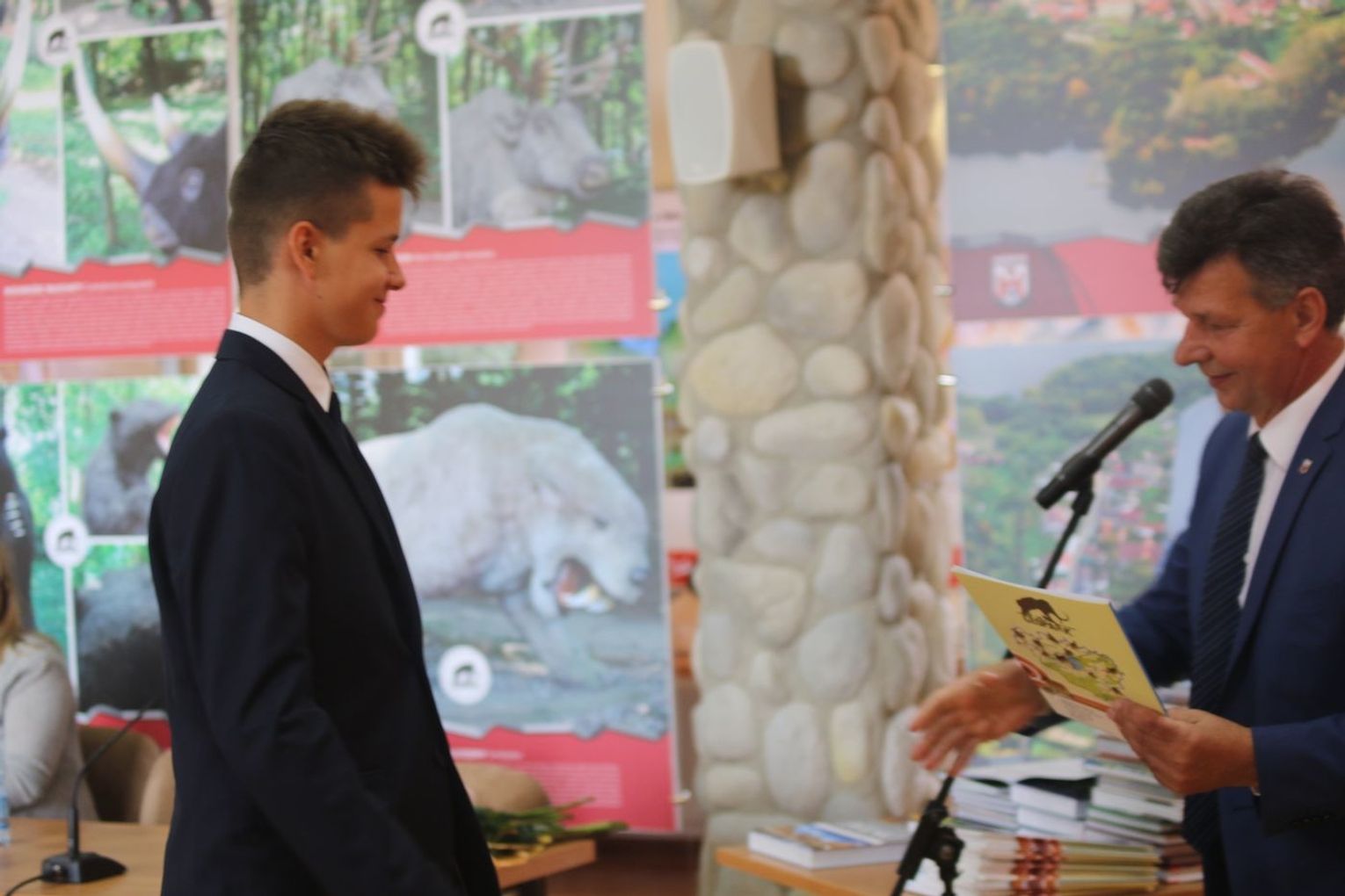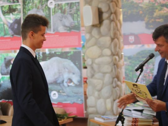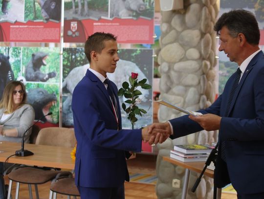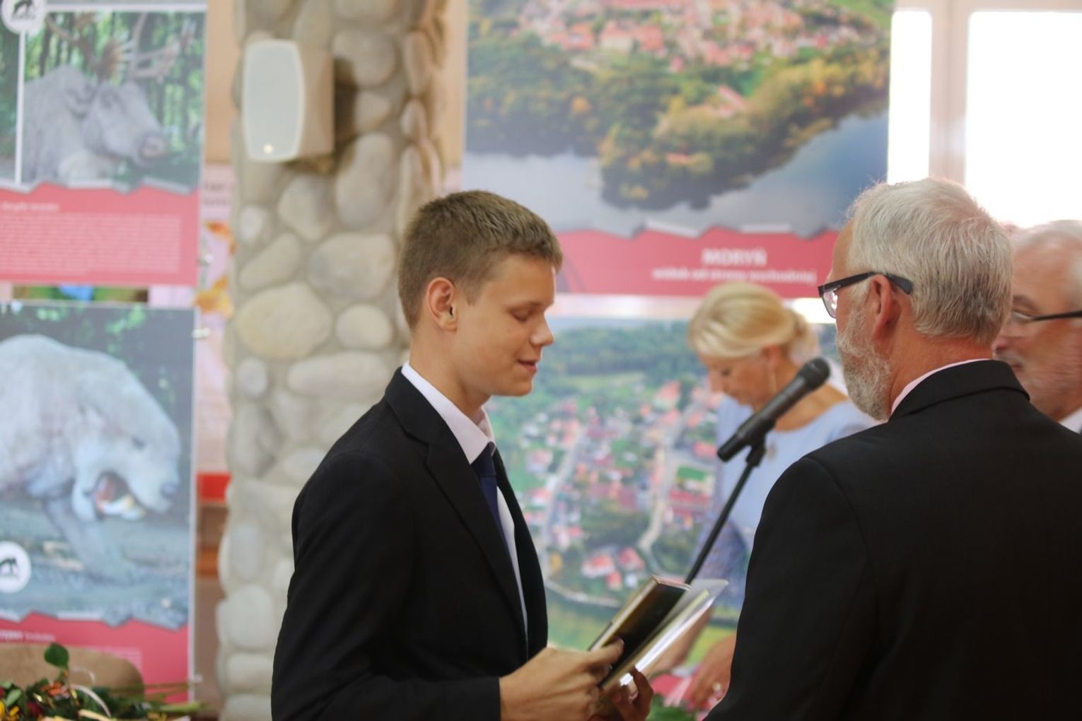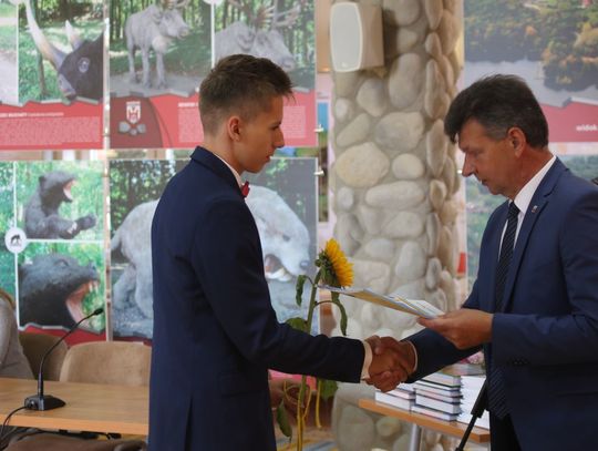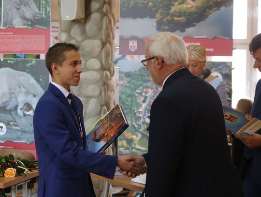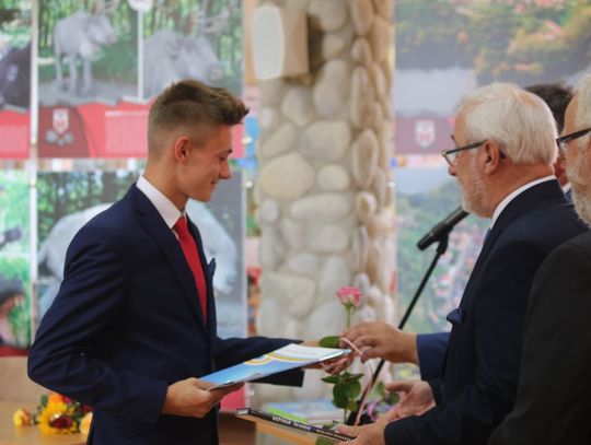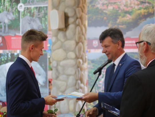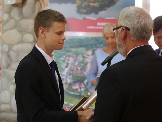 - dla Huberta Kwietnia absolwenta Publicznego Gimnazjum im. Jana Pawła II w Moryniu za bardzo dobre wyniki w nauce.