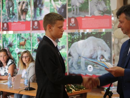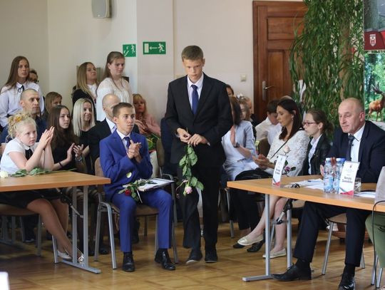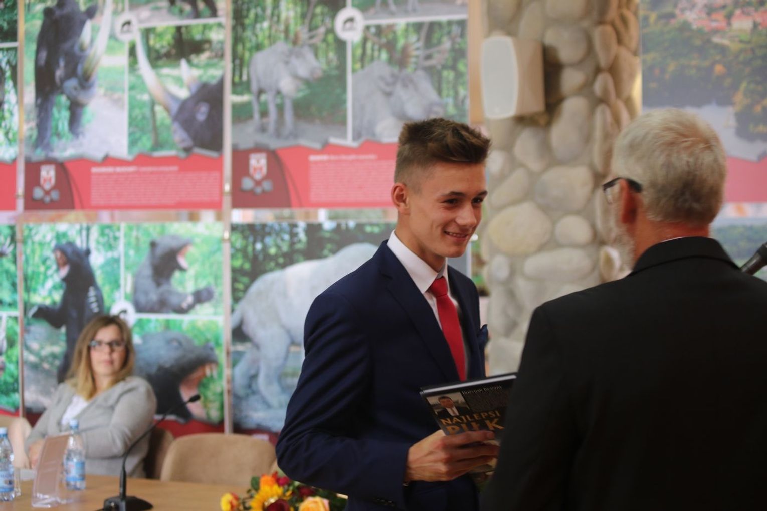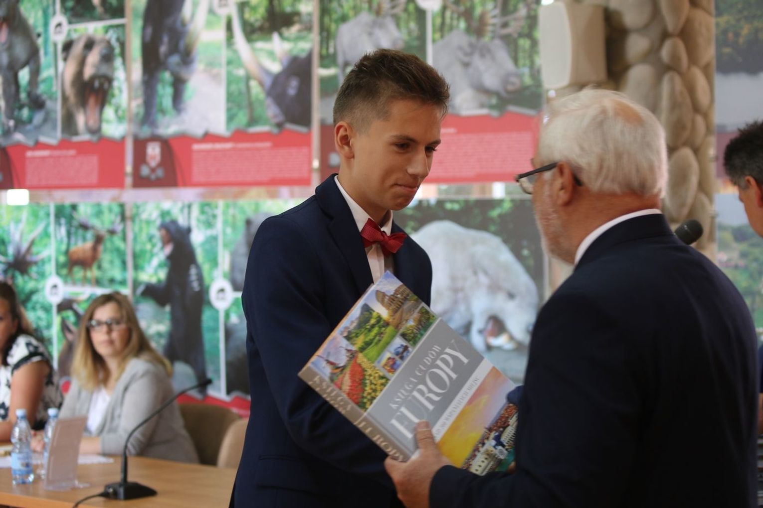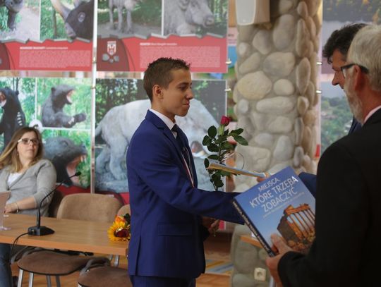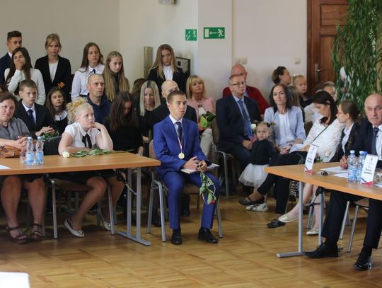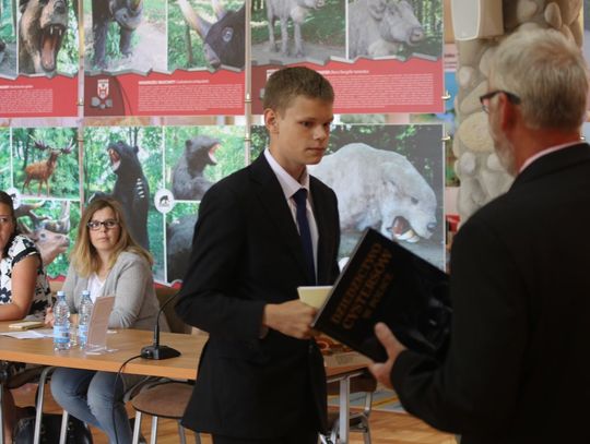 - dla Huberta Kwietnia absolwenta Publicznego Gimnazjum im. Jana Pawła II w Moryniu za bardzo dobre wyniki w nauce.
