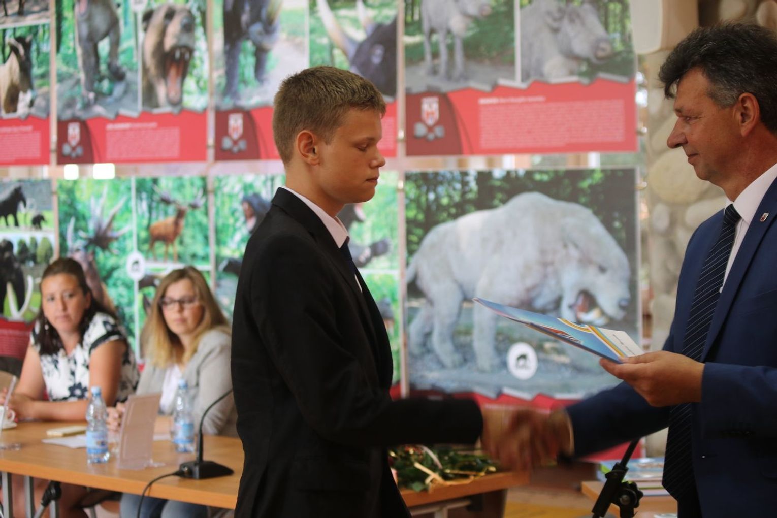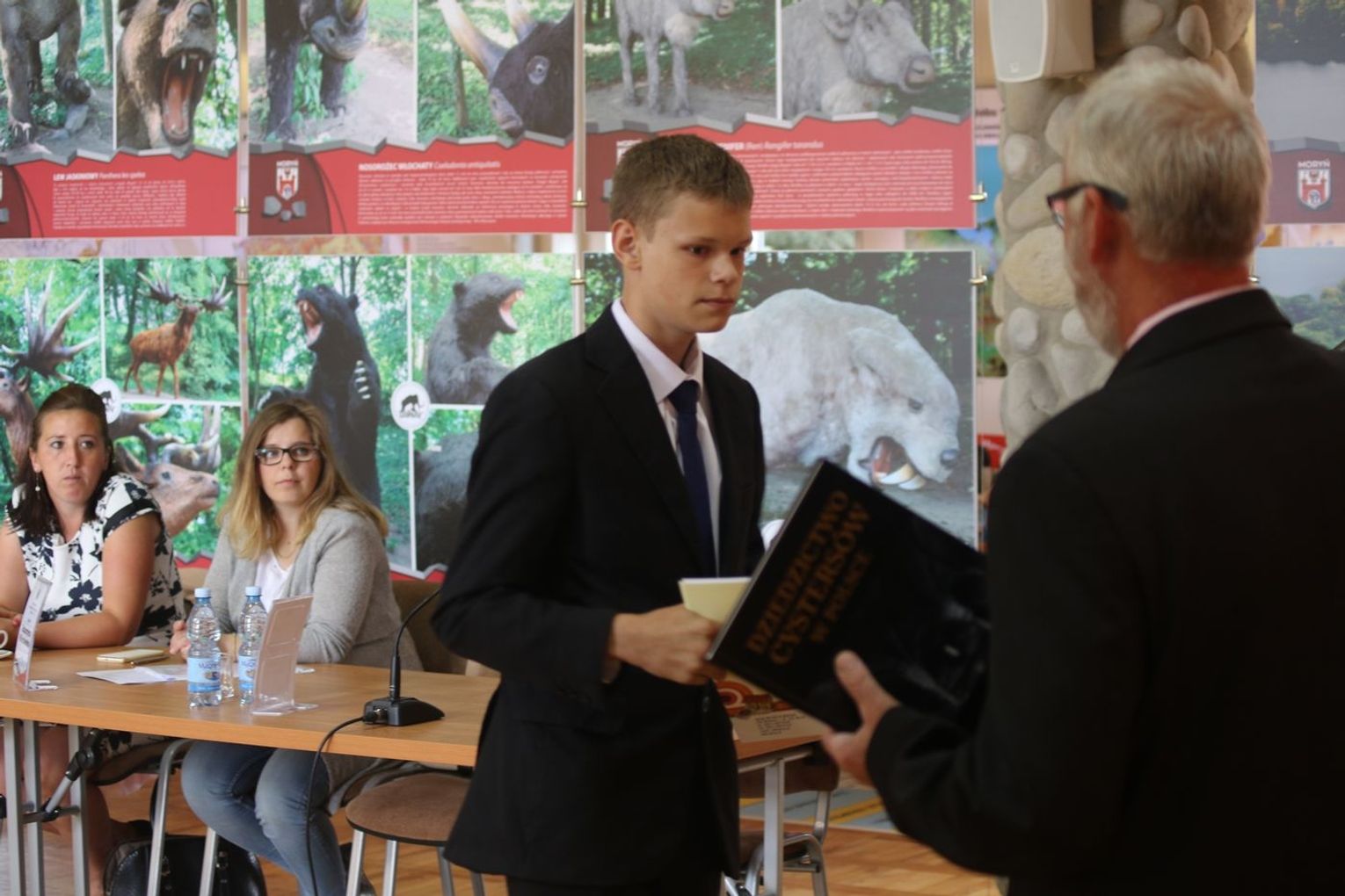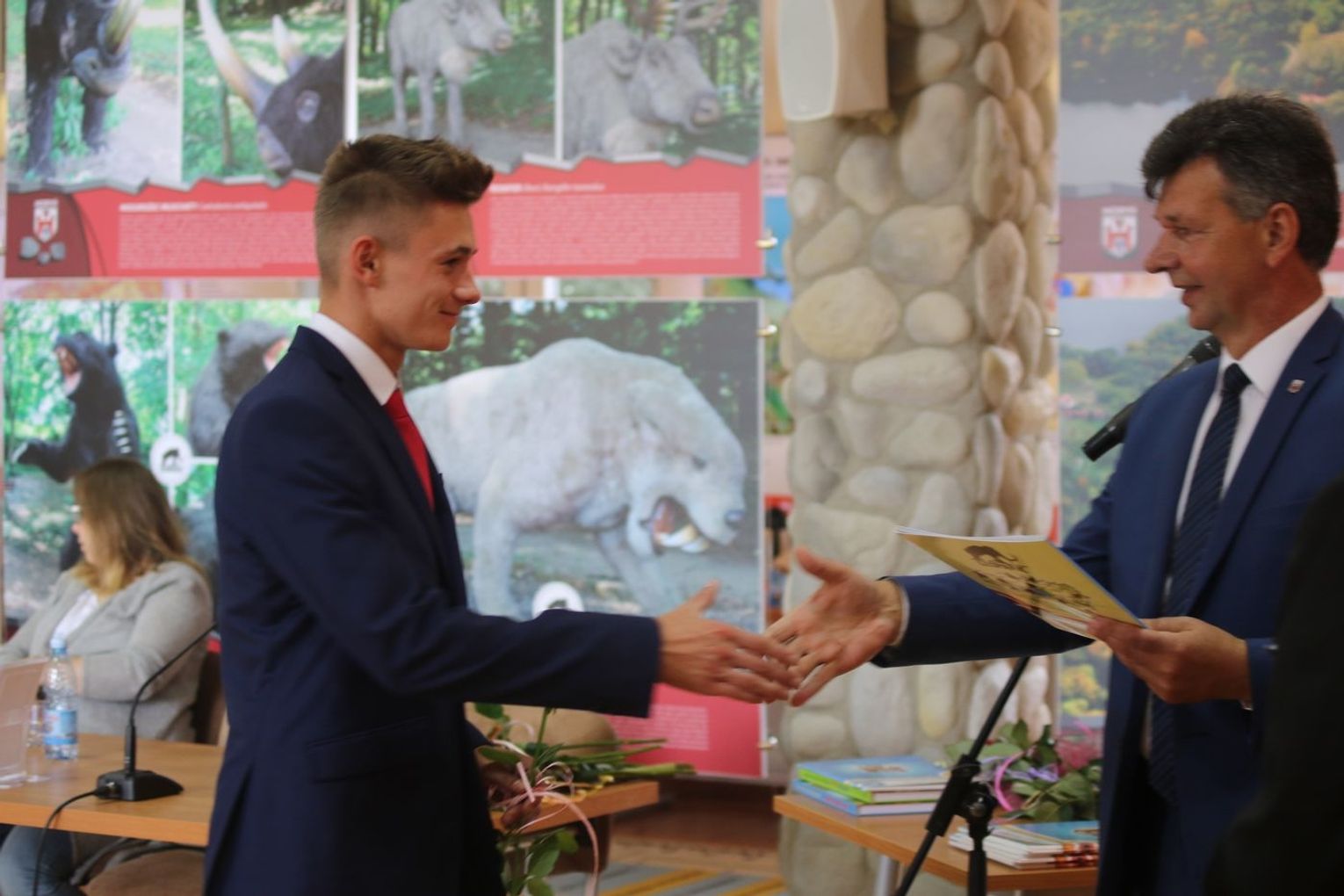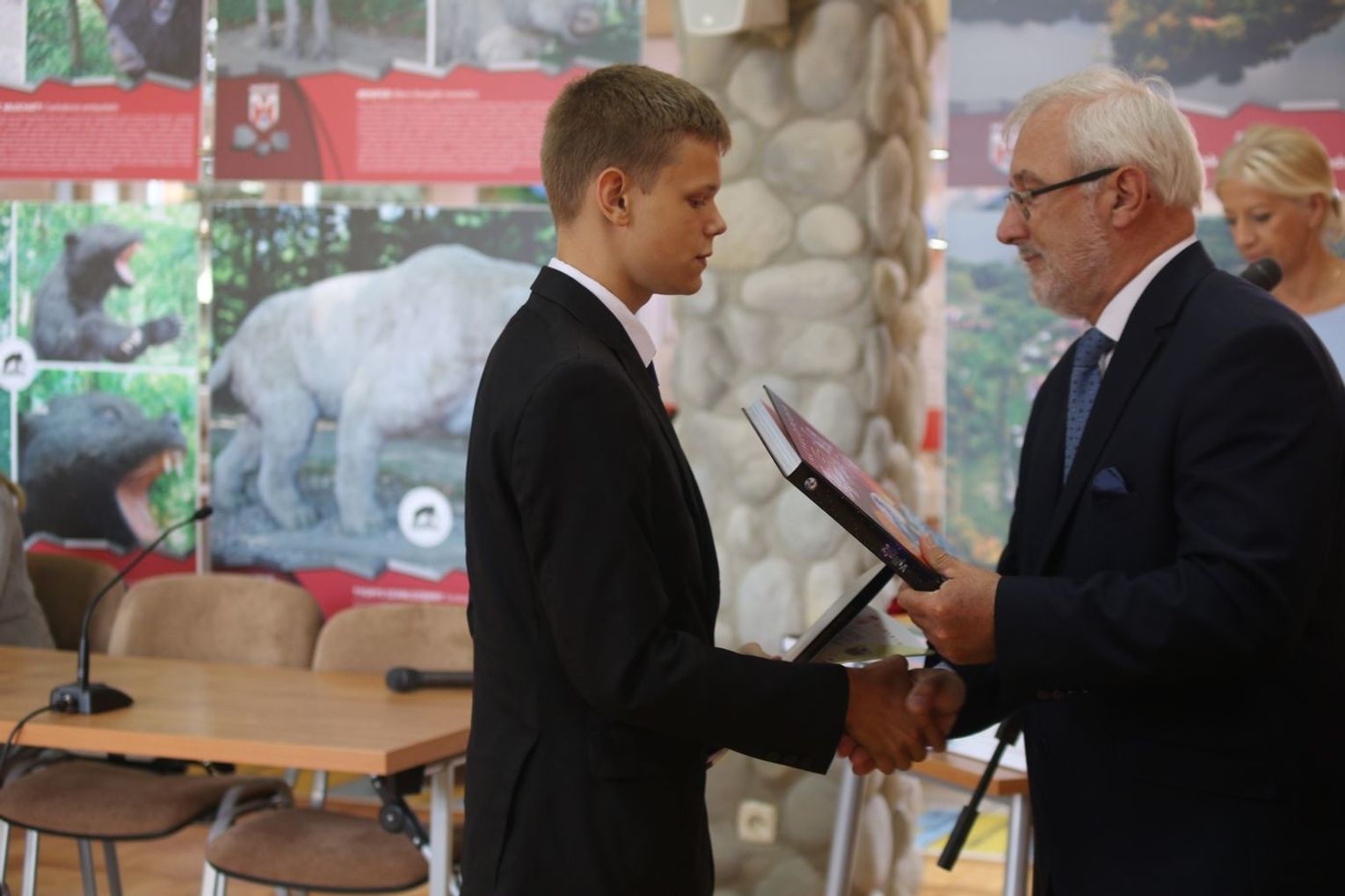 - dla Huberta Kwietnia absolwenta Publicznego Gimnazjum im. Jana Pawła II w Moryniu za bardzo dobre wyniki w nauce.