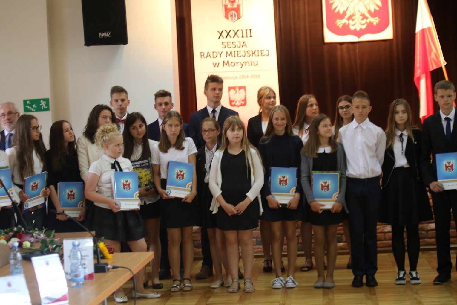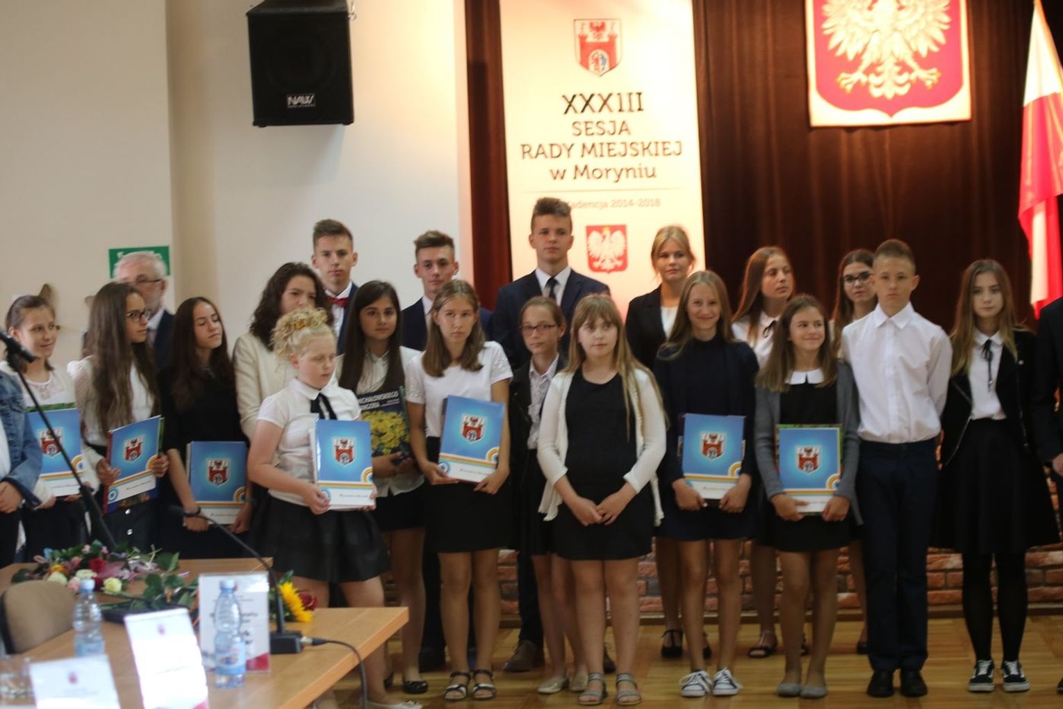 - dla Marty Kwiecień uczennicy Szkoły Podstawowej im. st. sierż. M. Majchrzaka w Moryniu w wysokości 70 zł miesięcznie na rok szkolny 2018/2019 za osiągnięcie szczególnie wysokich wyników w nauce oraz wzorowe zachowanie w roku szkolnym 2017/201