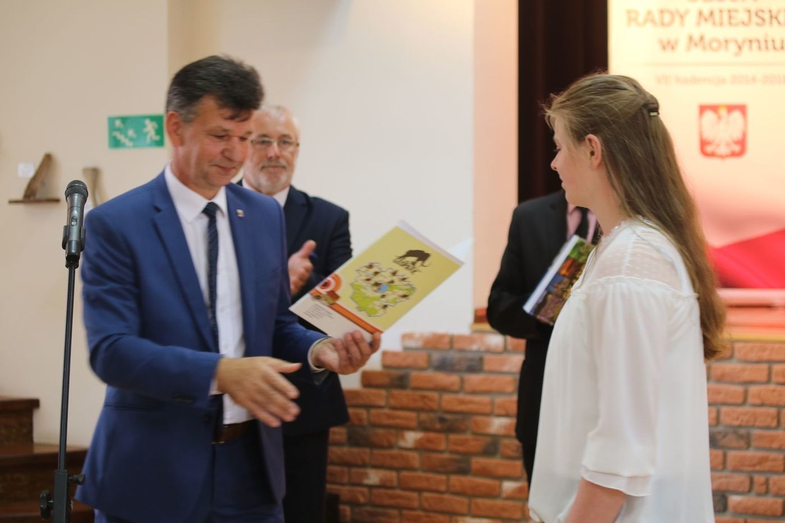 - dla Wiktorii Wiergowskiej uczennicy Publicznego Gimnazjum im. Jana Pawła II w Moryniu za bardzo dobre wyniki w nauce oraz wzorowe zachowanie.