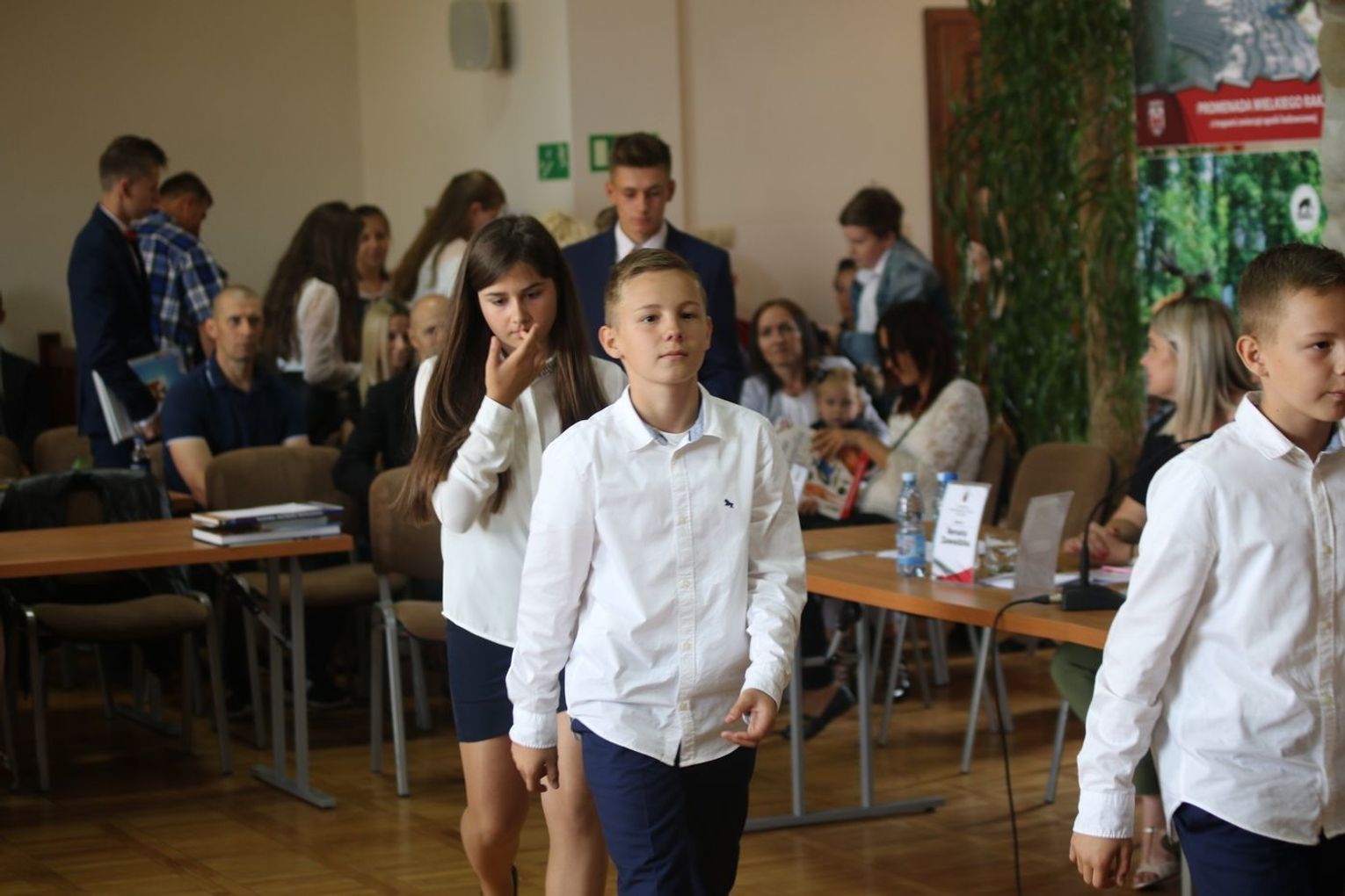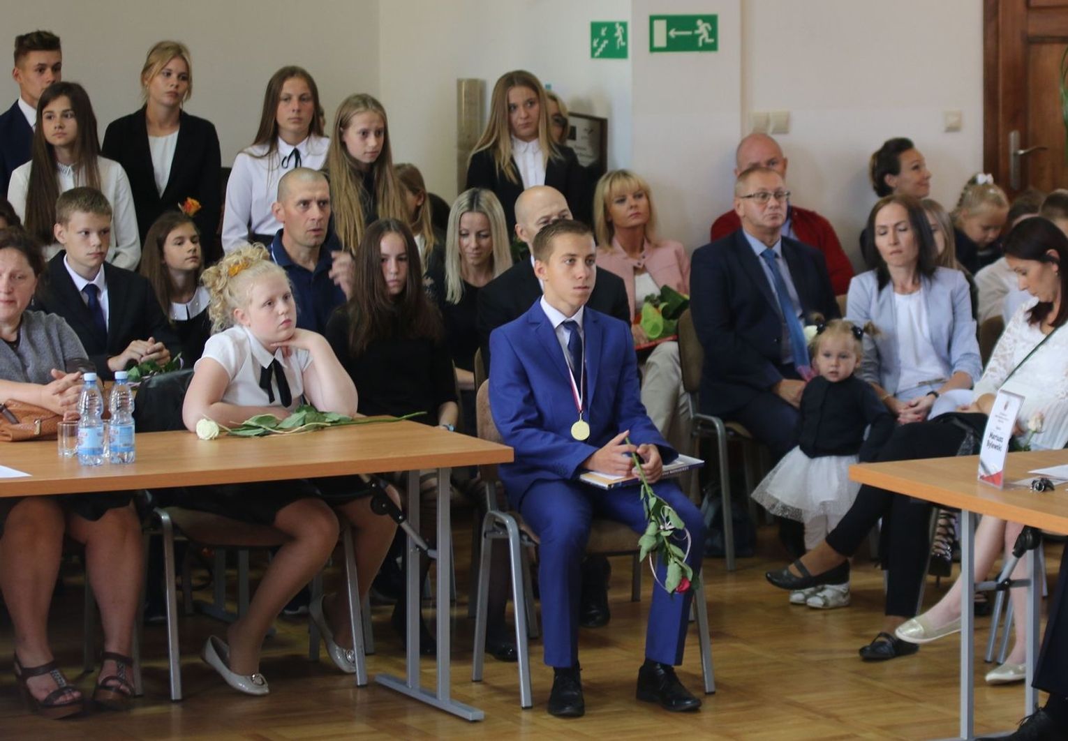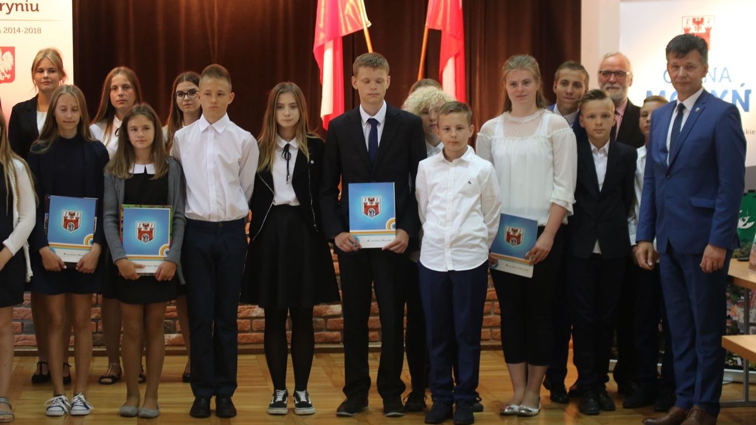 - dla Oskara Klęczara absolwenta Publicznego Gimnazjum im. Jana Pawła II w Moryniu w wysokości 70 zł miesięcznie na rok szkolny 2018/2019 za osiągnięcie szczególnie wysokich wyników w nauce oraz wzorowe zachowanie w roku szkolnym 2017/2018.