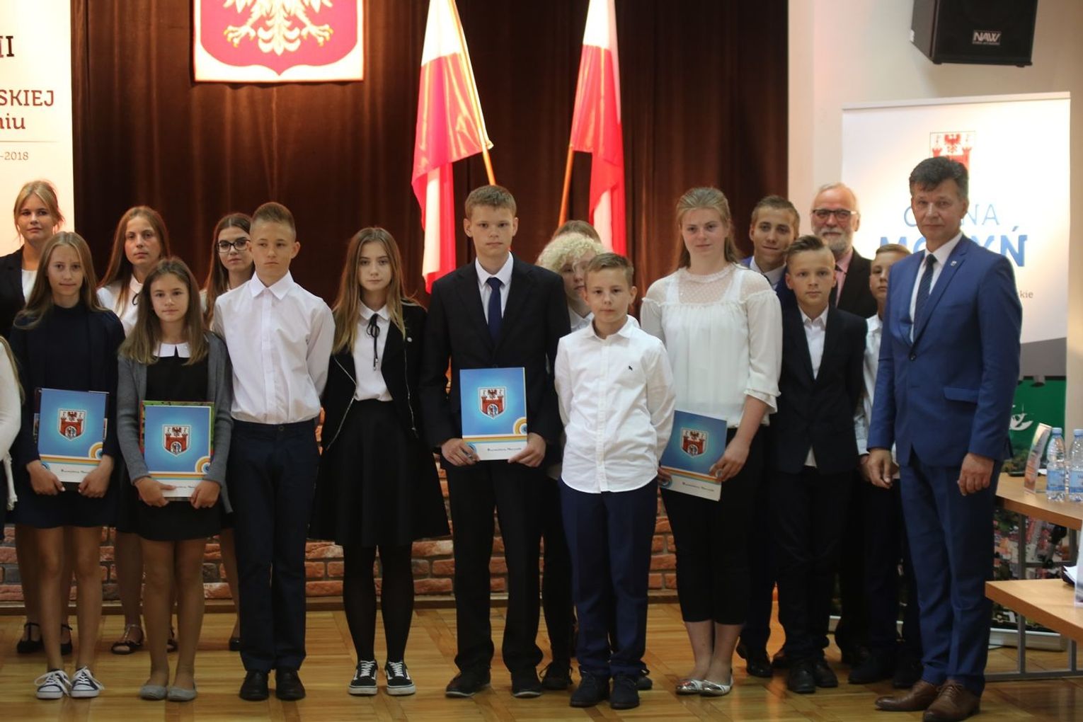 - dla Mikołaja Barana ucznia Szkoły Podstawowej im. st. sierż. M. Majchrzaka w Moryniu w wysokości 70 zł miesięcznie na rok szkolny 2018/2019 za osiągnięcie szczególnie wysokich wyników w nauce oraz wzorowe zachowanie w roku szkolnym 2017/2018.