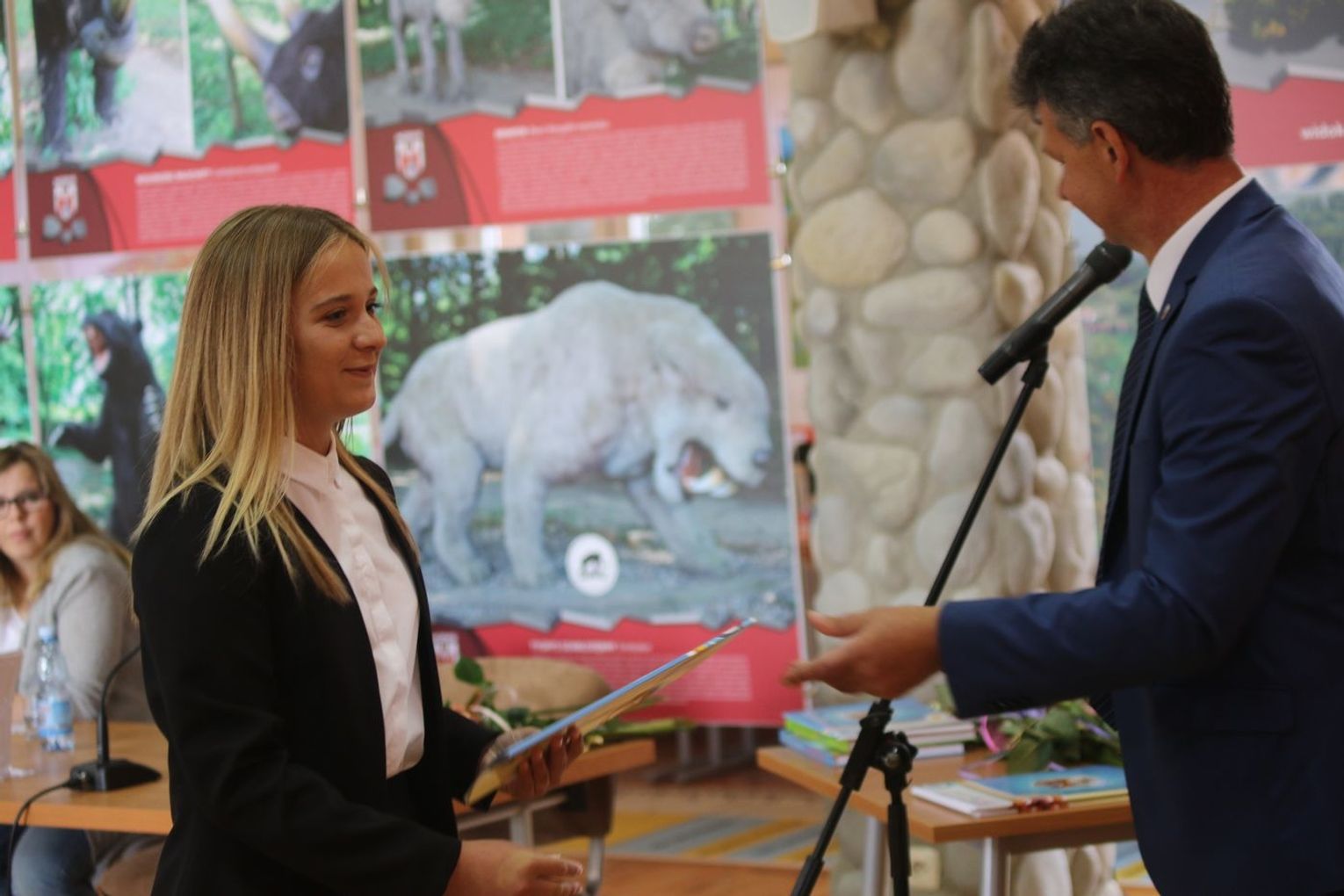 - dla Wiktorii Klimeli absolwentki Publicznego Gimnazjum im. Jana Pawła II w Moryniu za bardzo dobre wyniki w nauce oraz wzorowe zachowanie.
