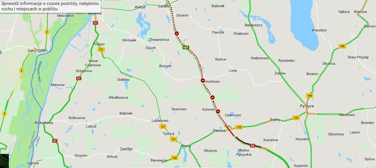 Przypomnijmy, że utrudnienia są także za węzłem Pyrzyce. Usuwane są tam skutki nocnego zdarzenia. Kierowcy muszą zjechać z drogi S3 i dalej kierować się na Pyrzyce. Utrudnienia mają potrwać jeszcze kilka godzin.