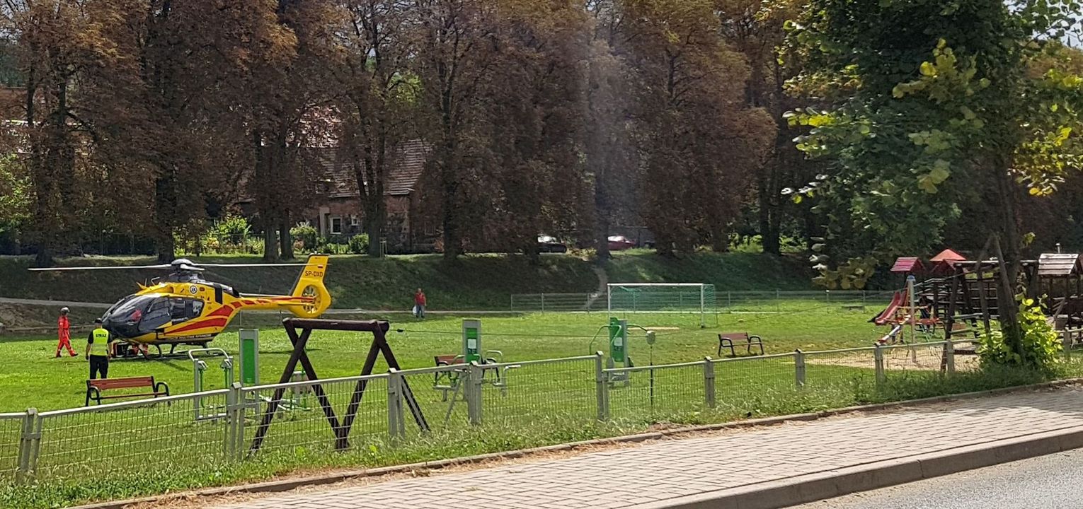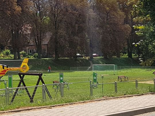 Mężczyzna miał poważnie wyglądające rozcięcie na głowie. Mocno krwawił, a akurat wtedy nie można było zadysponować żadnej karetki. O pomoc poproszone zostało więc Lotnicze Pogotowie Ratunkowe. Lądowanie śmigłowca zabezpieczali strażacy z OSP Cedynia.