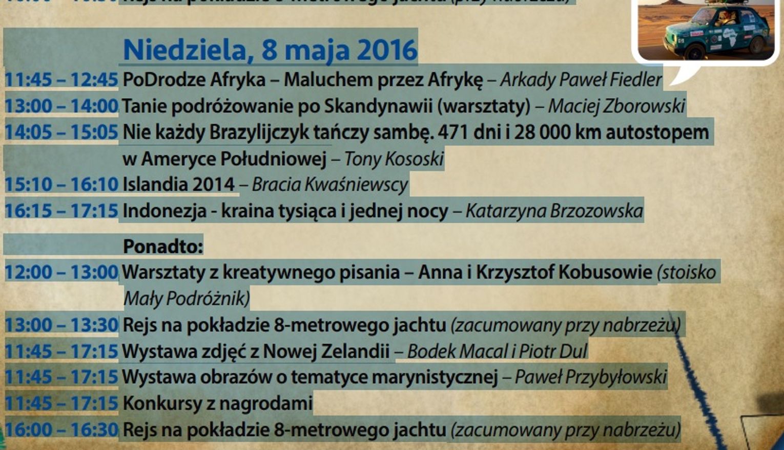 11:45 – 12:45 PoDrodze Afryka – Maluchem przez Afrykę – Arkady Paweł Fiedler