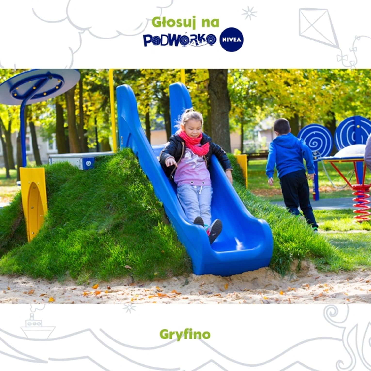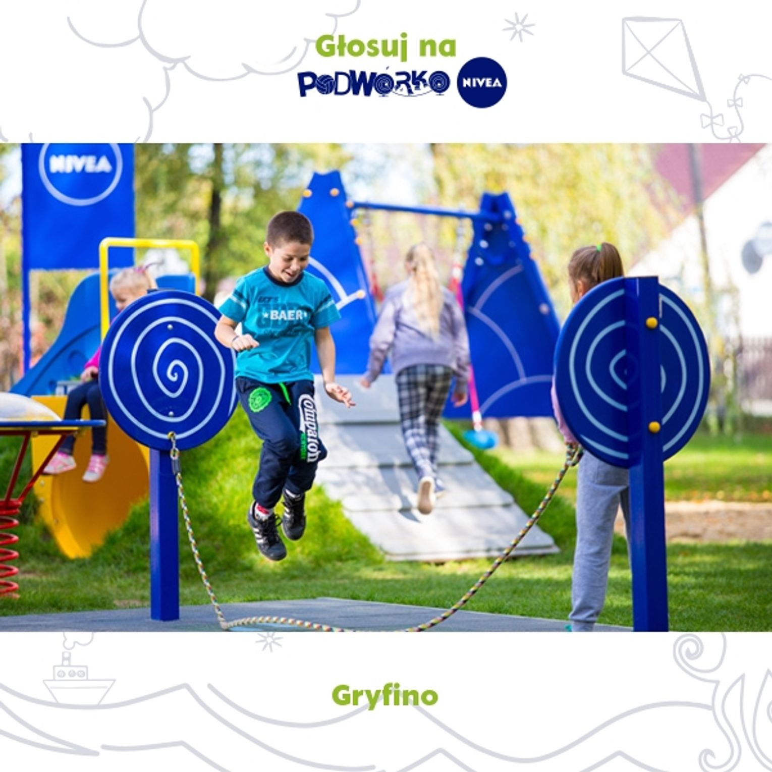 Dlatego już dziś serdecznie zachęcam Państwa do przygotowania rodziny, sąsiadów a nawet znajomych z pracy aby już głosowali na nasz "Gryfiński Projekt Podwórka Nivea" w celu zapewnienia dodatkowego miejsca zabaw dla najmłodszych!