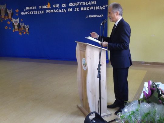Dyrektor Dorota Stelmach serdecznie powitała przybyłych gości i przypomniała, jak wielką rolę w codziennym życiu odgrywa oświata oraz osoby, które w niej pracują. Z tej okazji złożyła wszystkim pracownikom szkół życzenia dalszych sukcesów w tak odpowiedzialnej i trudnej pracy.
