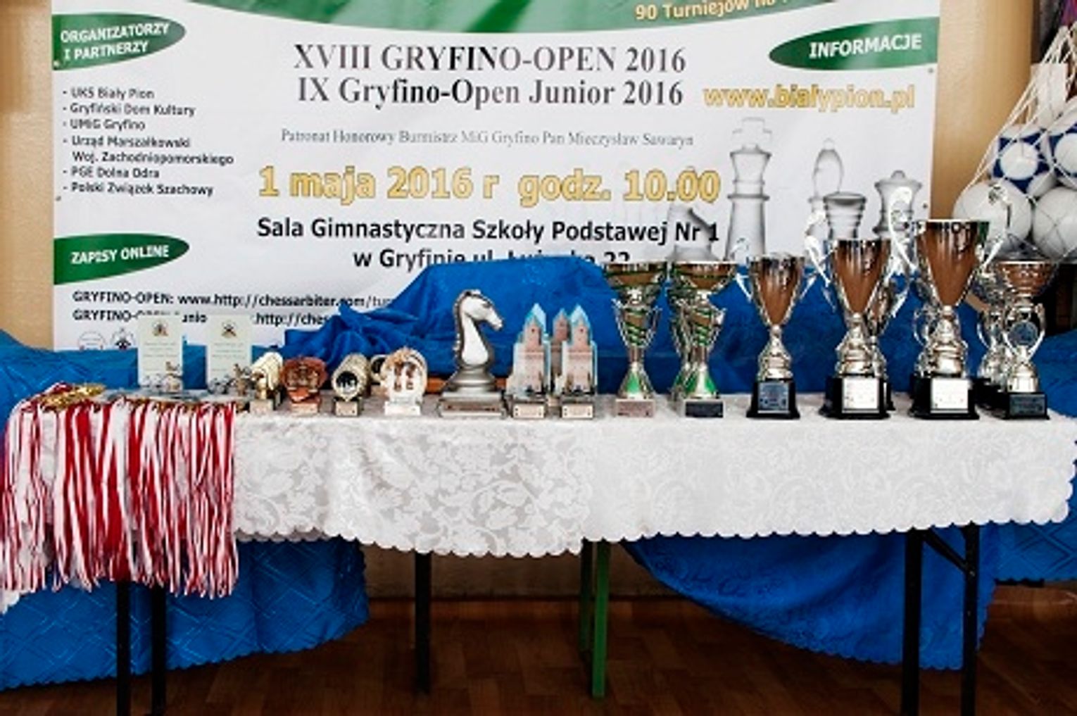 ORGANIZATORZY I PARTNERZY "Gryfino-Open 2016": UKS Biały Pion, Gryfiński Dom Kultury, UMiG w Gryfinie, Urząd Marszałkowski Woj. Zachodniopomorskiego, Polski Związek Szachowy, Szkoła Podstawowa nr 1 w Gryfinie, Albatros, FLIEGEL Nowe Czarnowo, Bank Spółdzielczy w Gryfinie, Bank PEKAO w Gryfinie, Eurobank w Gryfinie, Starostwo Powiatowe w Gryfinie, MediaDruk w Gryfinie, Centrum Wodne "Laguna", Trofea Sportowe w Szczecinie, OSP Radziszewo, PSP w Gryfinie.