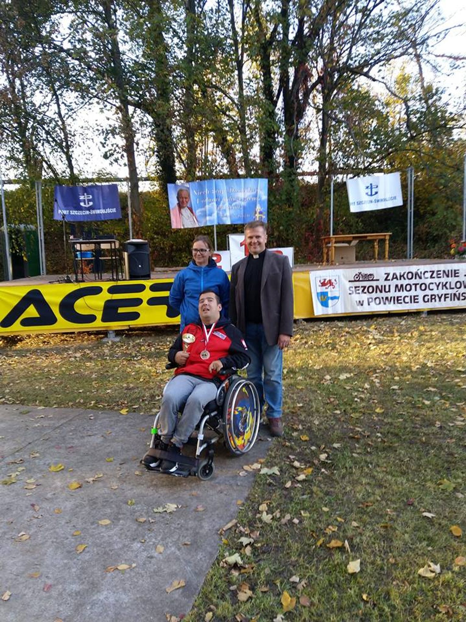 Adrian, choć doznał krzywdy przez nieodpowiedzialnego kierowcę samochodu, to jednak jest zagorzałym fanem sportów motorowych. Przy tej okazji warto aby kierowcy uświadomili sobie jak wielką krzywdę mogą wyrządzić drugiemu człowiekowi – a szczególnie dziecku - na całe życie przez brawurową i nieodpowiedzialną jazdę. Adrian, jeśli tylko może jest obecny na wszystkich imprezach motorowych w regionie. Ostatnio otrzymał na pamiątkę puchar od zwycięzcy zawodów Baja Poland, które odbywały się w Szczecinie a które wygrał zawodnik Orlen Team-u Kuba Przygoński. Dwa tygodnie temu ten sam zawodnik zdobył po raz pierwszy w karierze Puchar Świata w rajdach cross-country. Po niedzielnym pikniku swój puchar przekazał Adrianowi zwycięzca w najmłodszej kategorii Kacper Chrostowski, który reprezentuje KM Chojna.