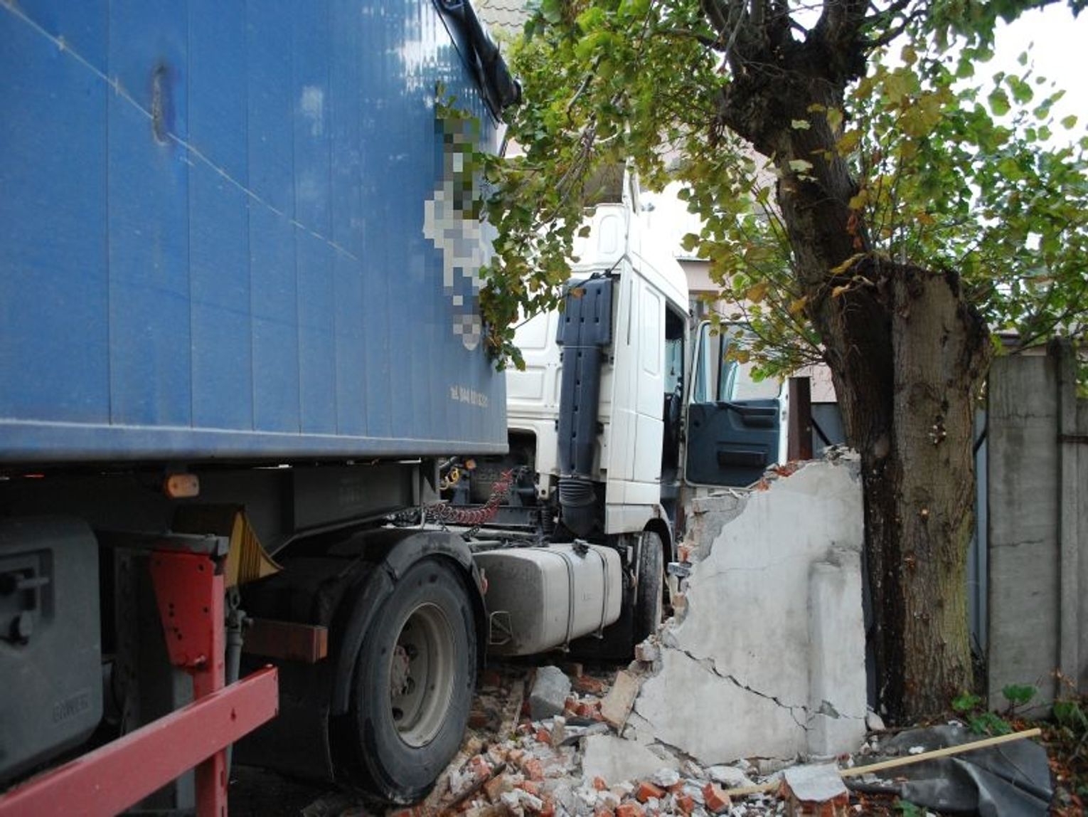 -Doszło do kolizji samochodu ciężarowego, który wjechał w ganek budynku mieszkalnego w Daleszewie na ul. Gryfińskiej. Kierowca auta znajdował się wewnątrz kabiny pojazdu, przytomny. Strażacy z poszkodowanym przeprowadzili wywiad medyczny, założono mężczyźnie kołnierz ortopedyczny i udzielono wsparcia psychologicznego. Następnie kierowca samodzielnie opuścił kabinę pojazdu i został przekazany personelowi medycznemu karetki pogotowia. Działania strażaków polegały na zabezpieczeniu miejsca zdarzenia. W budynku mieszkalnym strażacy nie stwierdzili osób. Na miejscu zdarzenia była również policja i Straż Miejska. Droga krajowa nr 31 została zamknięta dla ruchu na czas działań. Na miejsce zdarzenia przybył właściciel budynku. Policja przywróciła ruch na drodze w sposób wahadłowy. Wewnątrz budynku mieszkalnego nie stwierdzono uszkodzeń ścian. Zniszczeniu uległo murowane ogrodzenie, skrzydło bramy, furtka i śmietnik. Odłączono klemy akumulatora w aucie, brak wycieków - informuje strażak z Komendy Powiatowej państwowej Straży pożarnej w Gryfinie.