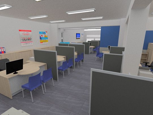 Nowa sala została tak zaprojektowana, by interesanci mogli swobodnie się przemieszczać do wyznaczonych stanowisk, mając jednocześnie zapewnioną poufność przy załatwianiu spraw. Owocem tych prac będzie uruchomienie w połowie grudnia profesjonalnie urządzonego, estetycznego i przyjaznego miejsca, w którym interesanci będą czuć się komfortowo i bezpiecznie.