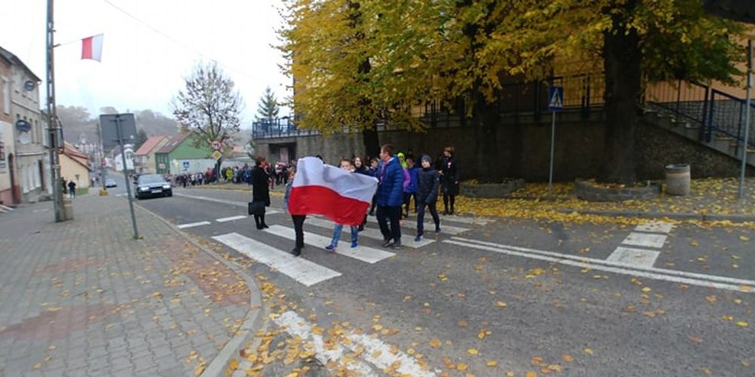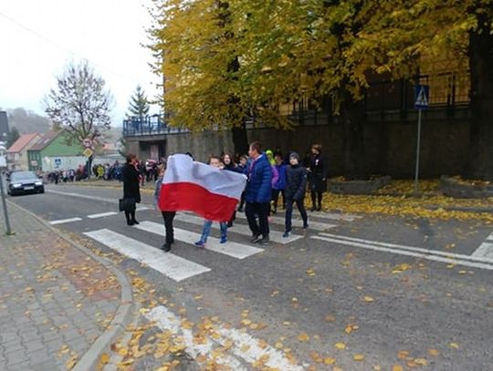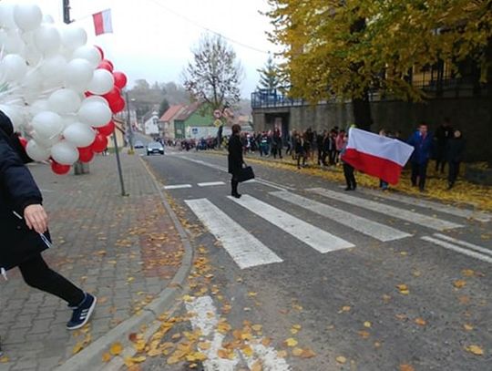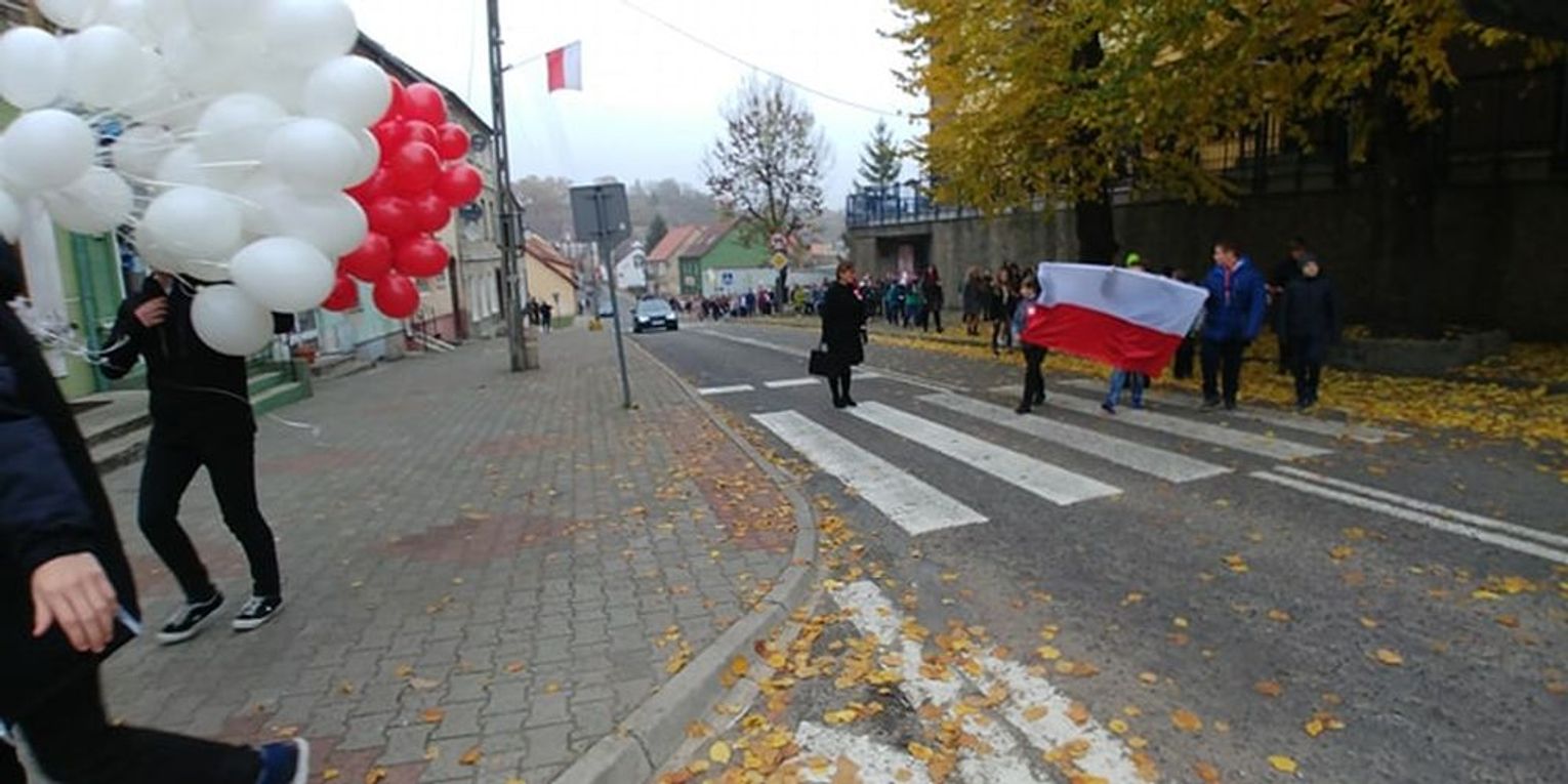 Przemarsz miał odbyć się ulicami Mieszka I i Staromiejską. Policja odmówiła organizatorom swojej asysty, ponieważ policjanci poszli na zwolnienia lekarskie. Ze względu na bezpieczeństwo uczniów, nauczyciele poprowadzili pochód chodnikami. Dopiero na rynku koło fontanny mogli wypuścić 100 biało-czerwonych balonów z życzeniami dla Niepodległej Ojczyzny, bez zajmowania na chwilę rynku - nomen omen - placu Wolności, który dzięki protestującym policjantom dla manifestujących nie mógł być wolnym nawet na chwilę.