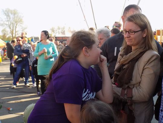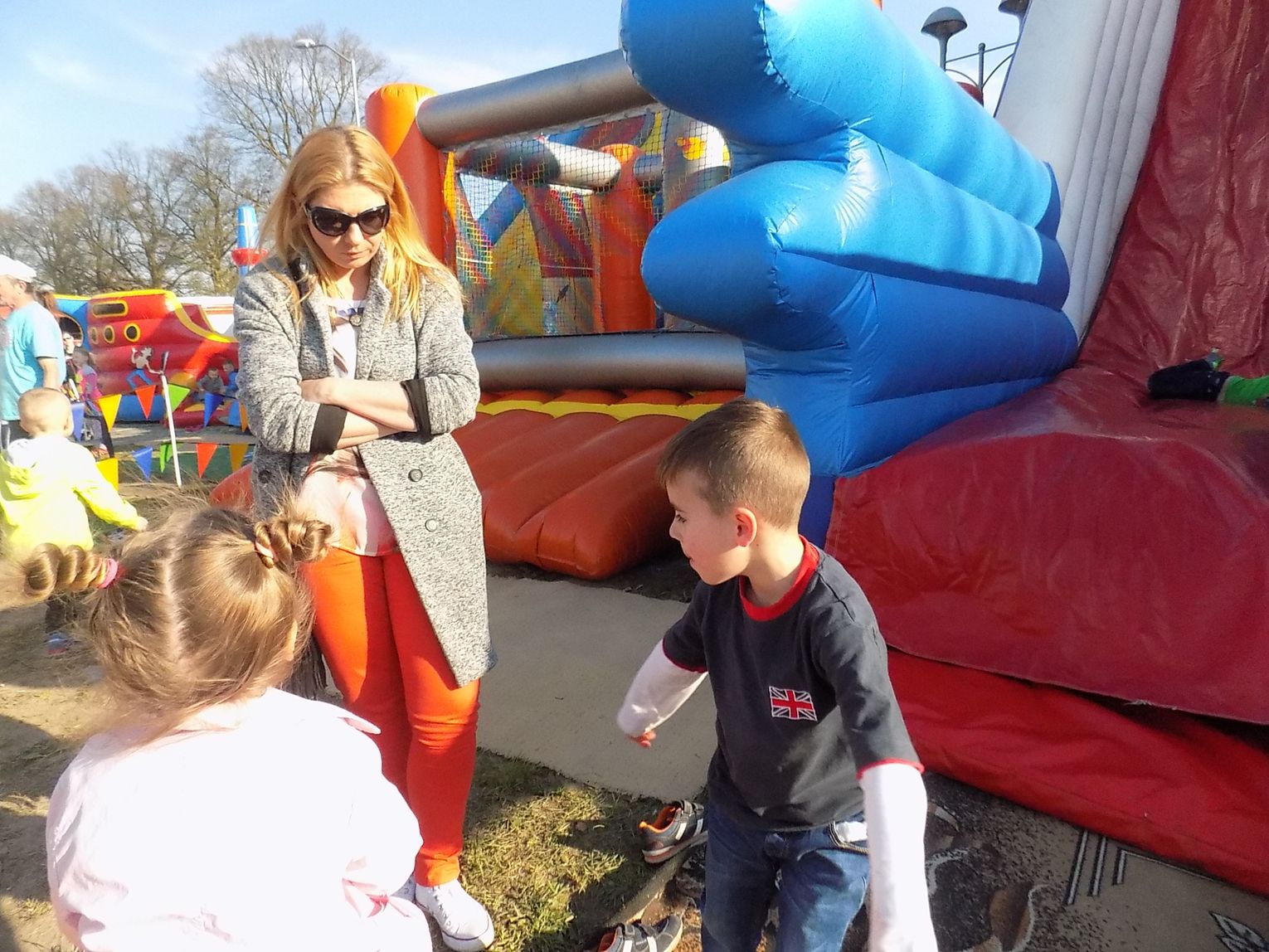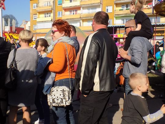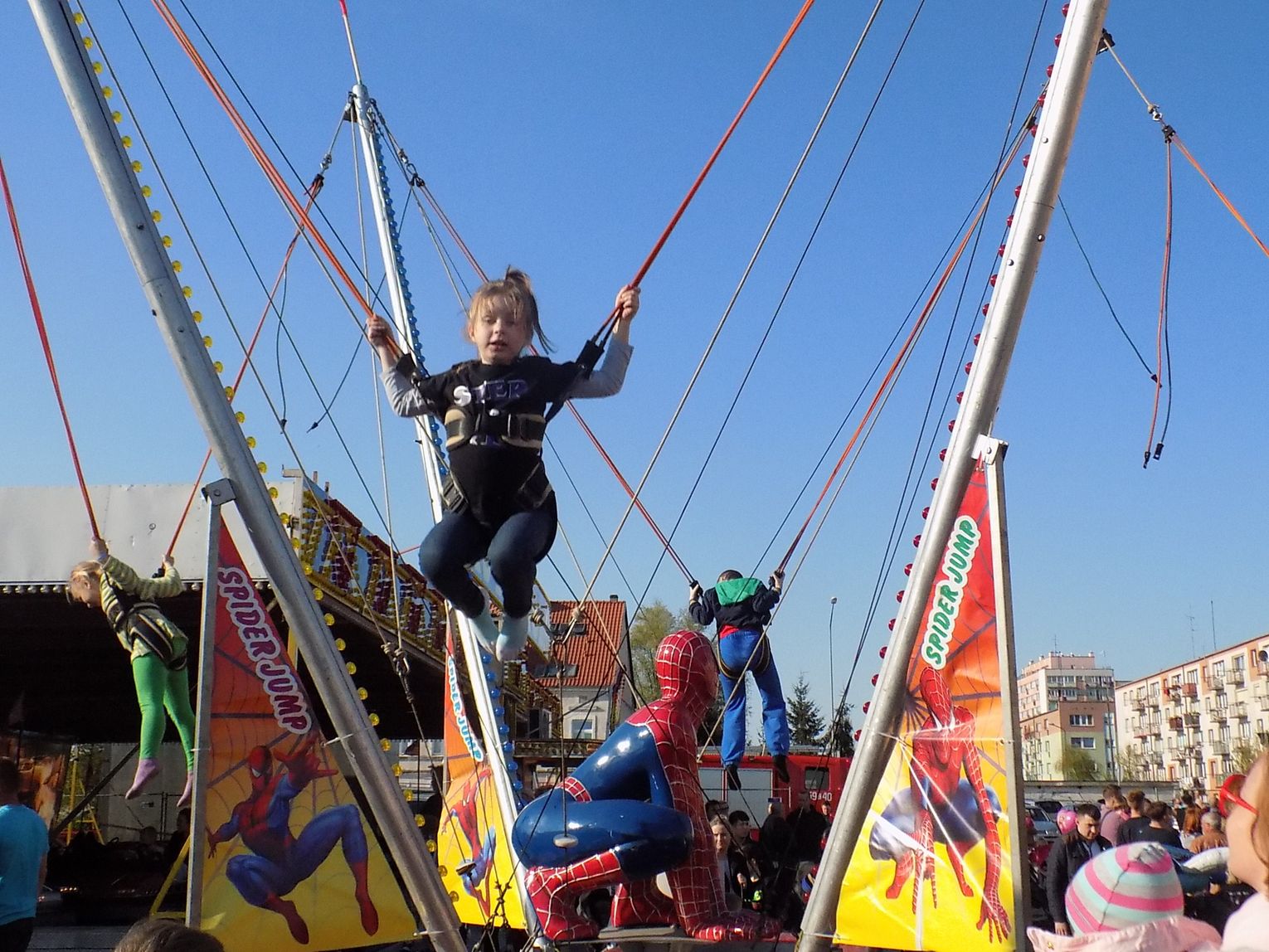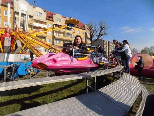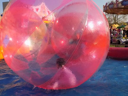 Ratownicy i strażacy na służbie. Wodne kule to niebywała atrakcja na najmłodszych. Pływać w basenie i nawet czubka nosa nie zamoczyć, to istna frajda. Dzieci były zachwycone, więc nic dziwnego, że kolejka chętnych była spora. Pociąg pędzący po torach w wesołym miasteczku to również atrakcja, a fruwanie wysoko prawie do nieba to już bohaterski wyczyn.