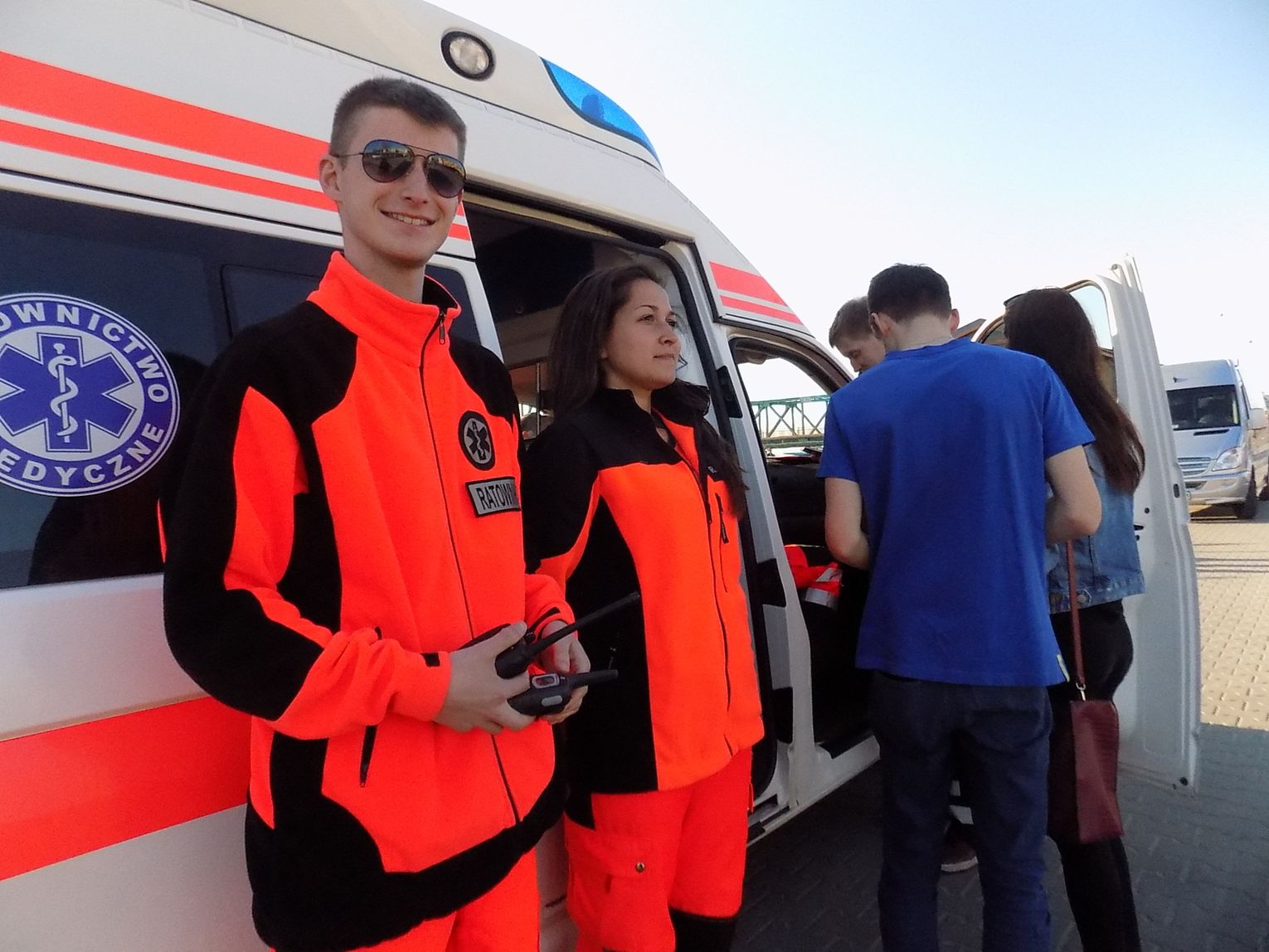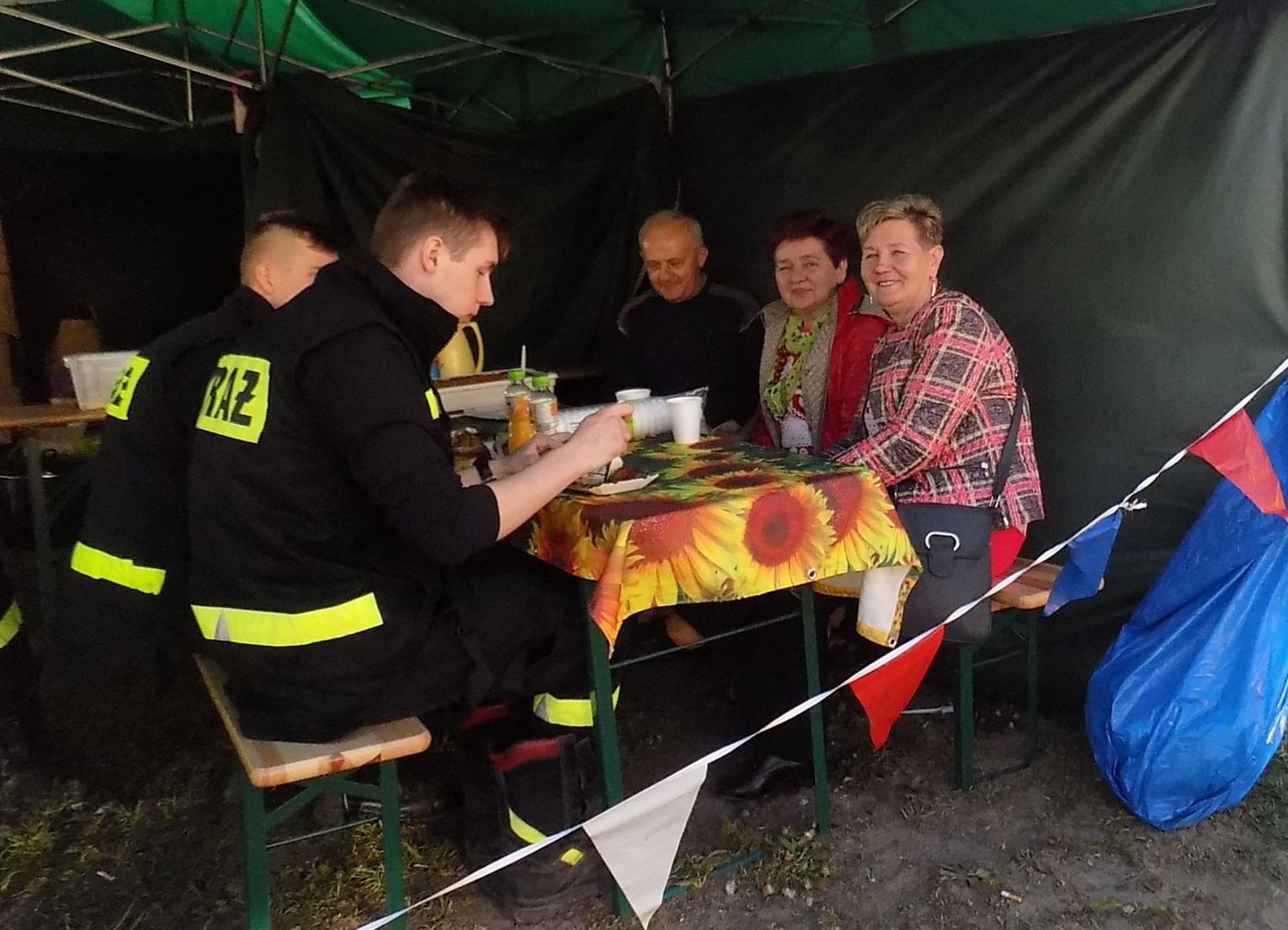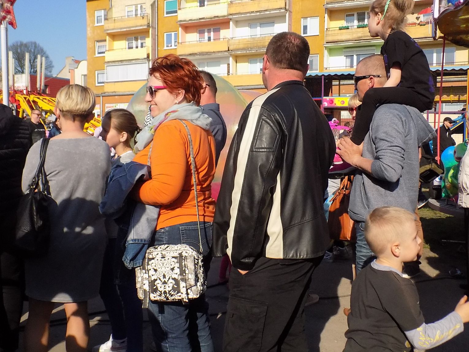 Ratownicy i strażacy na służbie. Wodne kule to niebywała atrakcja na najmłodszych. Pływać w basenie i nawet czubka nosa nie zamoczyć, to istna frajda. Dzieci były zachwycone, więc nic dziwnego, że kolejka chętnych była spora. Pociąg pędzący po torach w wesołym miasteczku to również atrakcja, a fruwanie wysoko prawie do nieba to już bohaterski wyczyn.