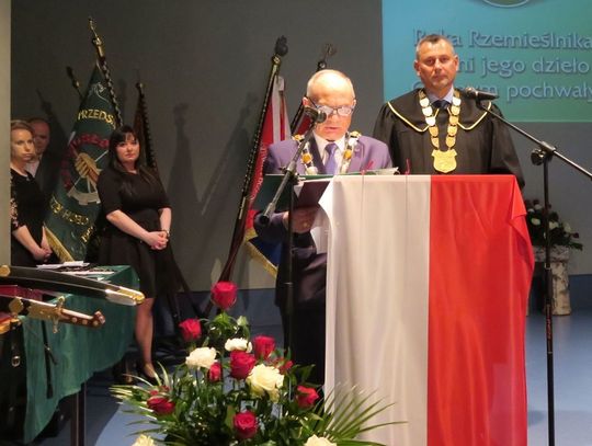 - Przyznanie szabli Jana Kilińskiego oznacza hołd i szacunek dla poprzedników oraz obecnie działających. Jest to również wskazanie dla tych, którzy przyjdą po nas - podkreślił wiceprezes Związku Rzemiosła Polskiego Władysław Jefremienko.