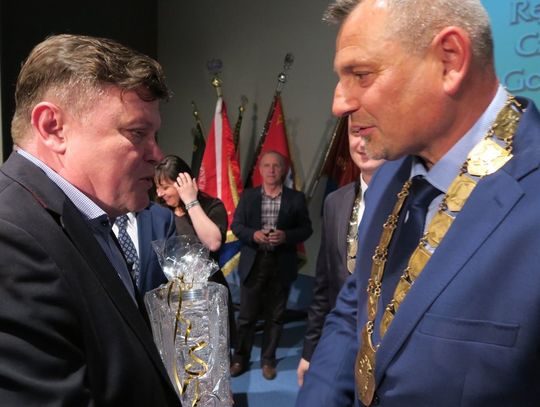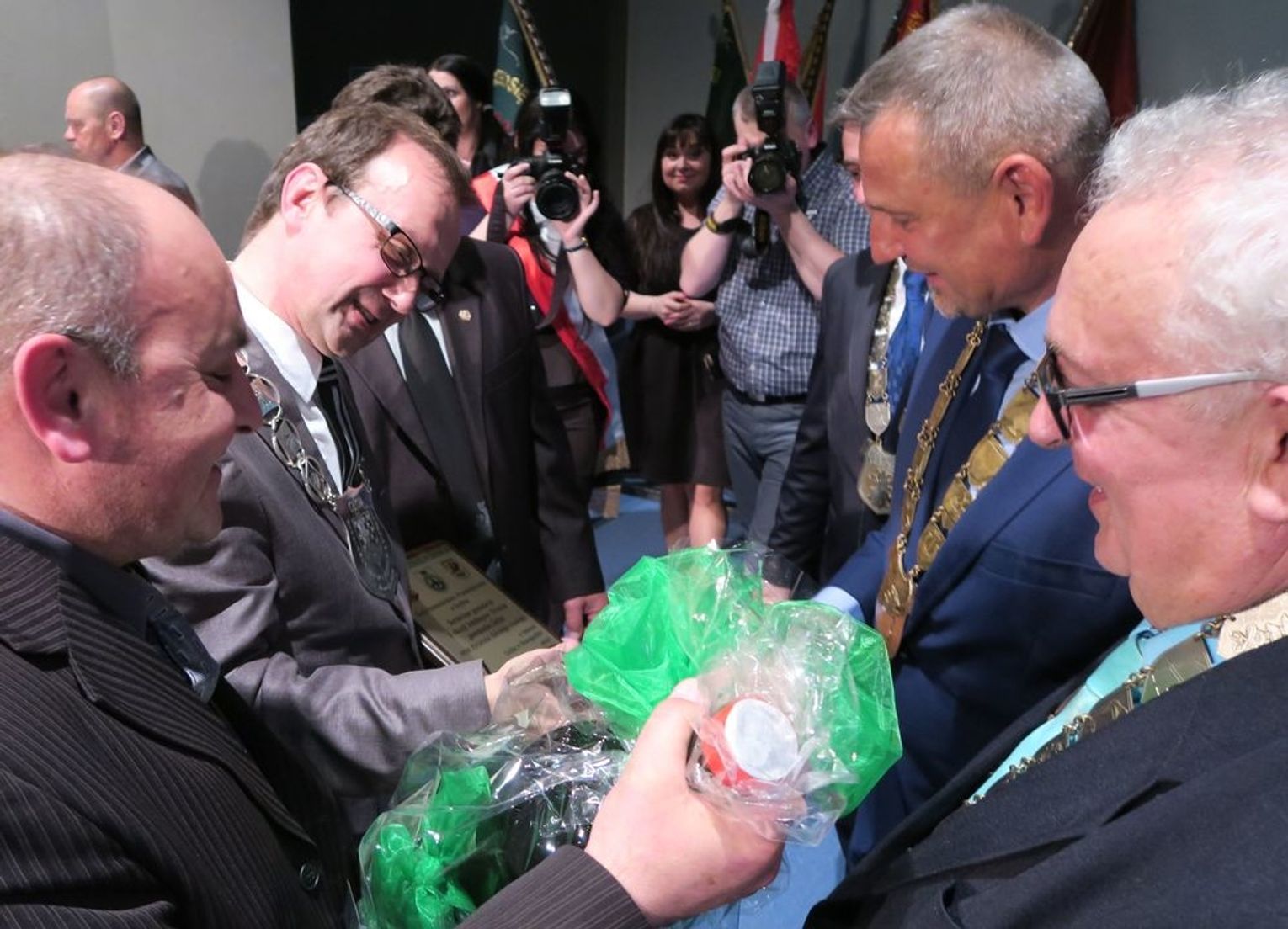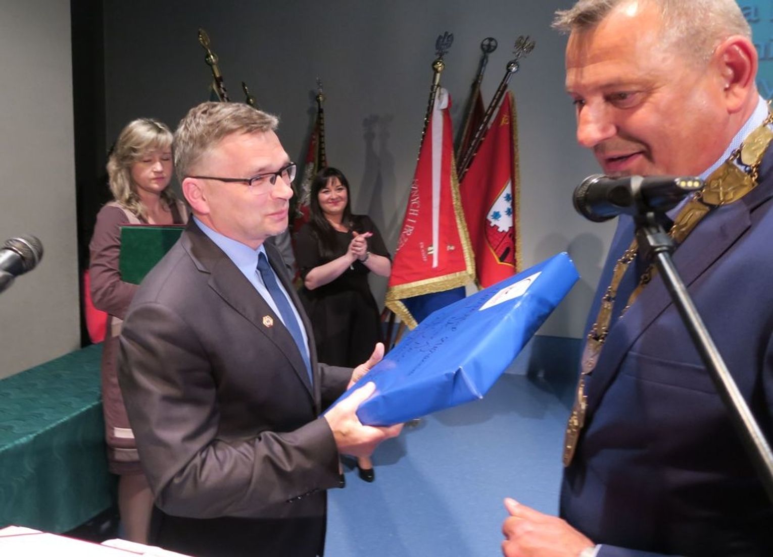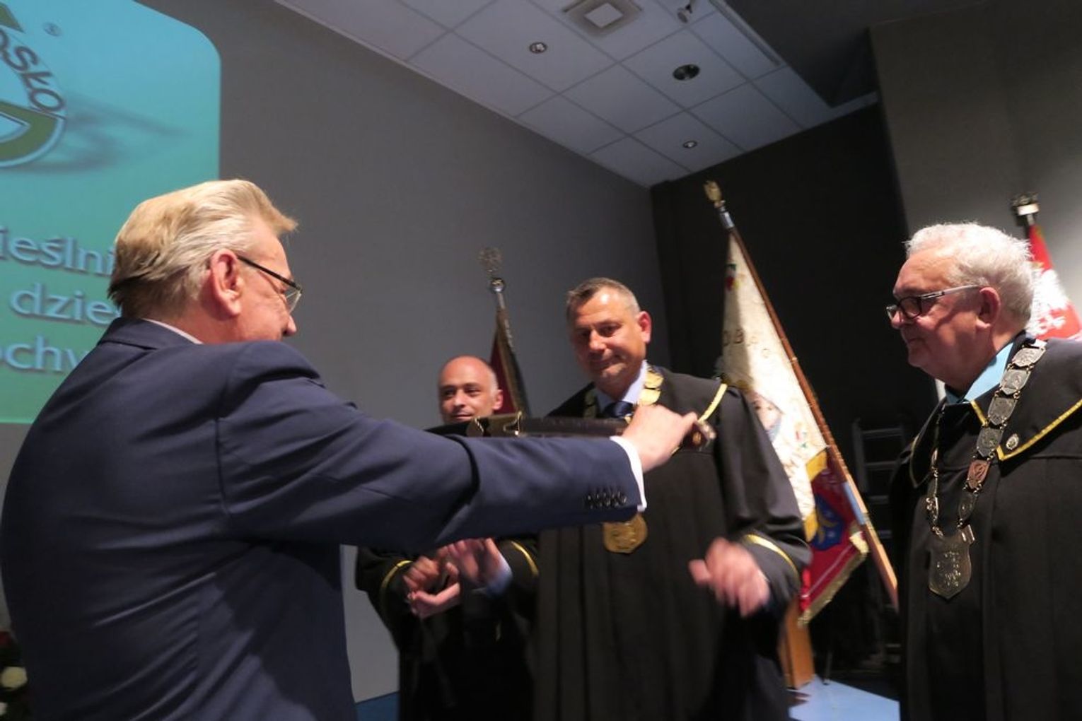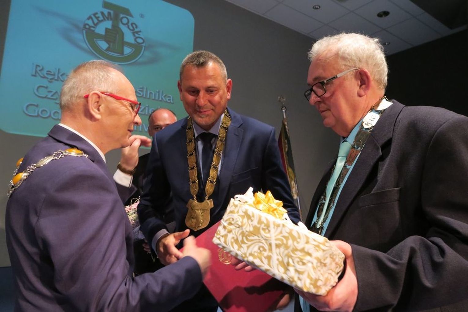 Starosta powiatu gryfińskiego Wojciech Konarski przekazał gryfińskiemu Cechowi zegar aby odmierzał kolejne szczęśliwe 70 lat.
