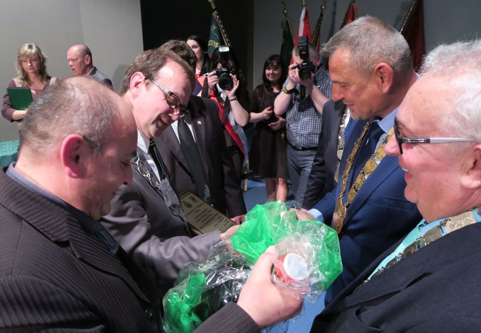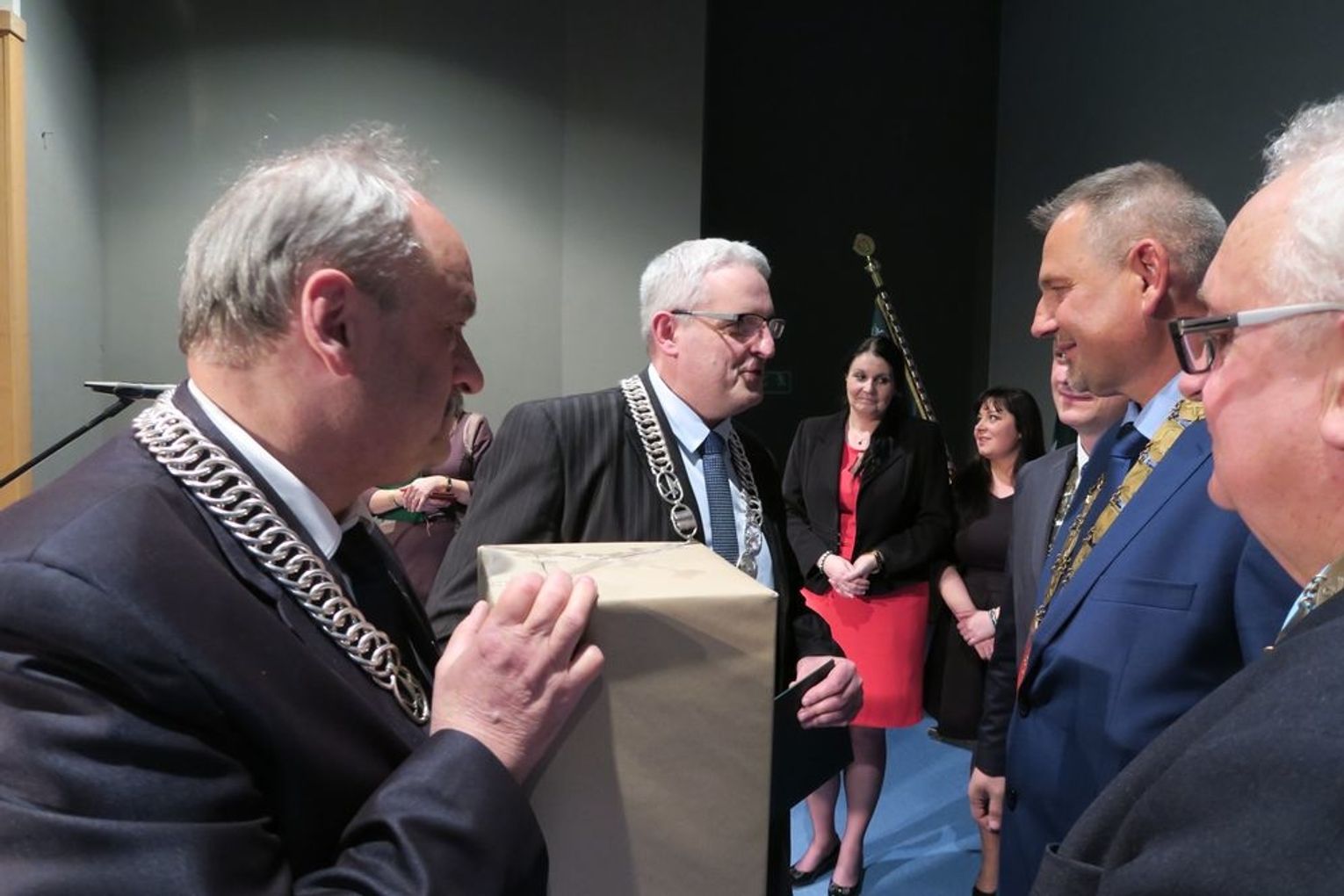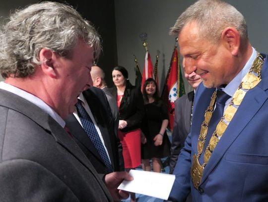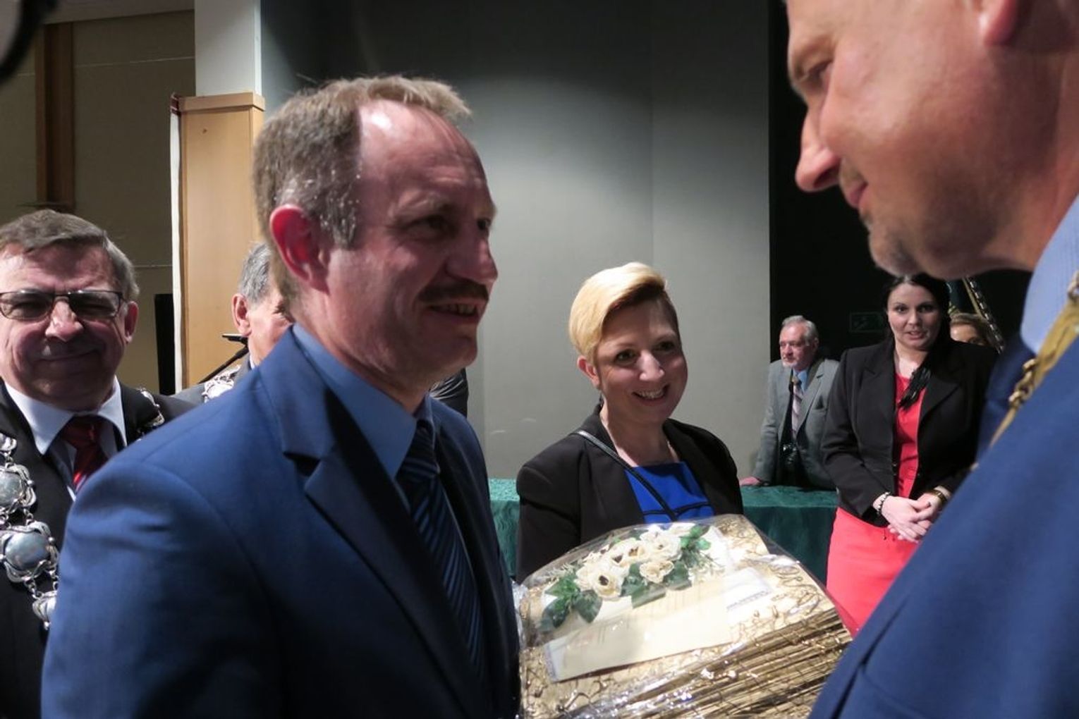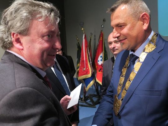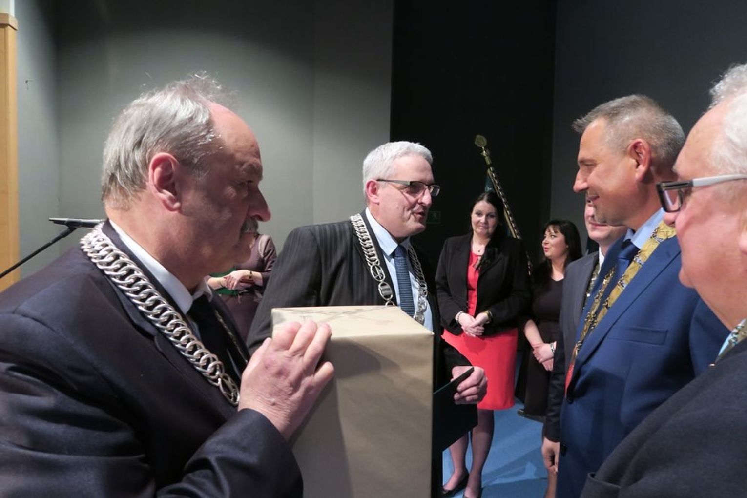 Starosta powiatu gryfińskiego Wojciech Konarski przekazał gryfińskiemu Cechowi zegar aby odmierzał kolejne szczęśliwe 70 lat.