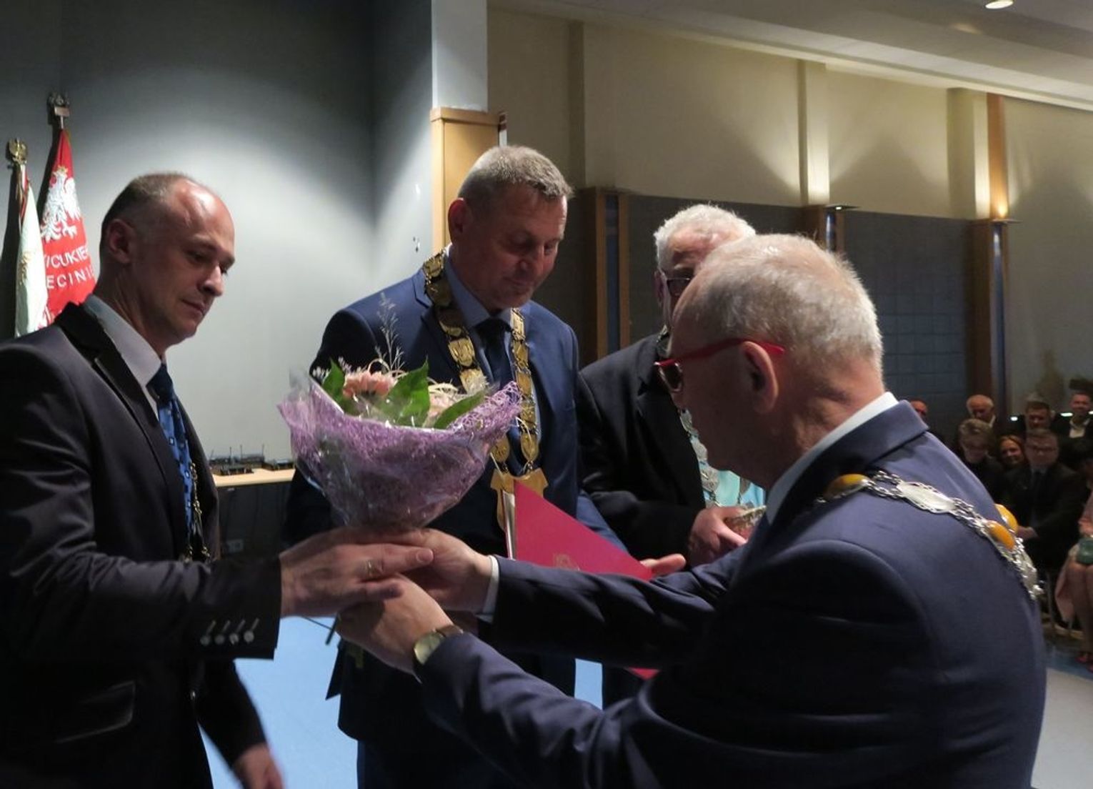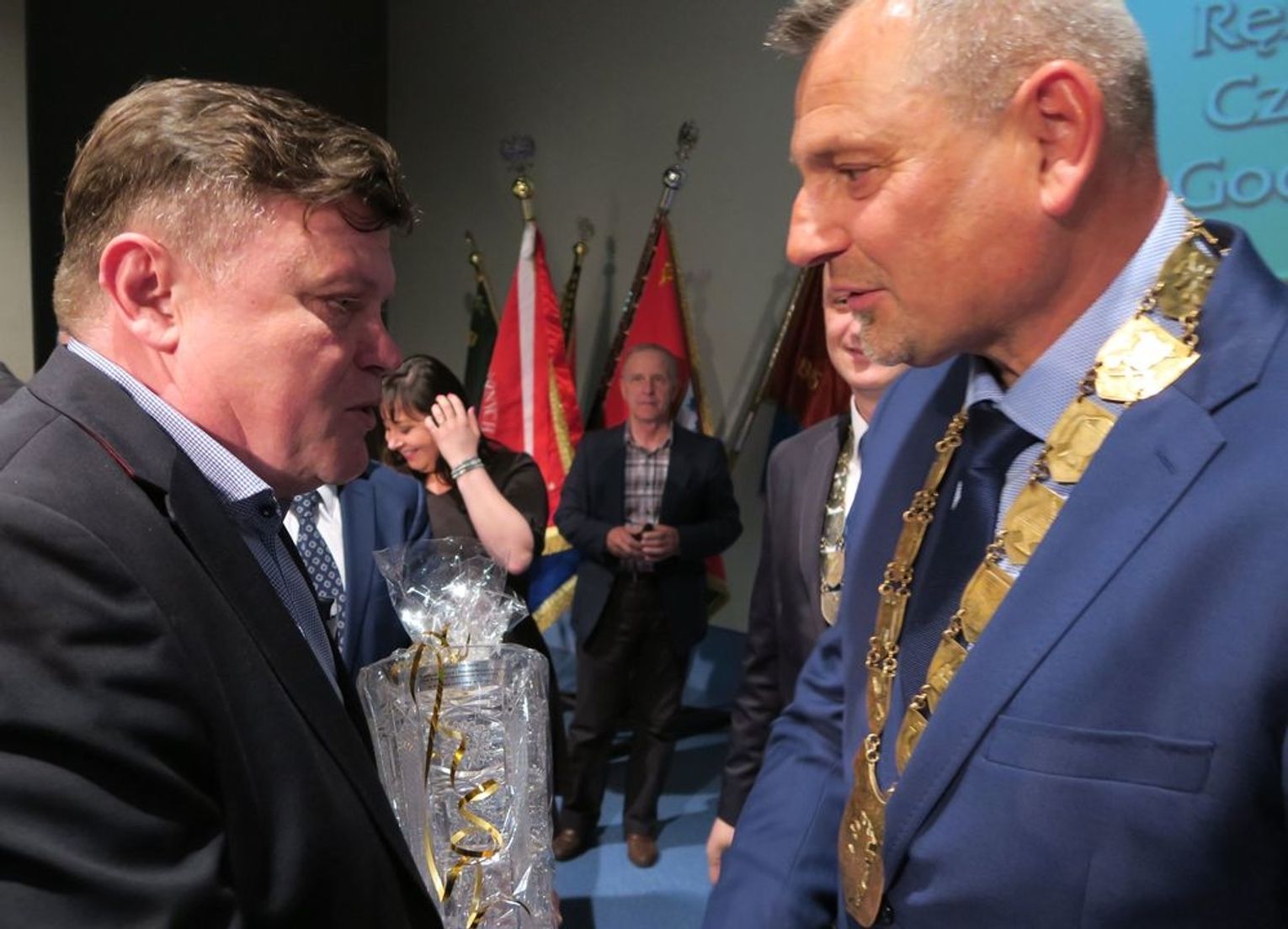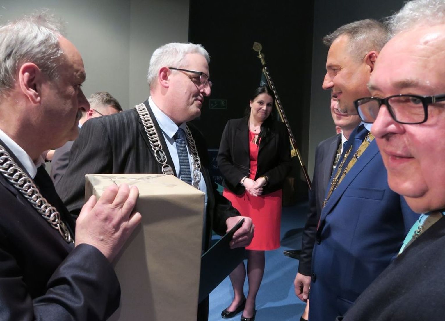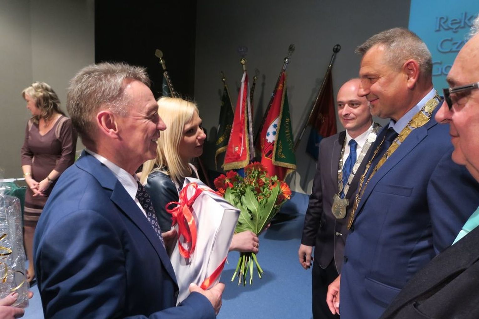 Starosta powiatu gryfińskiego Wojciech Konarski przekazał gryfińskiemu Cechowi zegar aby odmierzał kolejne szczęśliwe 70 lat.
