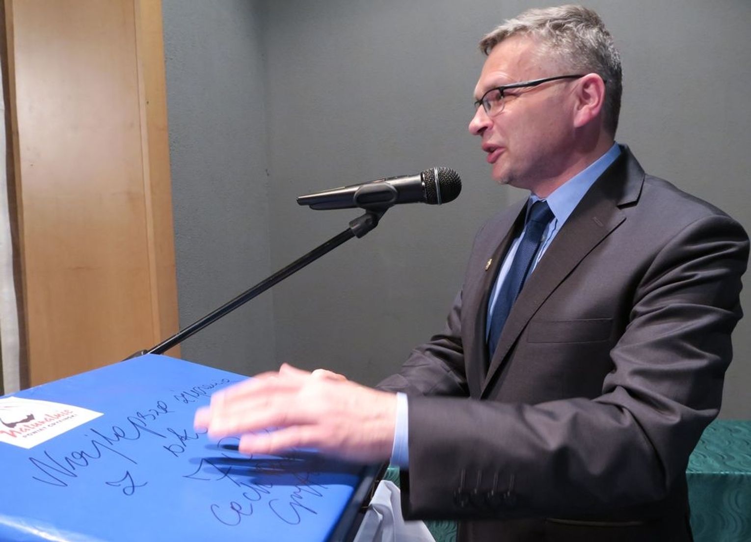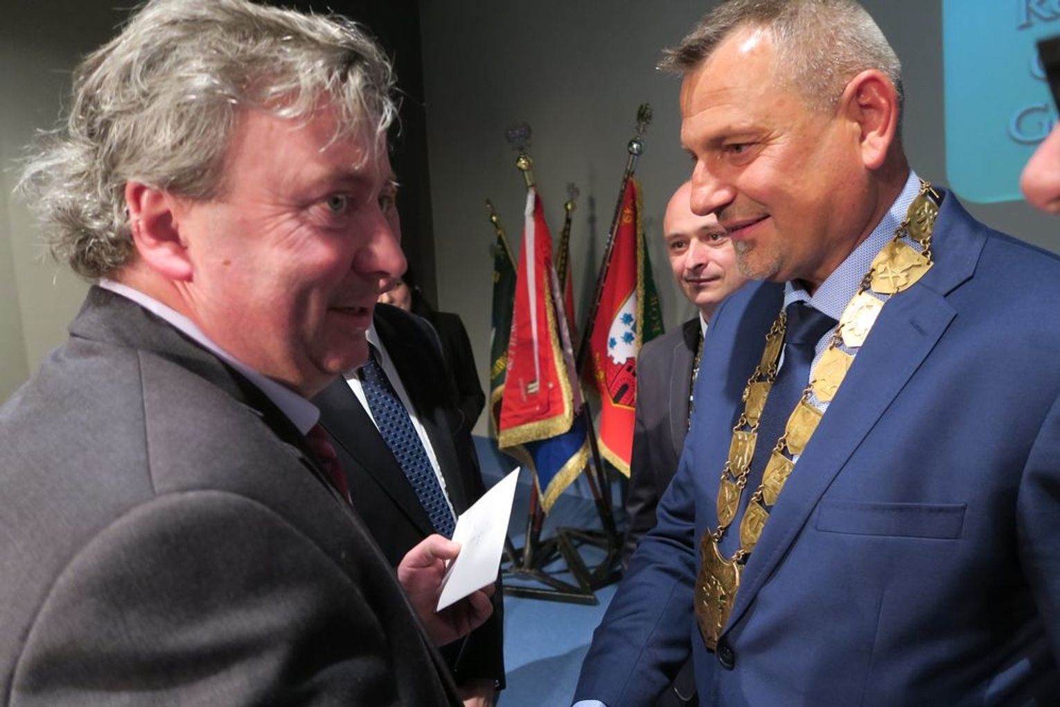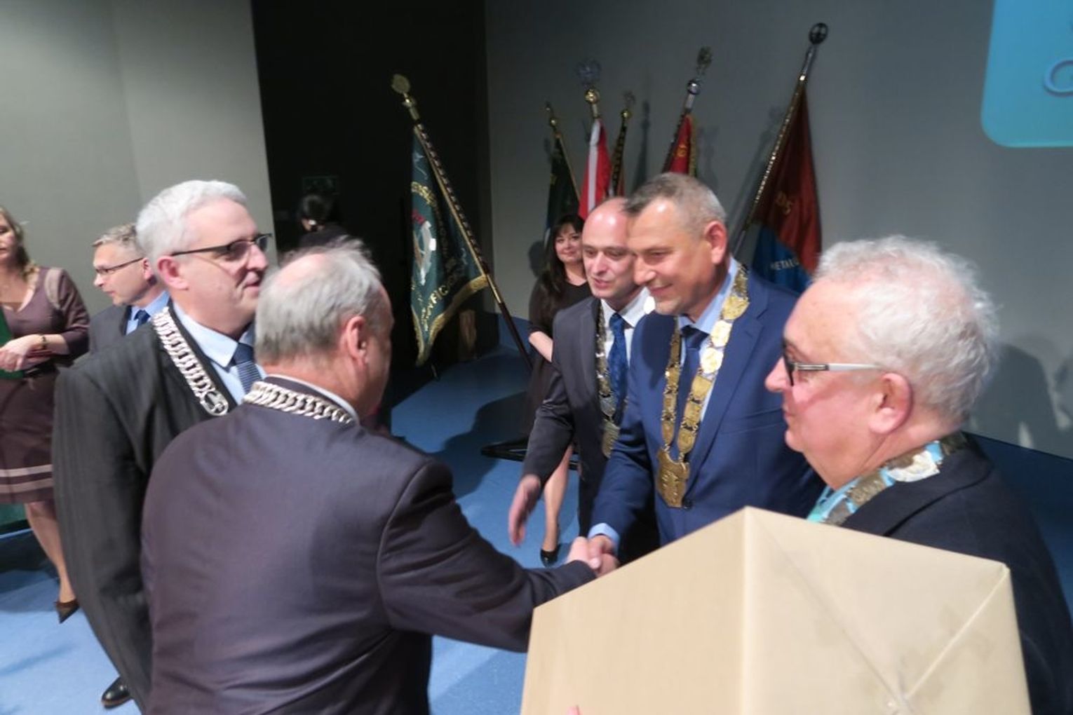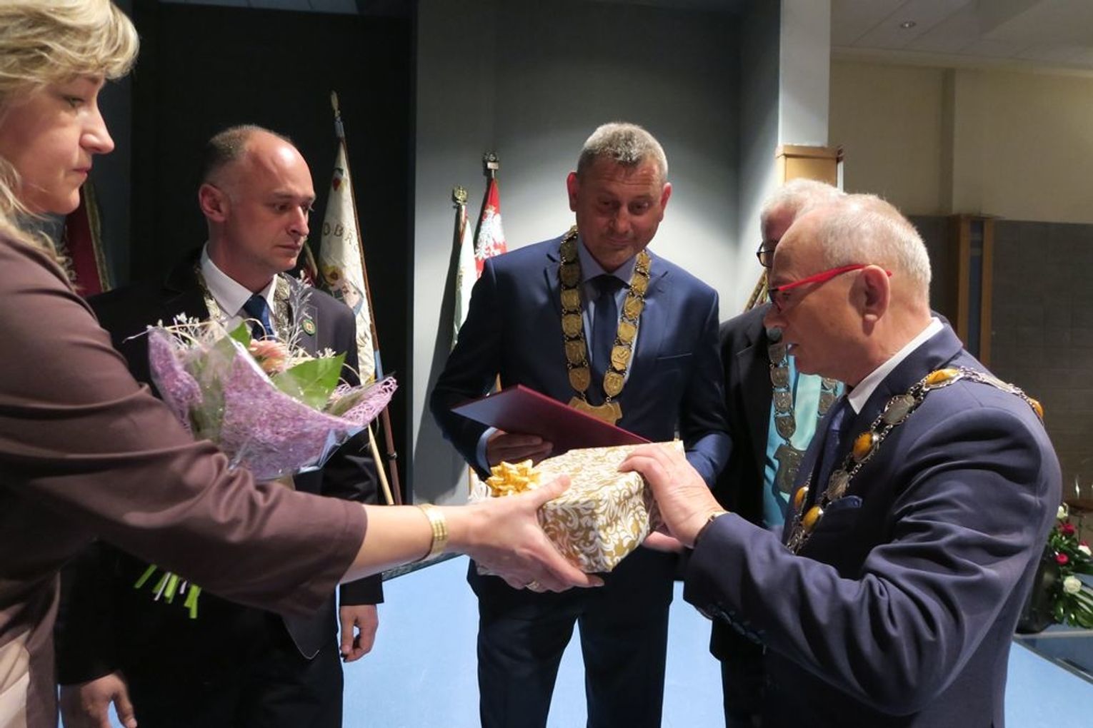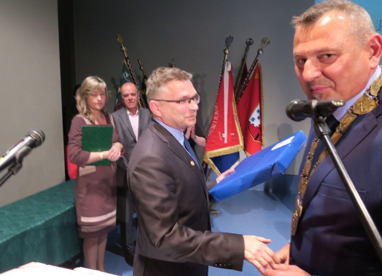 Starosta powiatu gryfińskiego Wojciech Konarski przekazał gryfińskiemu Cechowi zegar aby odmierzał kolejne szczęśliwe 70 lat.