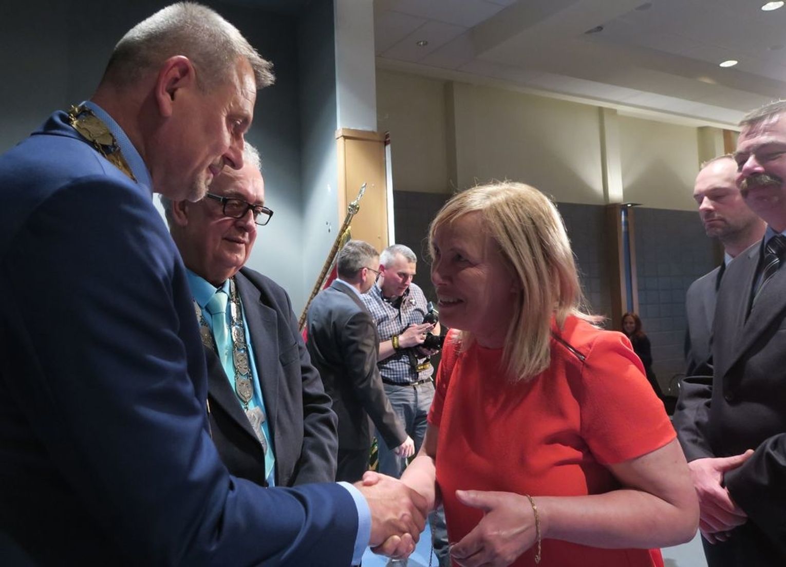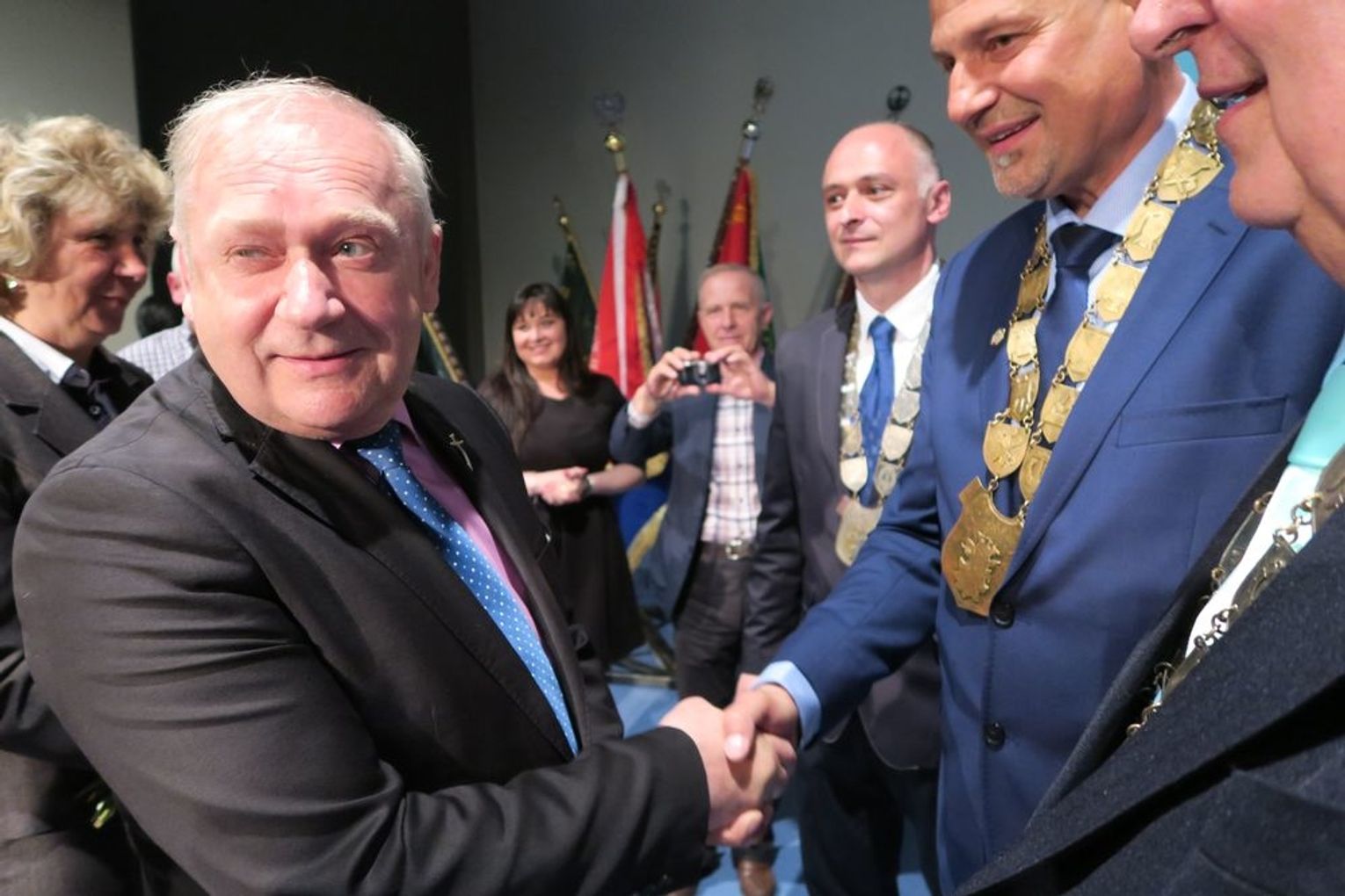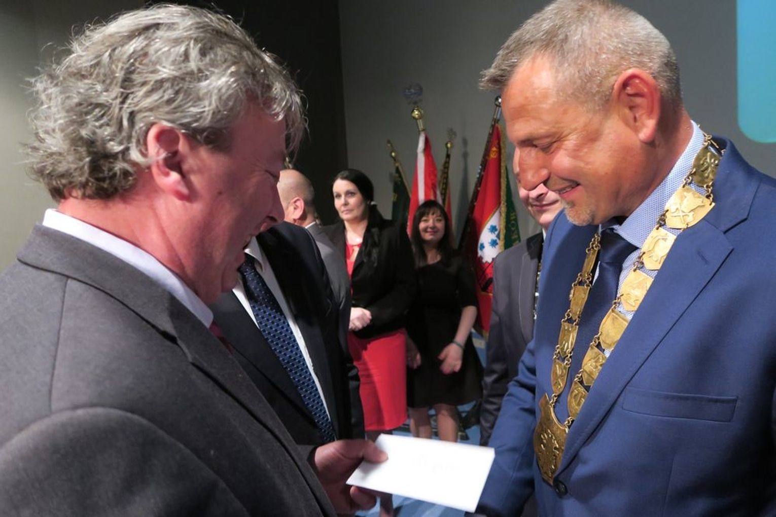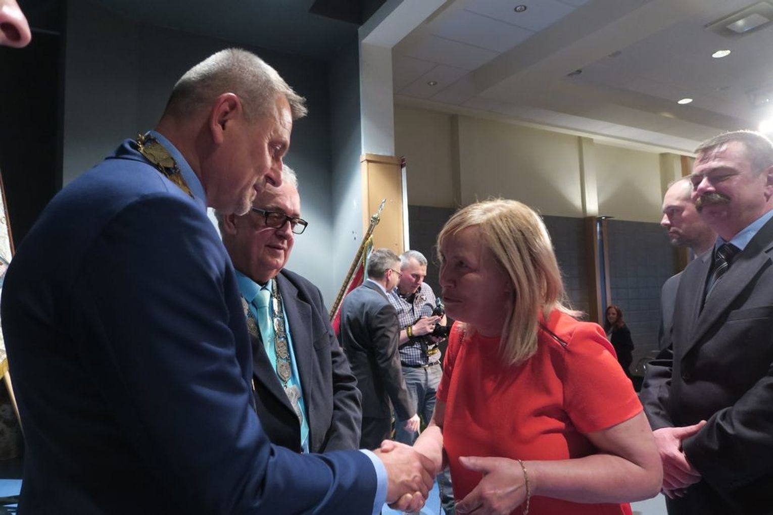 Starosta powiatu gryfińskiego Wojciech Konarski przekazał gryfińskiemu Cechowi zegar aby odmierzał kolejne szczęśliwe 70 lat.