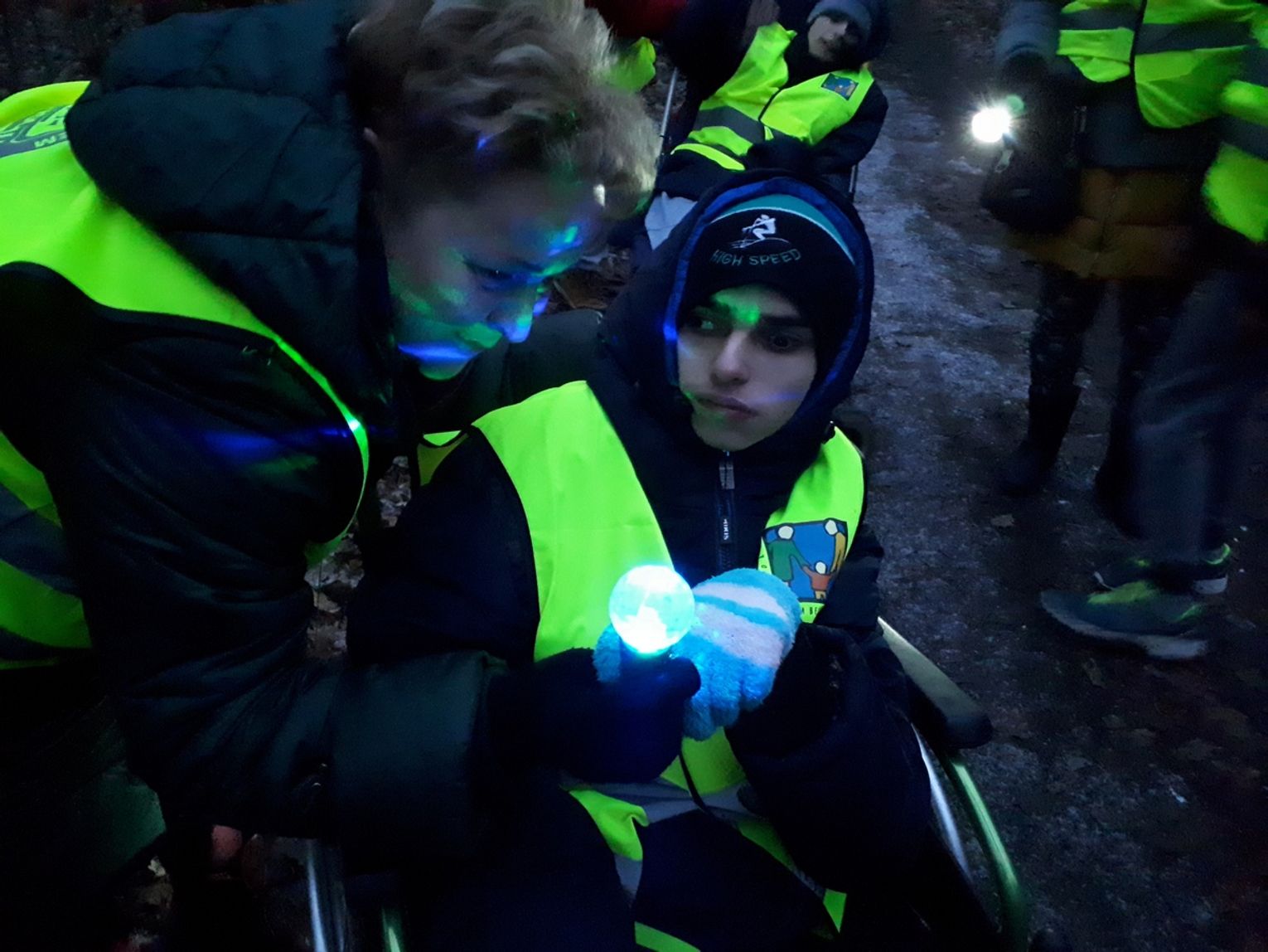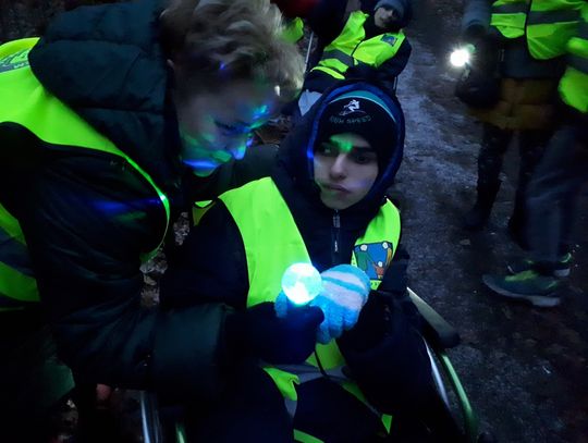 Spacer po zmroku to nasza grudniowa propozycja spędzenia czasu wolnego dla uczestników zespołów rewalidacyjno- wychowawczych Zespołu Szkół w Nowym Czarnowie w ramach realizacji Projektu Aktywizacji Sensoryczno- Motorycznej "Bawię się, doświadczam, rozwijam".