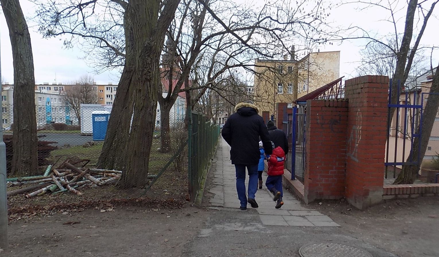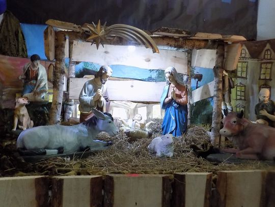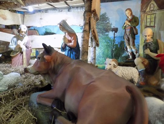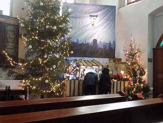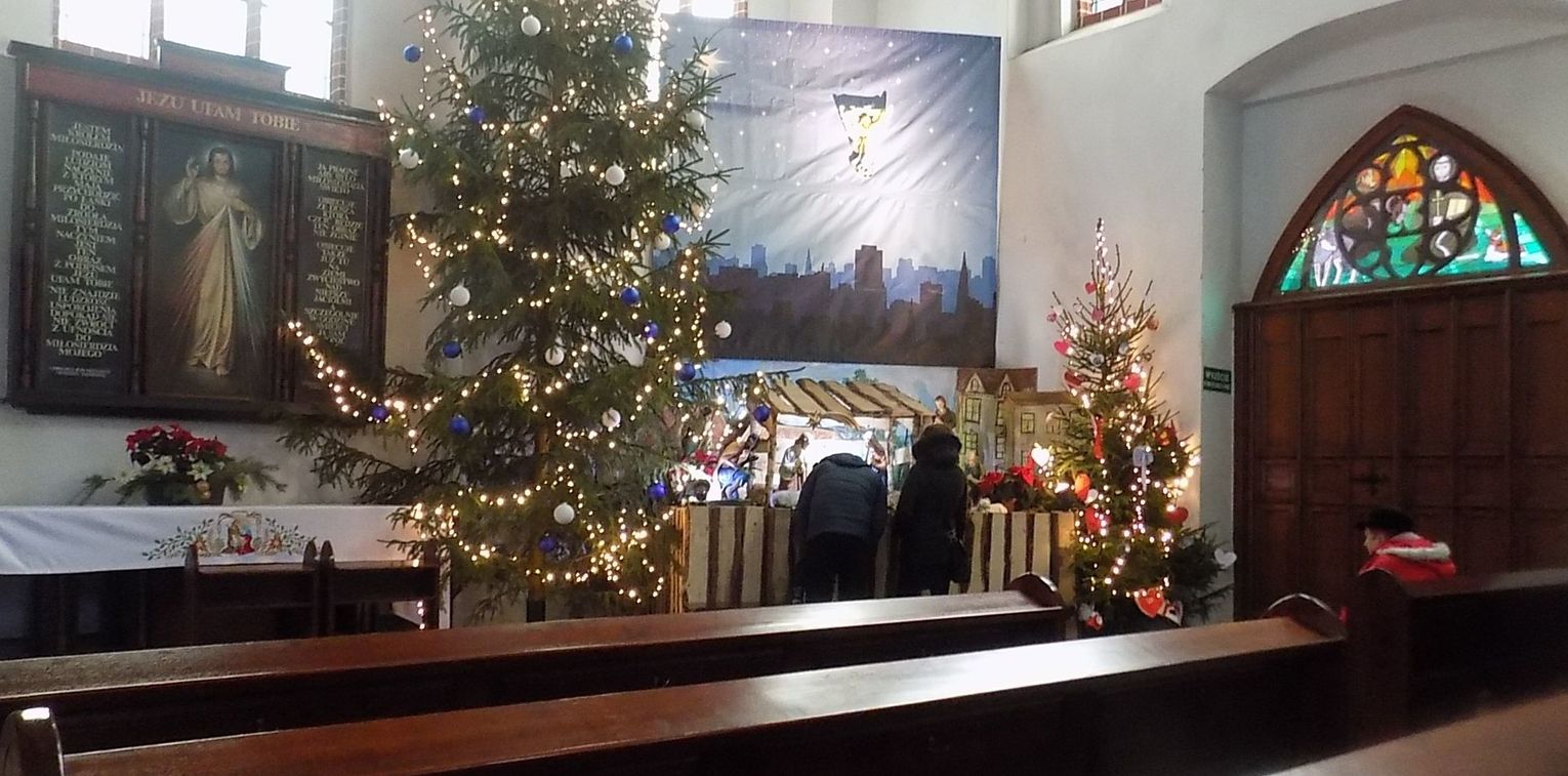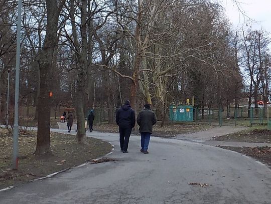 Pies przekonał swoja panią, że spacer obojgu bardzo się przyda. W parku spacerujących niewielu. Przewrócony uliczny kosz dowodzi o nadmiarze czyjejś energii. W kościele wierni odwiedzają Pana Jezusa w żłóbku.