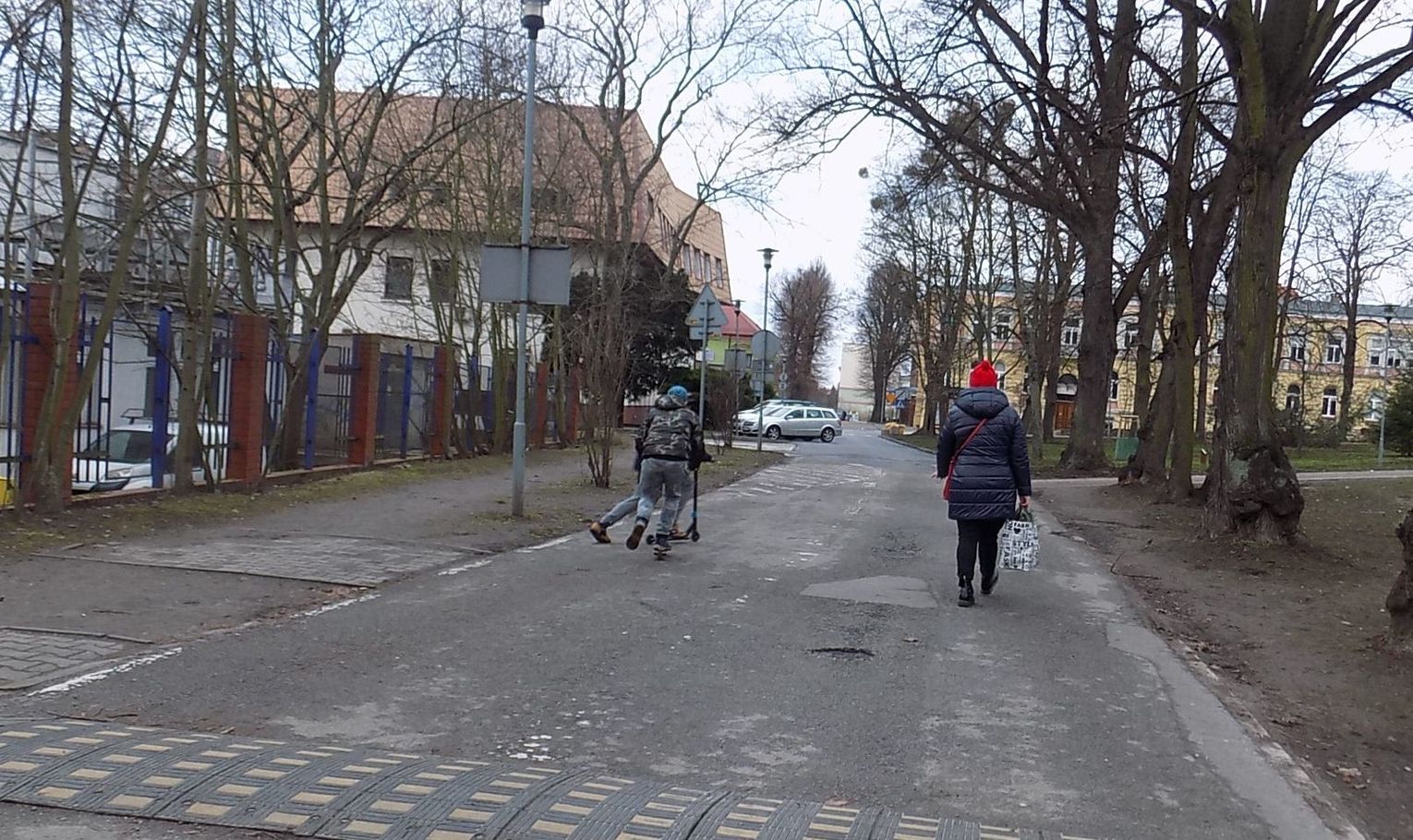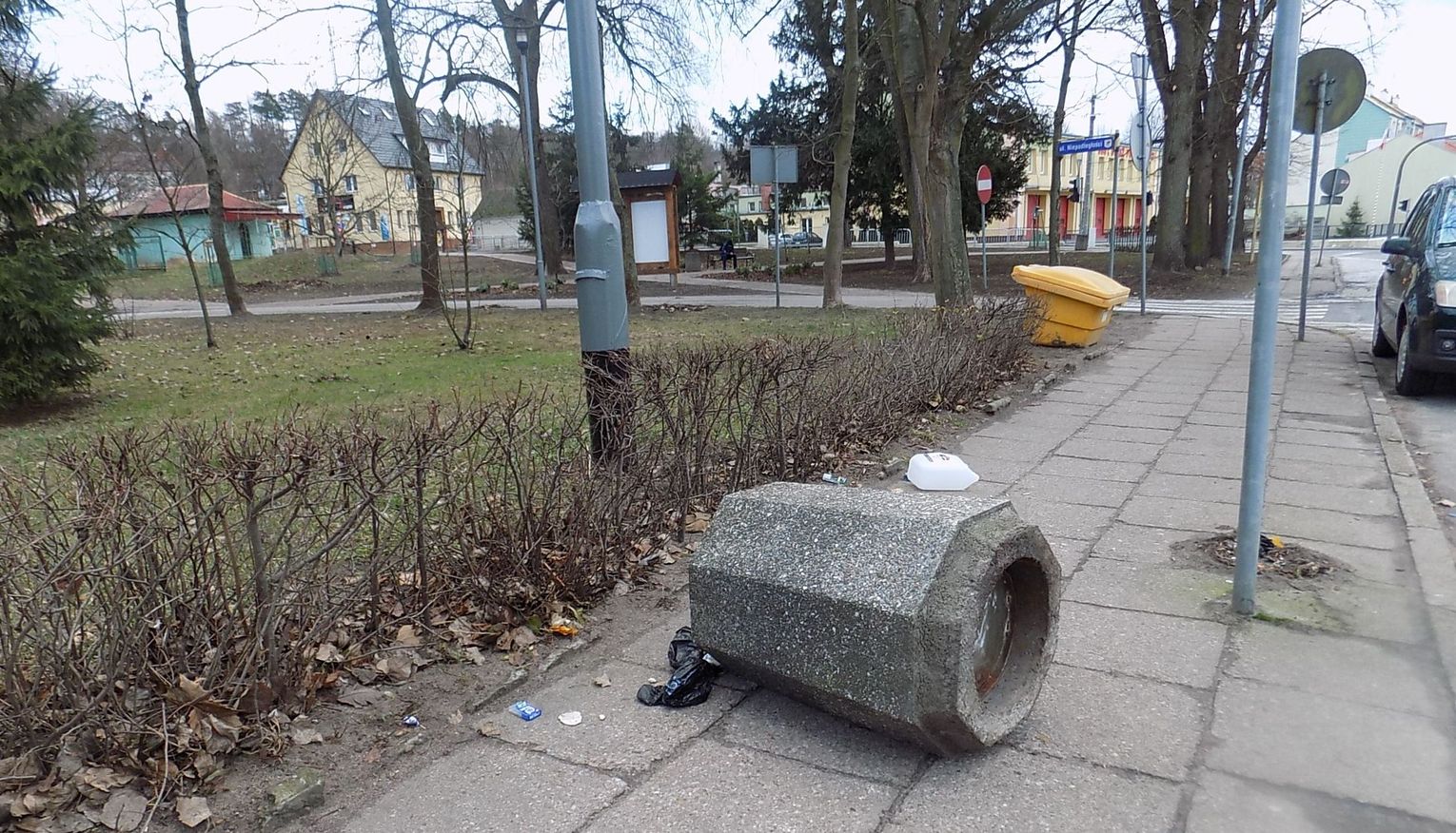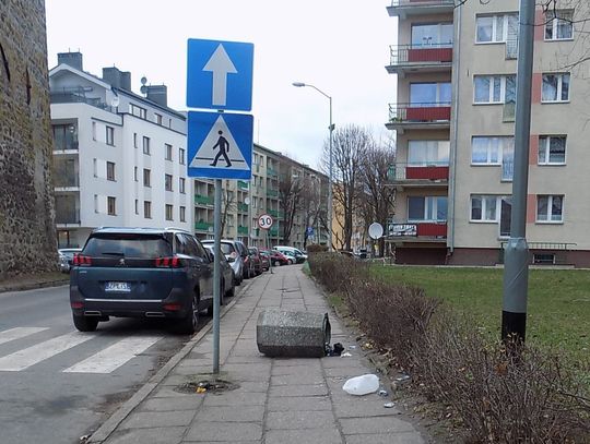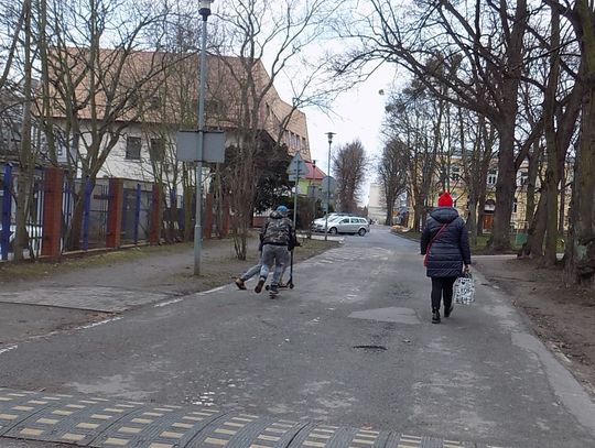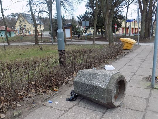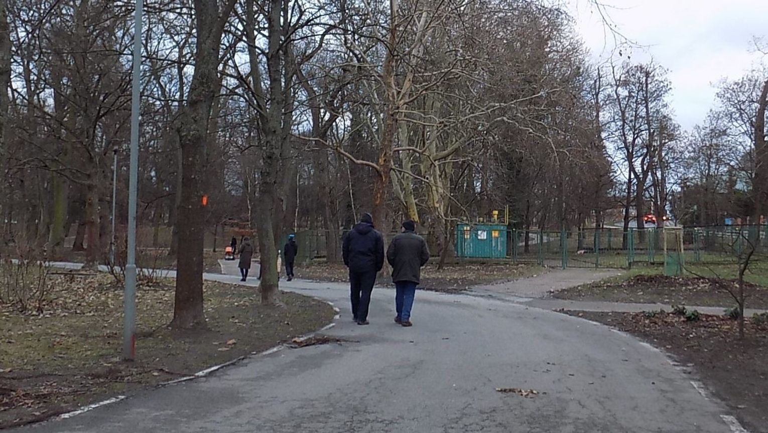 Pies przekonał swoja panią, że spacer obojgu bardzo się przyda. W parku spacerujących niewielu. Przewrócony uliczny kosz dowodzi o nadmiarze czyjejś energii. W kościele wierni odwiedzają Pana Jezusa w żłóbku.