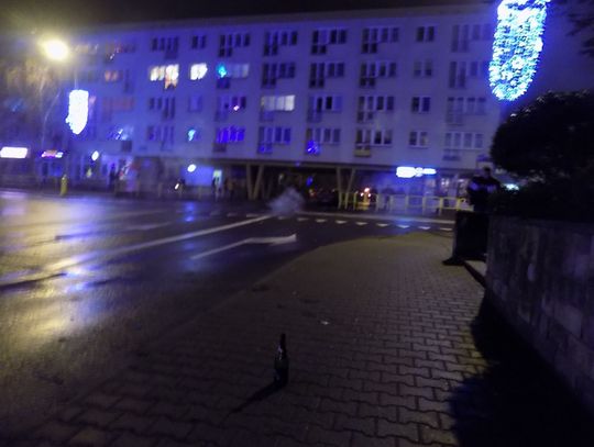 Na krzyżówce ulic Bolesława Chrobrego i Piastów niebezpiecznie przechyliła się tej nocy lampa. Sprawą zajmuje się policja i straż pożarna. Mają przyjechać przedstawiciele Enei i odciąć prąd. W tym czasie strażacy zetną lampę.