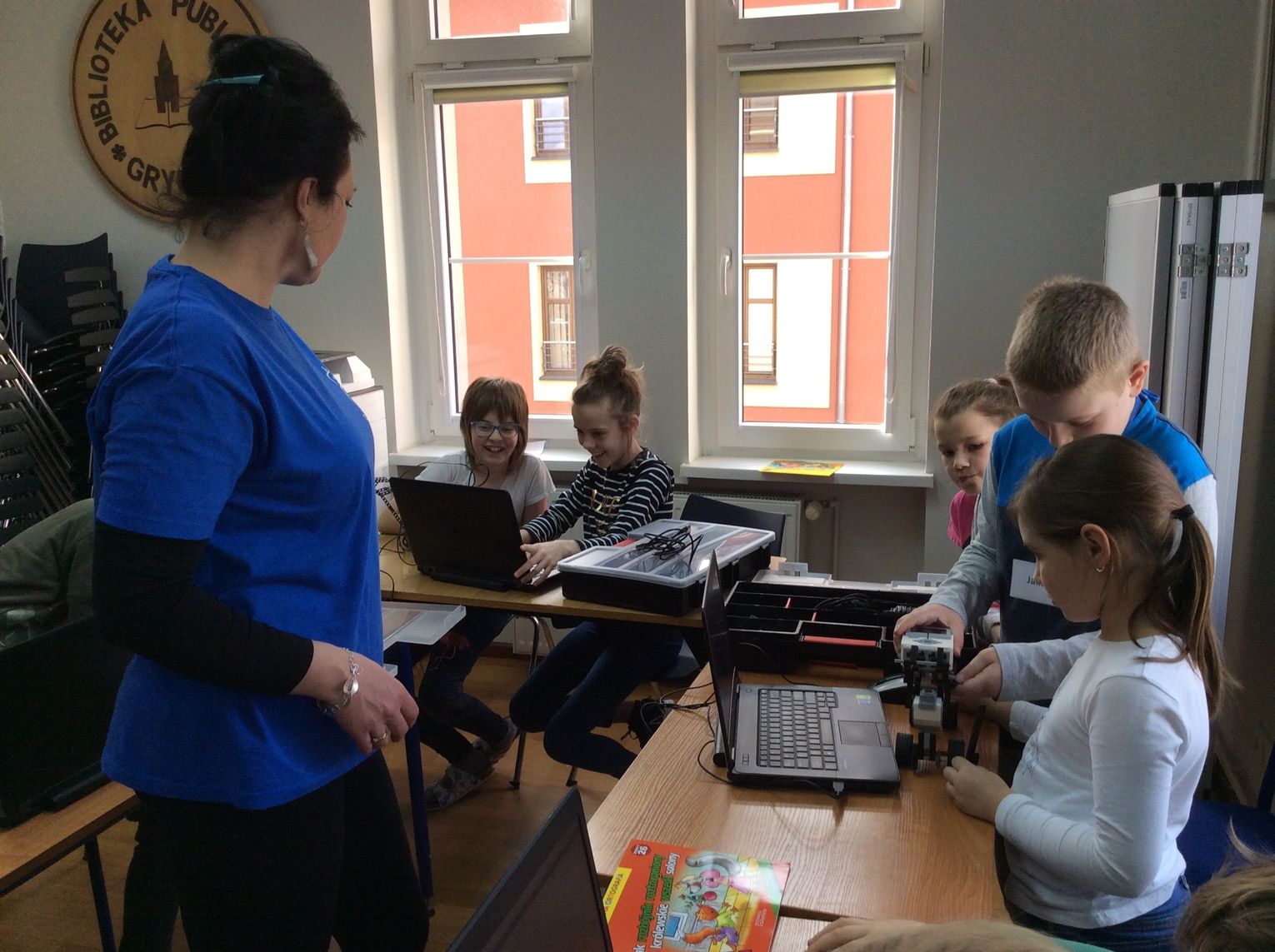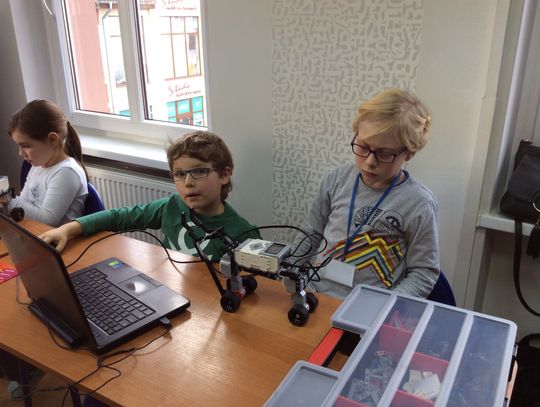 Podczas dwóch dni BIBLIOFERIADY w Bibliotece Publicznej w Gryfinie, dwadzieścioro jej uczestników w wieku 8-12 lat uczestniczyło w bezpłatnych warsztatach z robotyki pod kierunkiem pani Kamili Olek. Dzieci budowały LEGOkonia do turnieju rycerskiego i programowały strategię jak w zawodach pokonać przeciwnika, aby jego koń się przewrócił. Była to świetna zabawa połączona z kreatywną nauką.