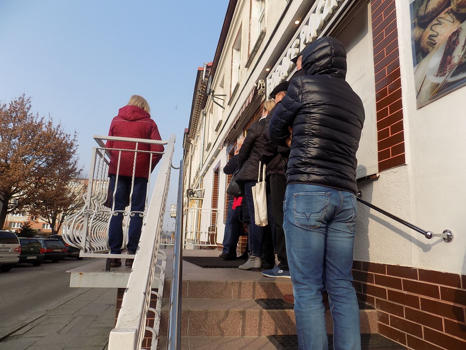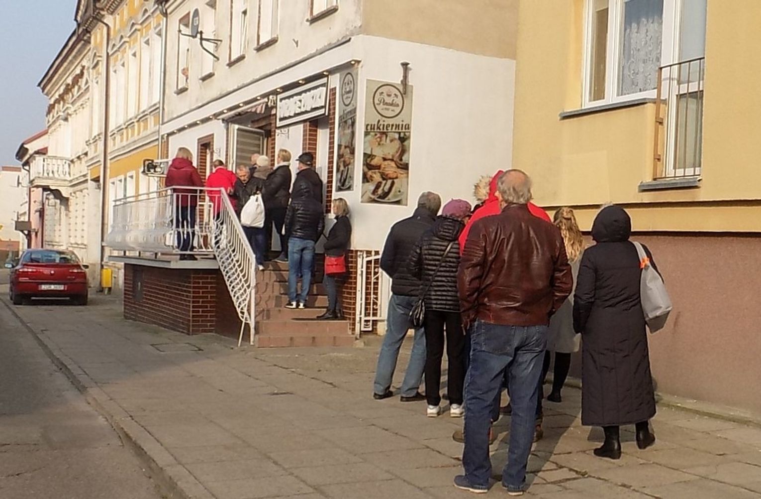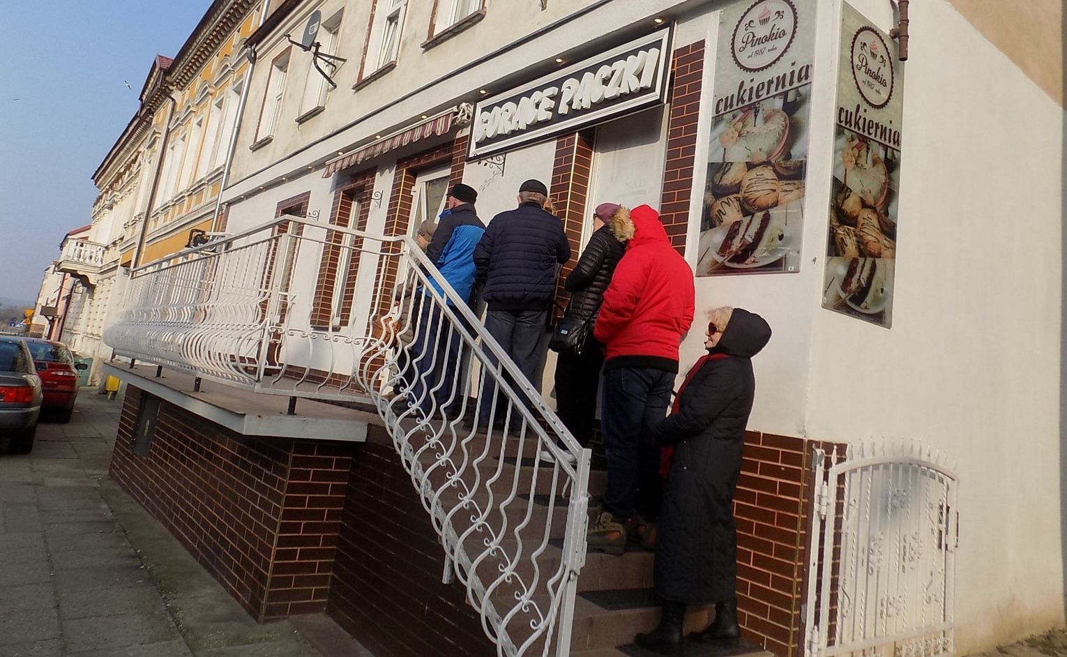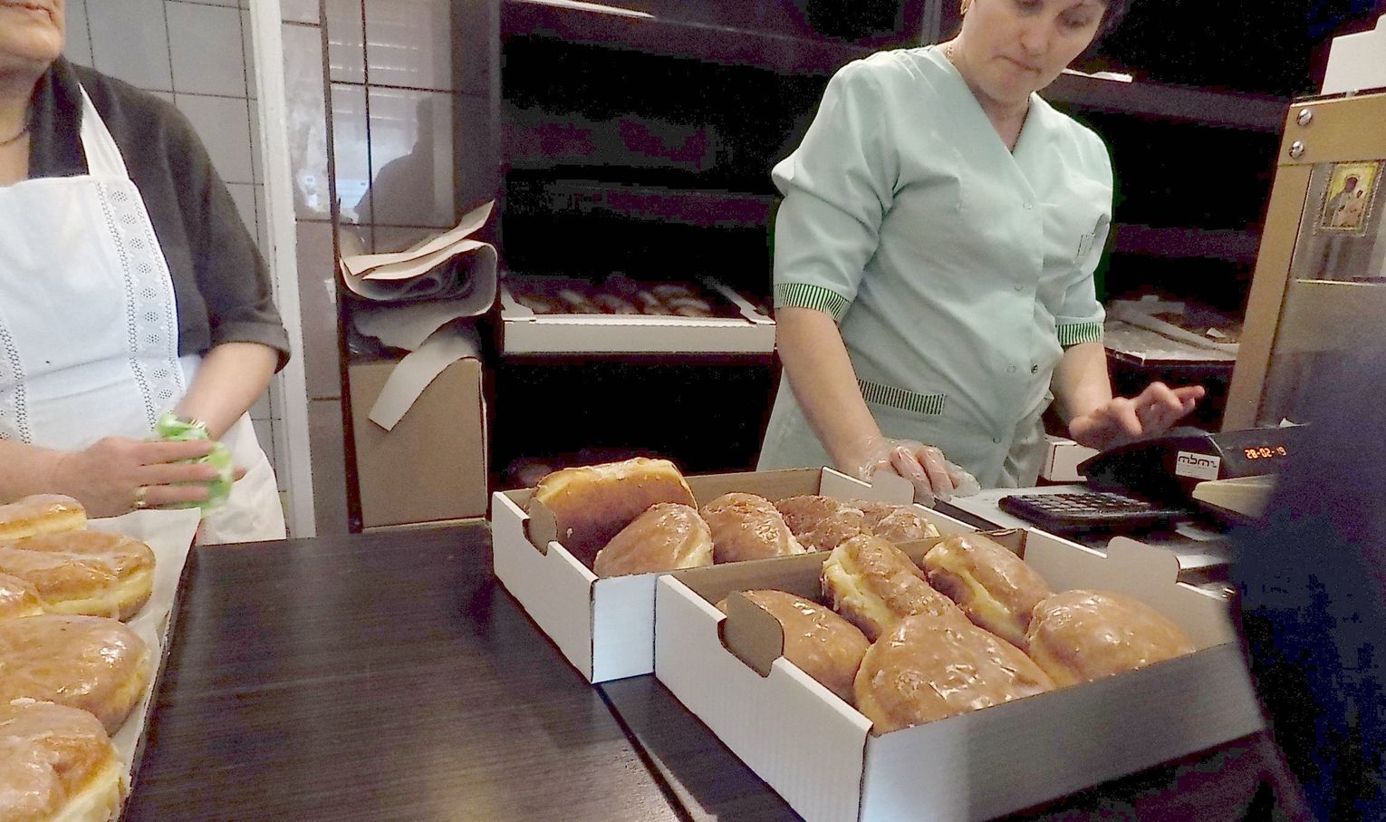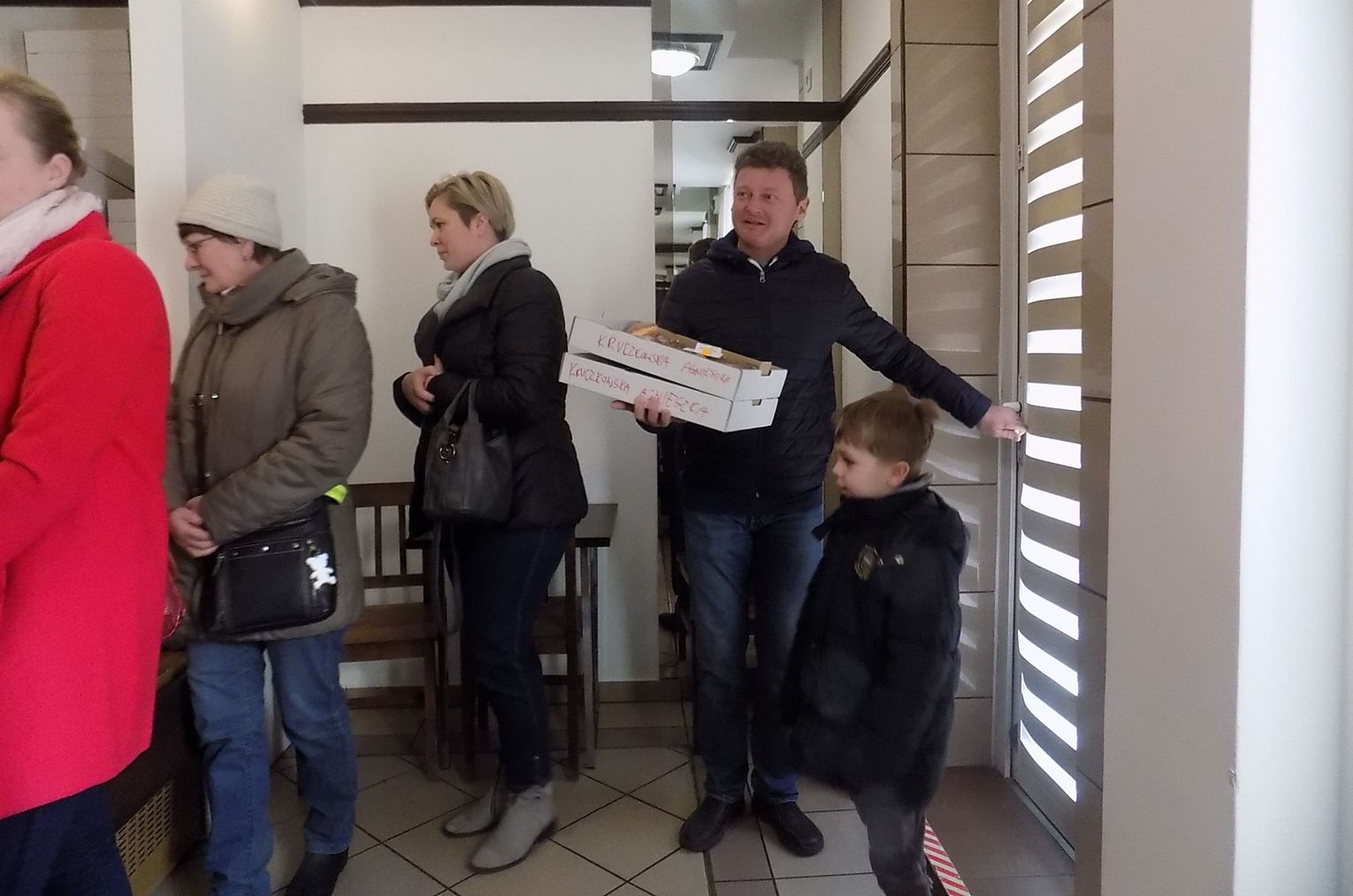 Faworków również nie brakuje. Największy ruch jest w „starej” cukierni przy ul. Kościuszki. Właściciel Leszek Wierszyłowki z załogą dwoją się i troją, żeby nadążyć z obsłużeniem niezmniejszającej się kolejki.