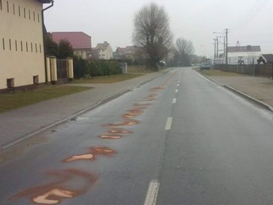 Plamy substancji ropopochodnej na drodze wojewódzkiej