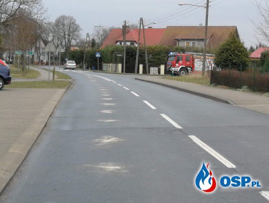 Dzisiaj 3 marca 2019 r. około godziny 10:13 dyżurny stanowiska kierowania Komendy Powiatowej Państwowej Straży Pożarnej w Gryfinie zadysponowal dwa zastepy z jednostki OSP Moryń na ulicę Odrzańską w Moryniu. Po dotarciu na miejsce zdarzenia stwierdzono, że doszło do zabrudzenia jezdni od ulicy Dworcowej aż do tak zwanego białego asfaltu w kierunku Starych Łysogórek.