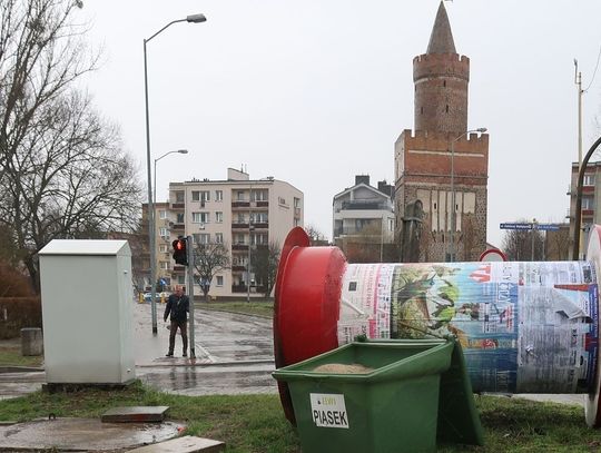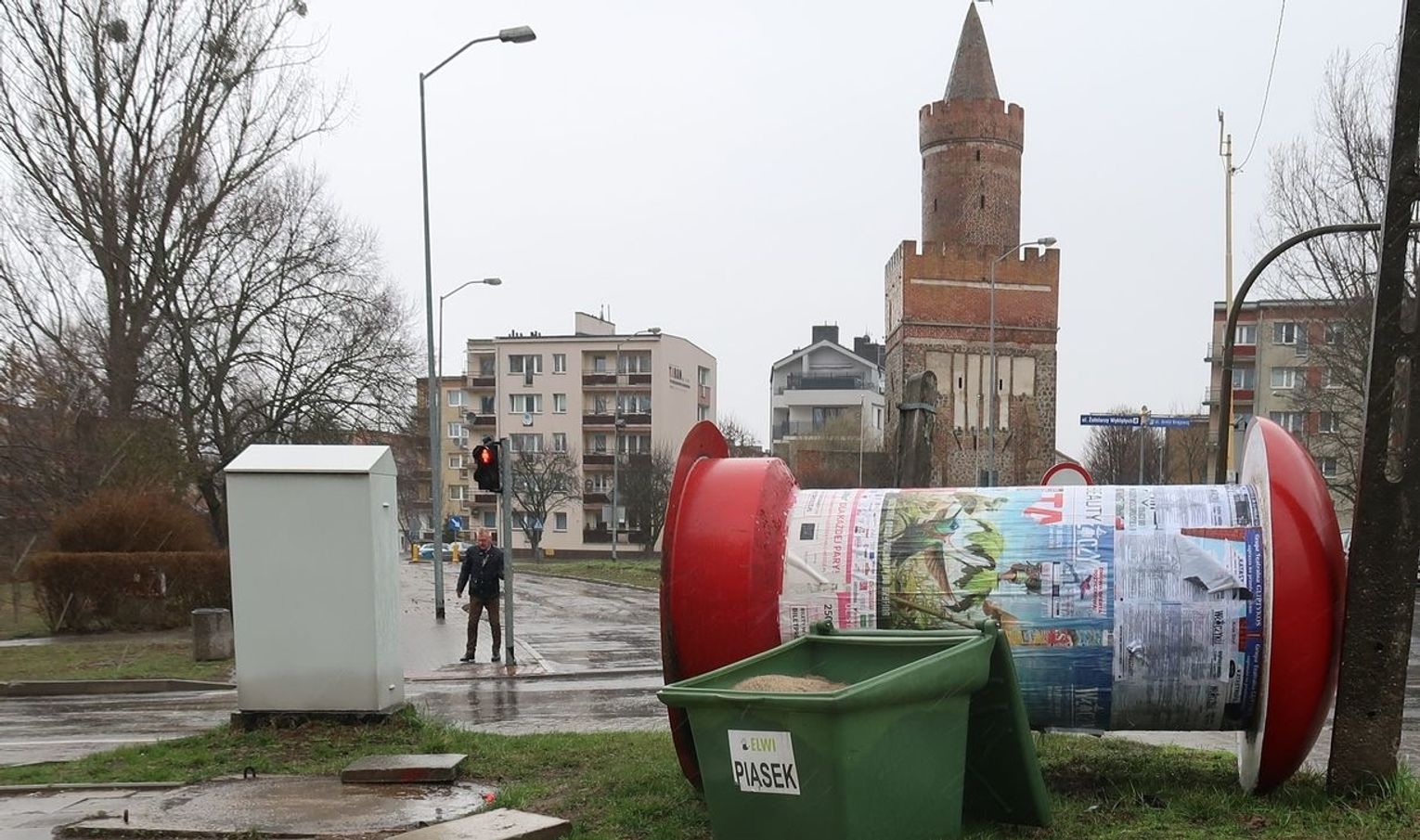 Grzybek na wieszanie plakatów i informacji grozi "wtargnięciem" na ulicę. Słupek informacyjny przewrócił się na skrzyżowaniu ulic Bolesława Chrobrego i Żołnierzy Wyklętych w Gryfinie.
