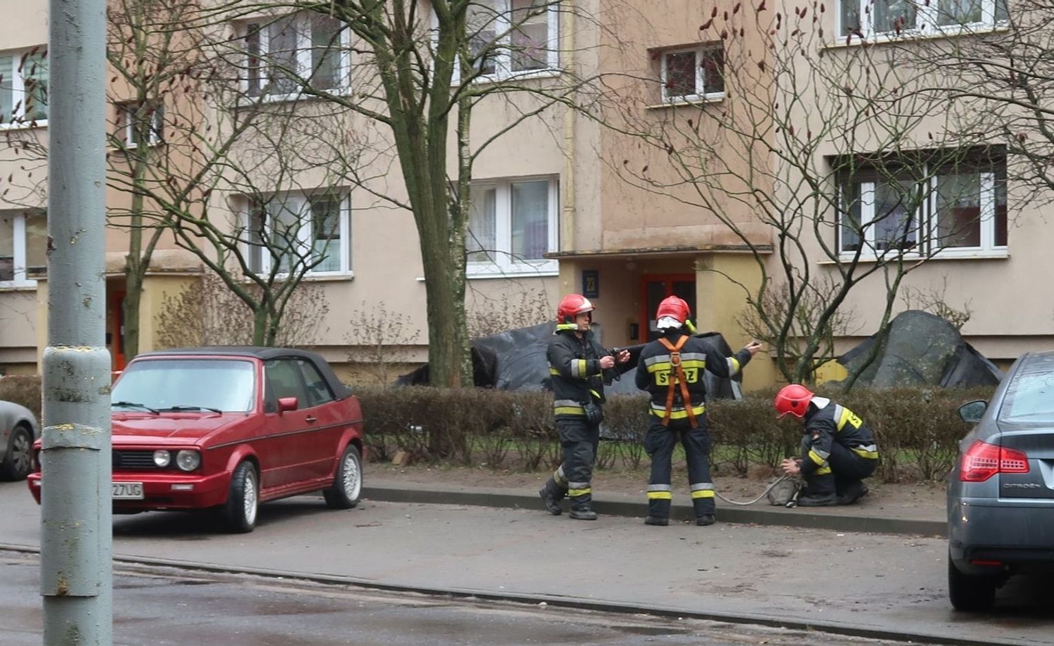 Strażacy zabezpieczyli teren i odcięli zwisającą z góry papę. Do momentu zebrania papy przejście jest utrudnione.