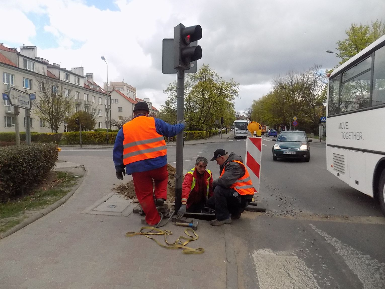 Drogowcy od świateł przyjechali dziś do Gryfina. Pisaliśmy już, że ostatnimi czasy zdarzało się, że światła sygnalizacyjne na rogu ulic Bolesława Chrobrego i 1 Maja w Gryfinie nie działały. Bywało, że brakowało zielonego światła. Skargi naszych czytelników zostały wysłuchane… Dziś ekipa pracowników instalowała niemal wszystko od nowa, zmieniała kable do lamp sygnalizacyjnych. Mamy zatem nadzieję, że teraz wszystko będzie działało bez zarzutu.