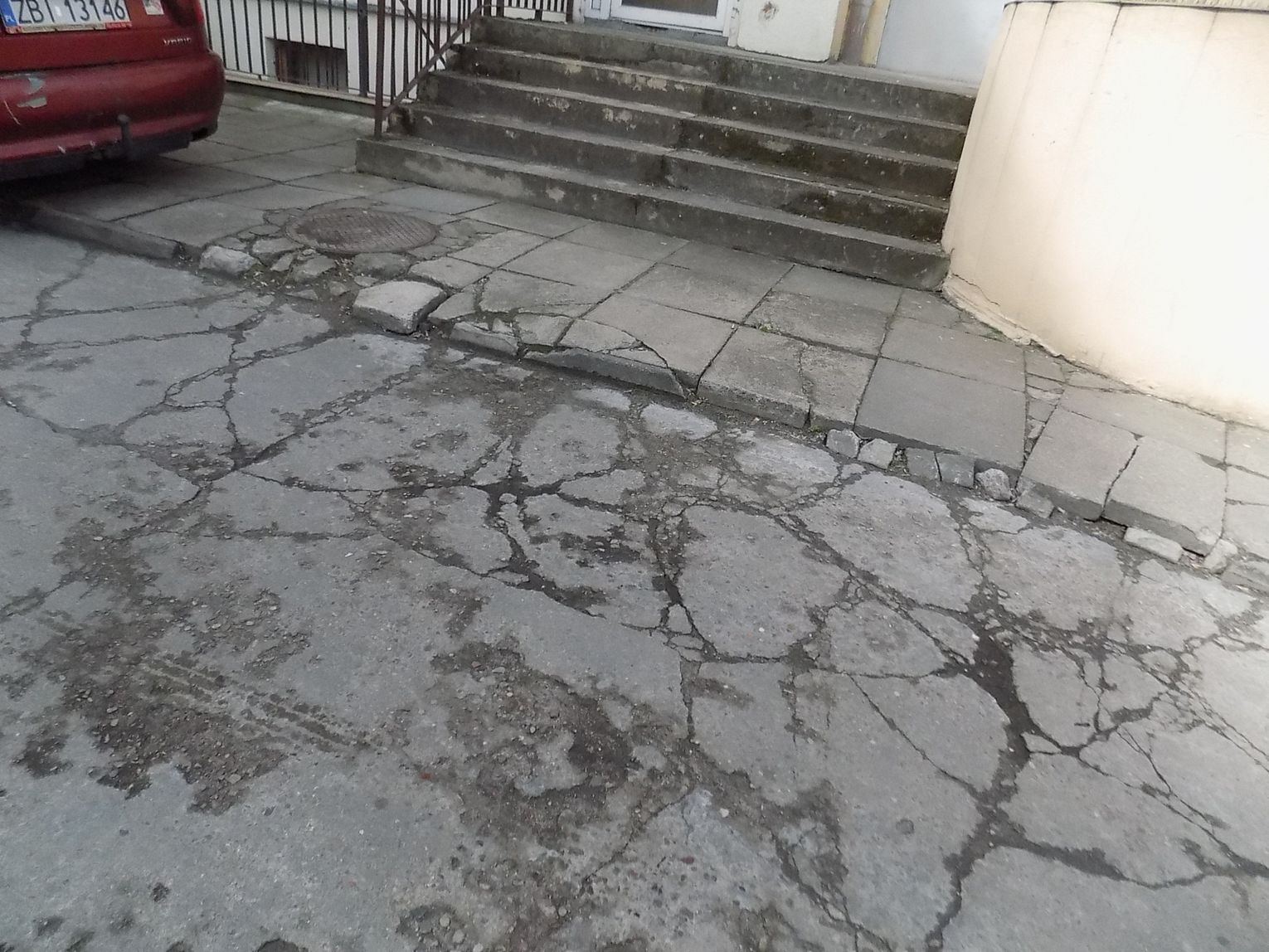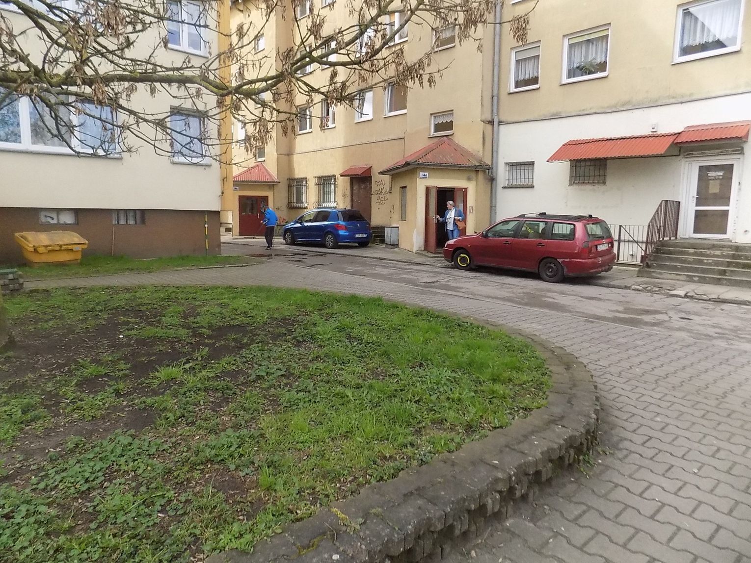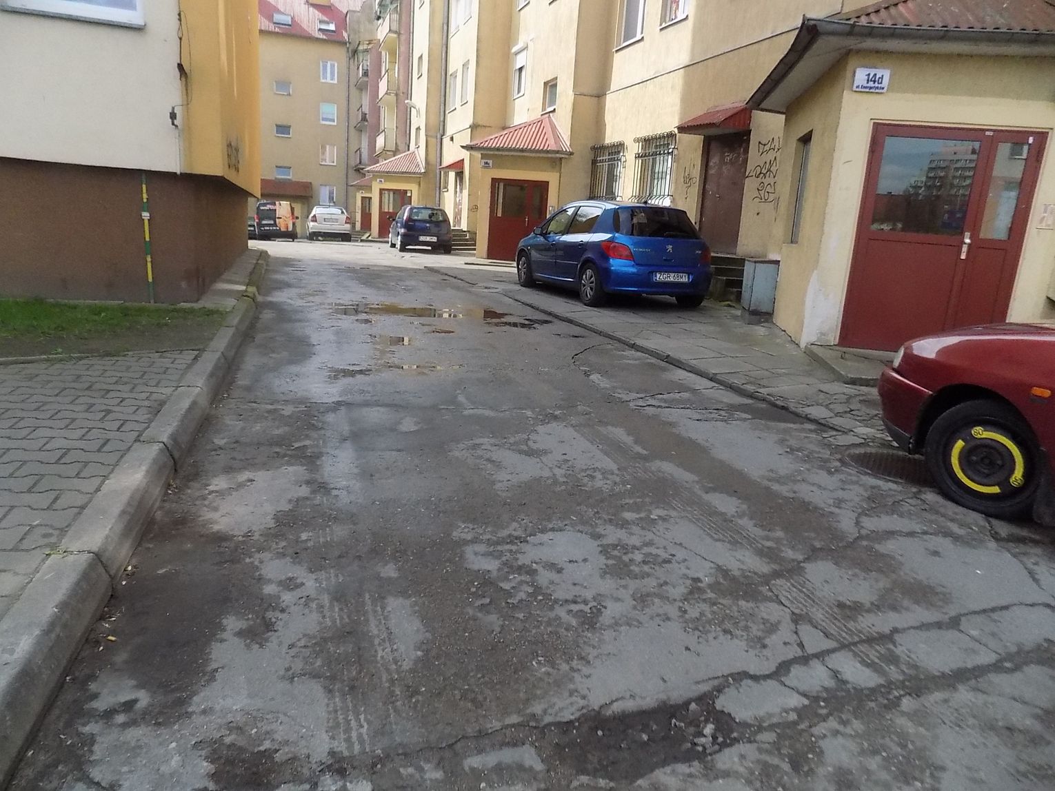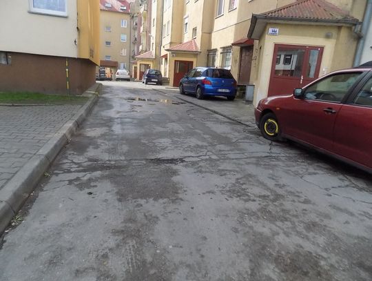 Mieszkańcy ciesząc się i dziękując za naprawę, uśmiechają się prosząc o zwrócenie uwagi na biegnącą obok osiedlową uliczkę. Może udałoby się trochę ją wyrównać i zasypać dziury? Od pewnego czasu parkują na niej samochody należące nie tylko do lokatorów pobliskich bloków.