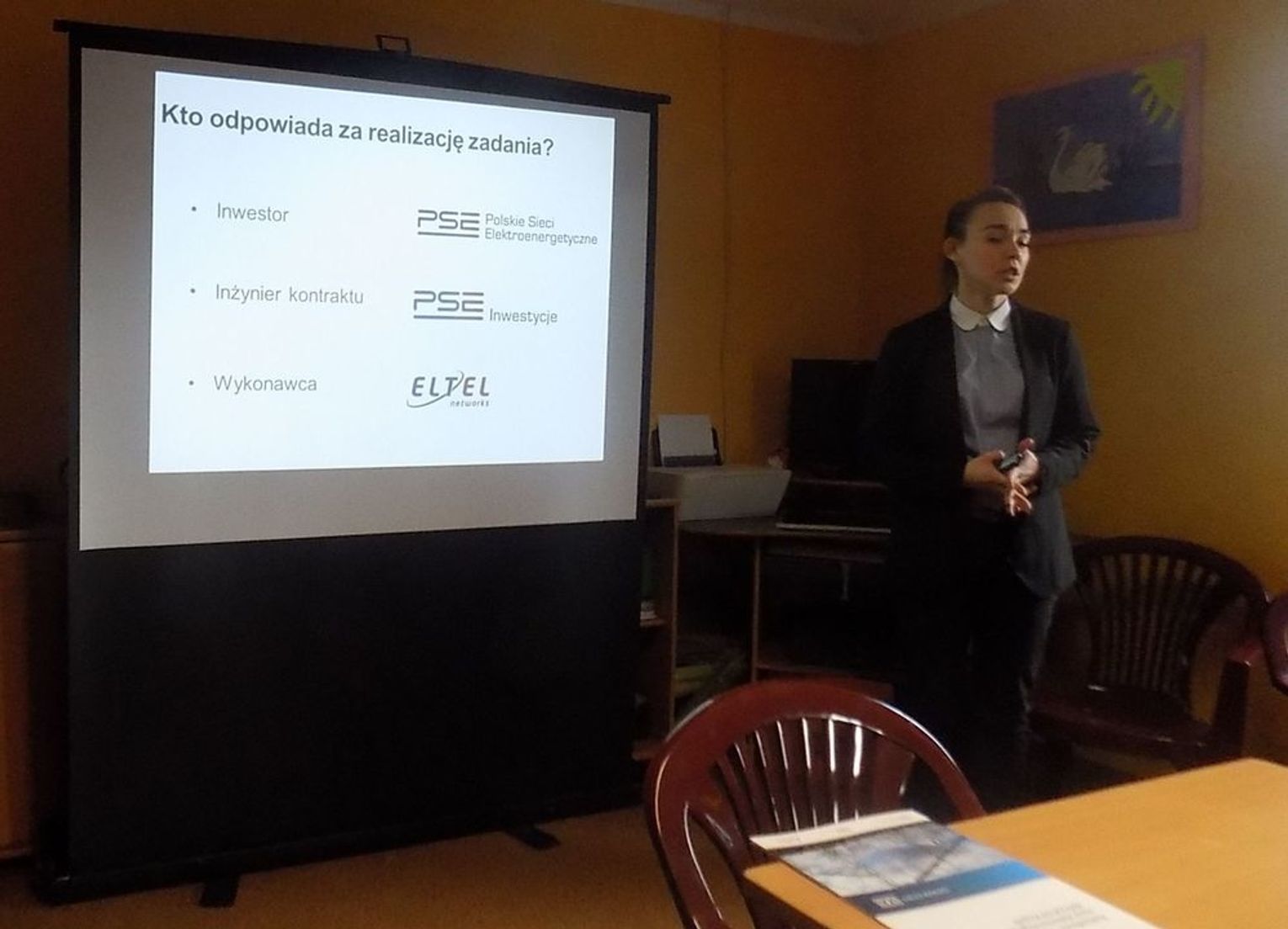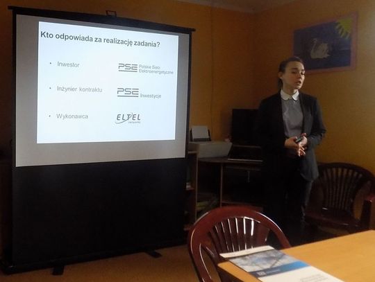 W małej salce świetlicowej zebrała się grupka osób chcących pozyskać informacje dotyczące przebiegu prac oraz - co dla nich bardzo istotne - wpływu prowadzonej inwestycji na otoczenie. Po przedstawieniu gości przez radną, interesującą i wyczerpującą prezentację dotyczącą znaczenia stacji Krajnik dla krajowego systemu przesyłowego, zakresu inwestycji i zasad współpracy wykonawcy z właścicielami nieruchomości, na których prowadzone będą prace modernizacyjne przedstawiła Katarzyna Piekarniak.