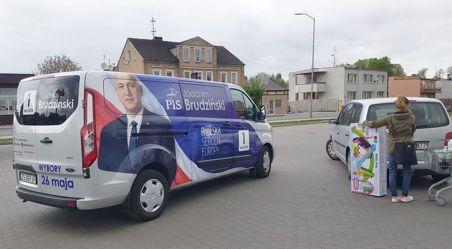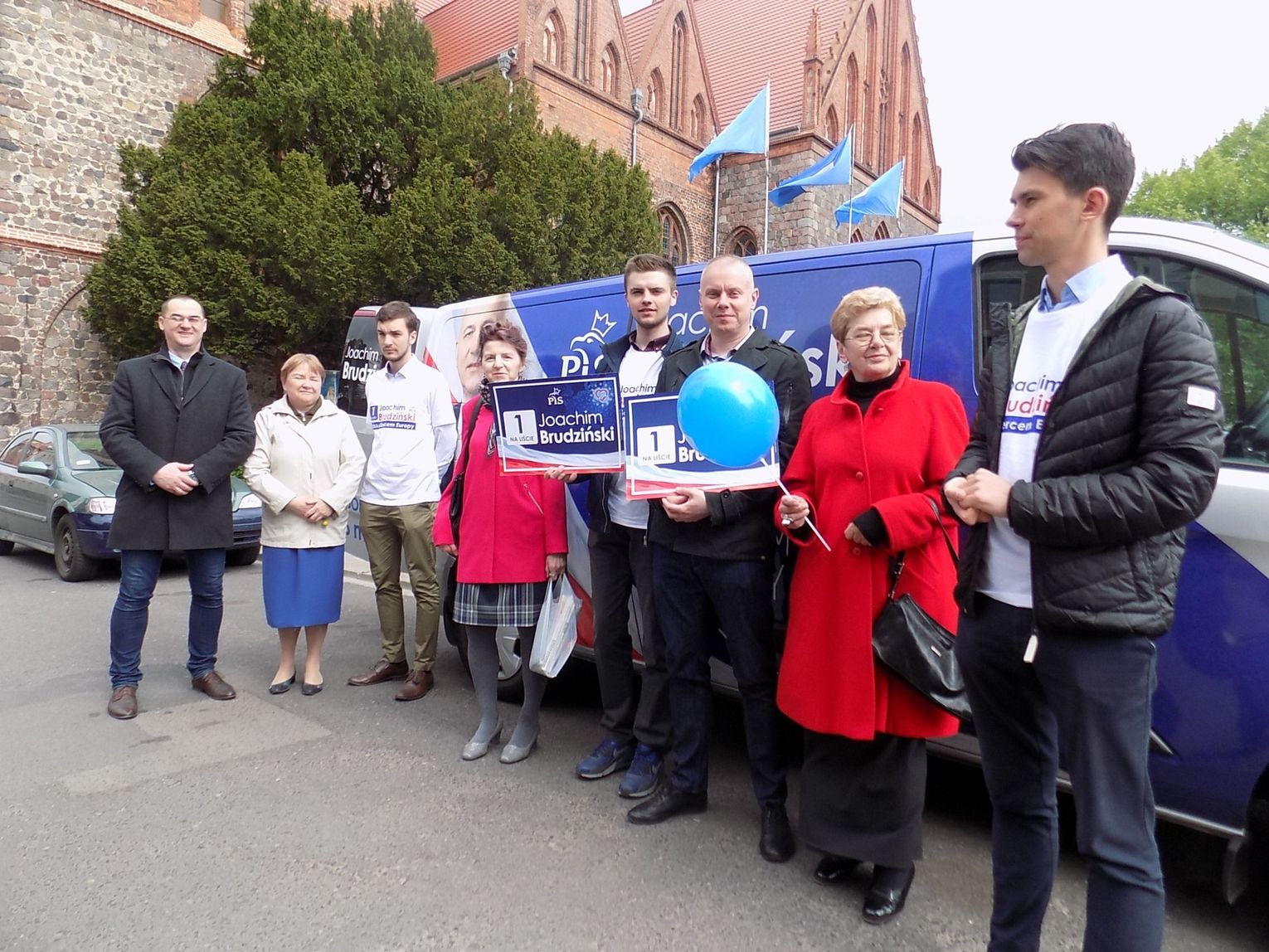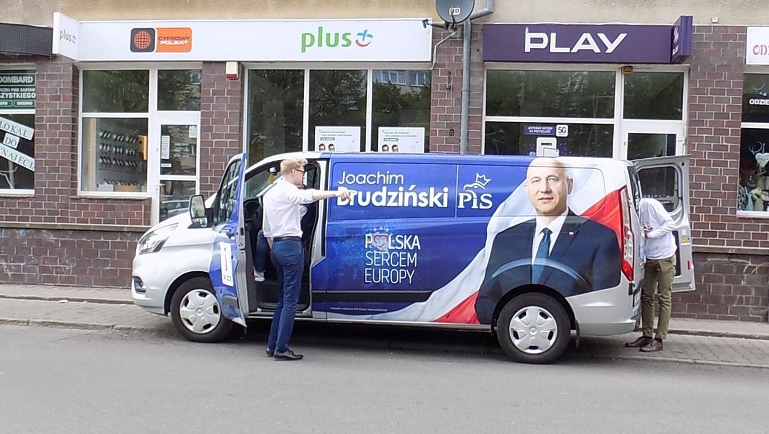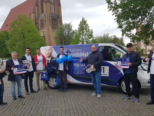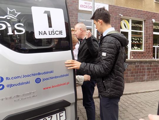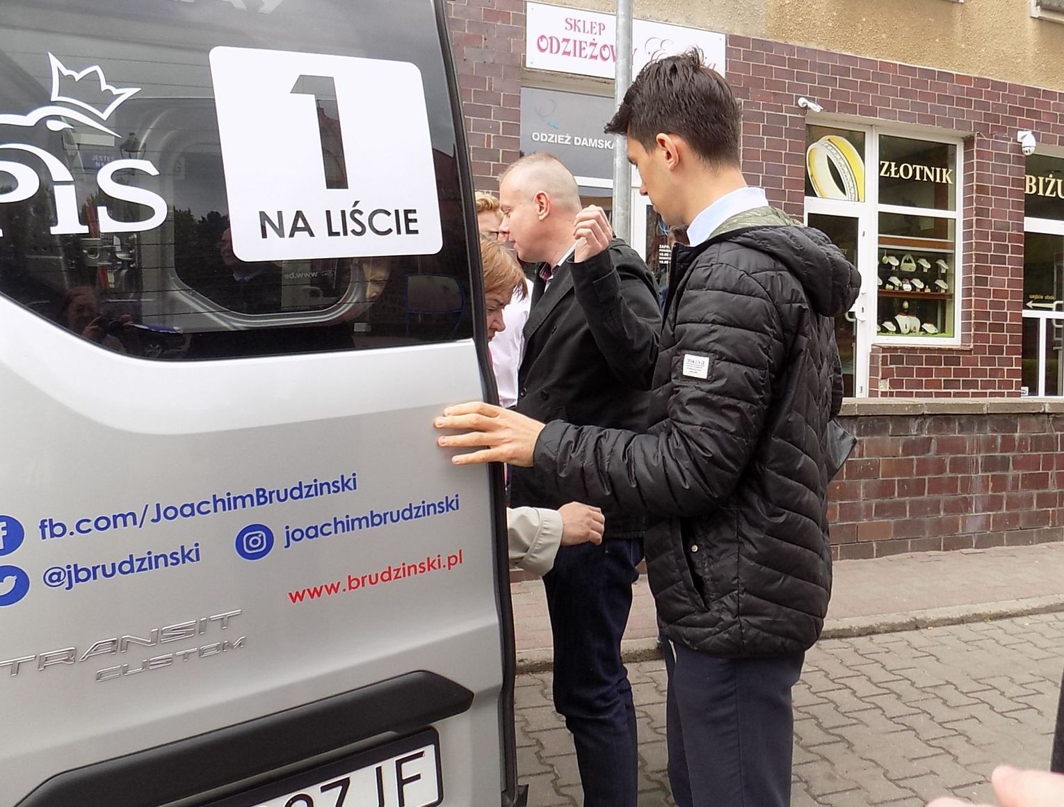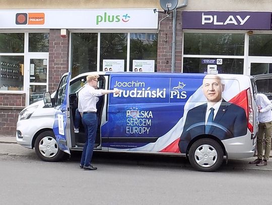 Dziś bus z podobizną Joachima Brudzińskiego krążył po powiecie. Tuż po południu był w Gryfinie. Głównym miejscem promocji był pl. Barnima. W Chojnie BrudzińskiBus pojawił się na pl. Konstytucji 3 Maja i przed dużymi sklepami.