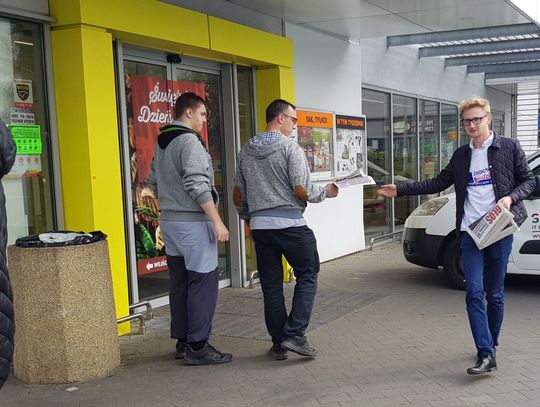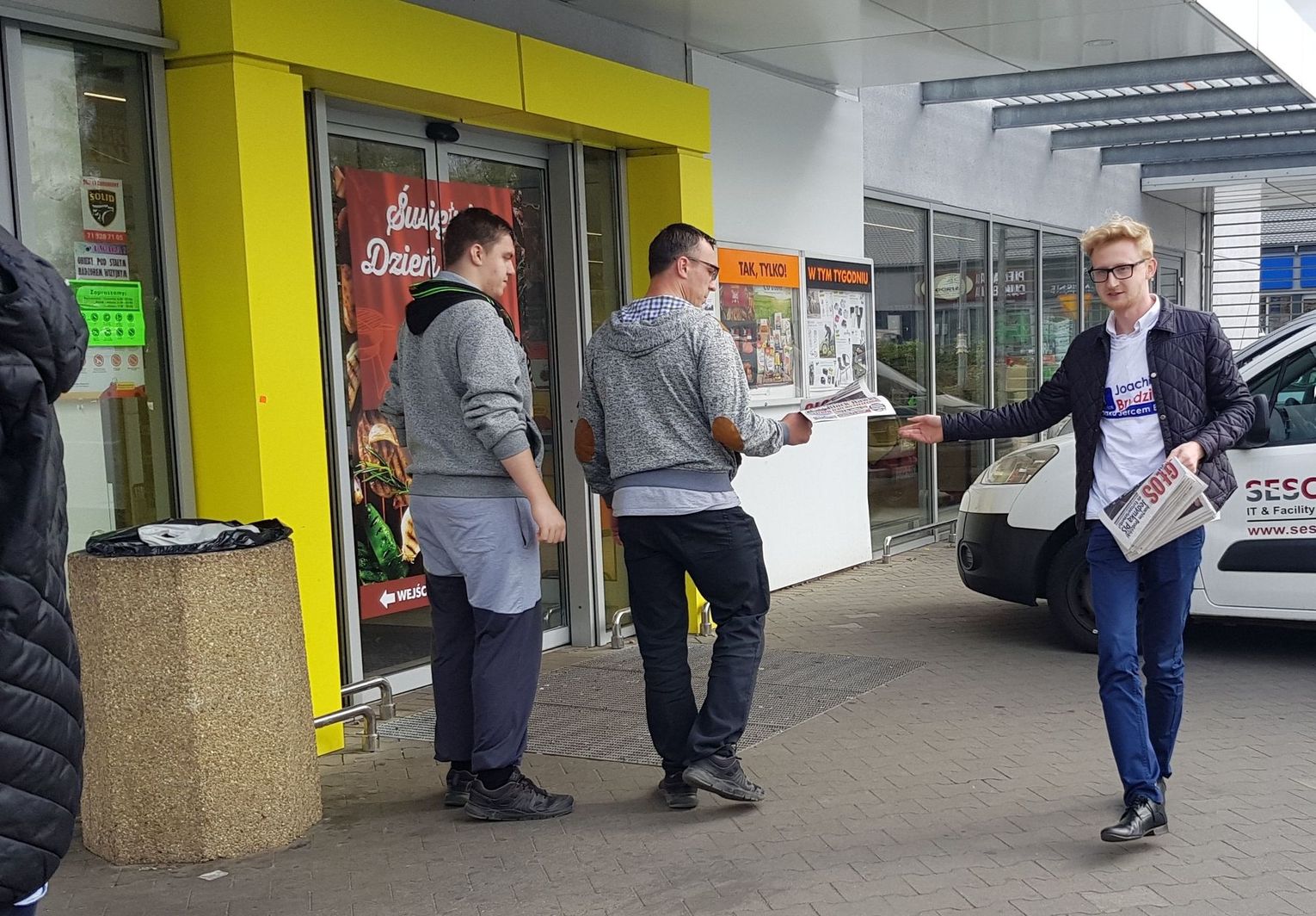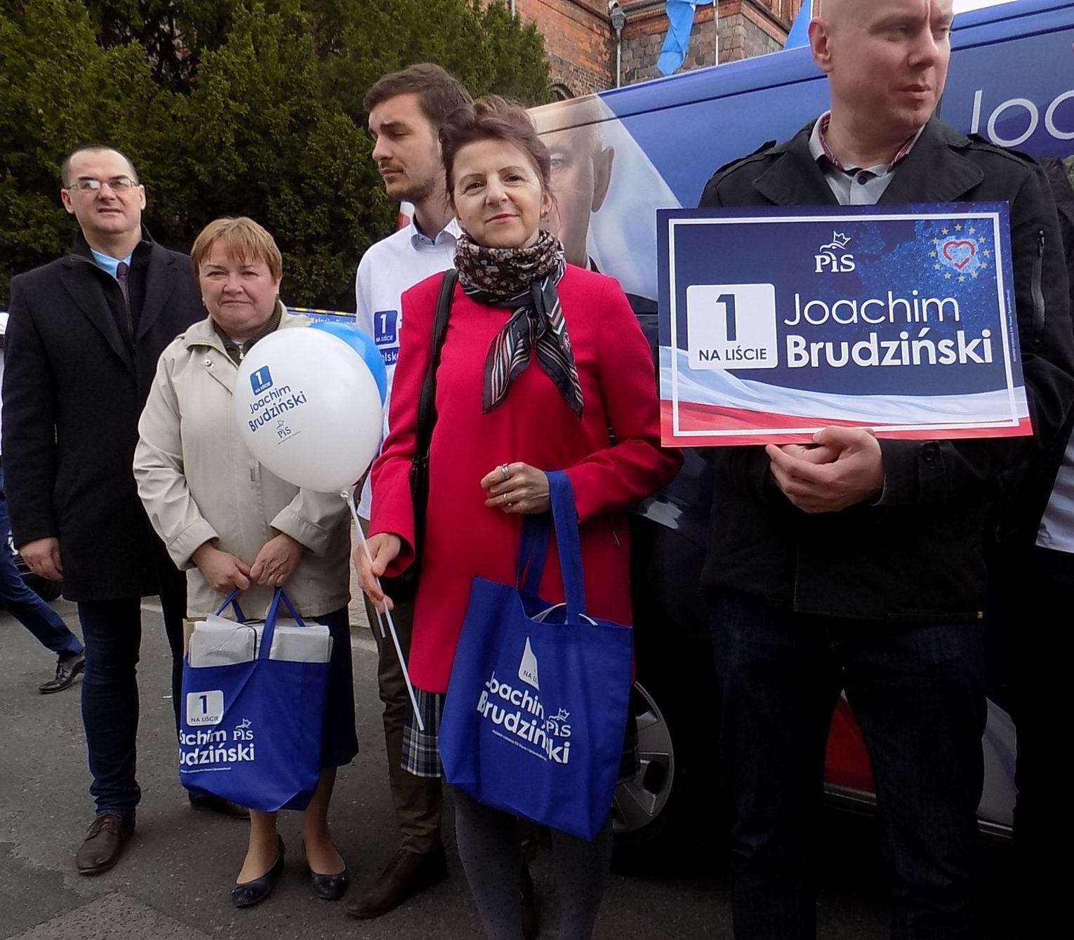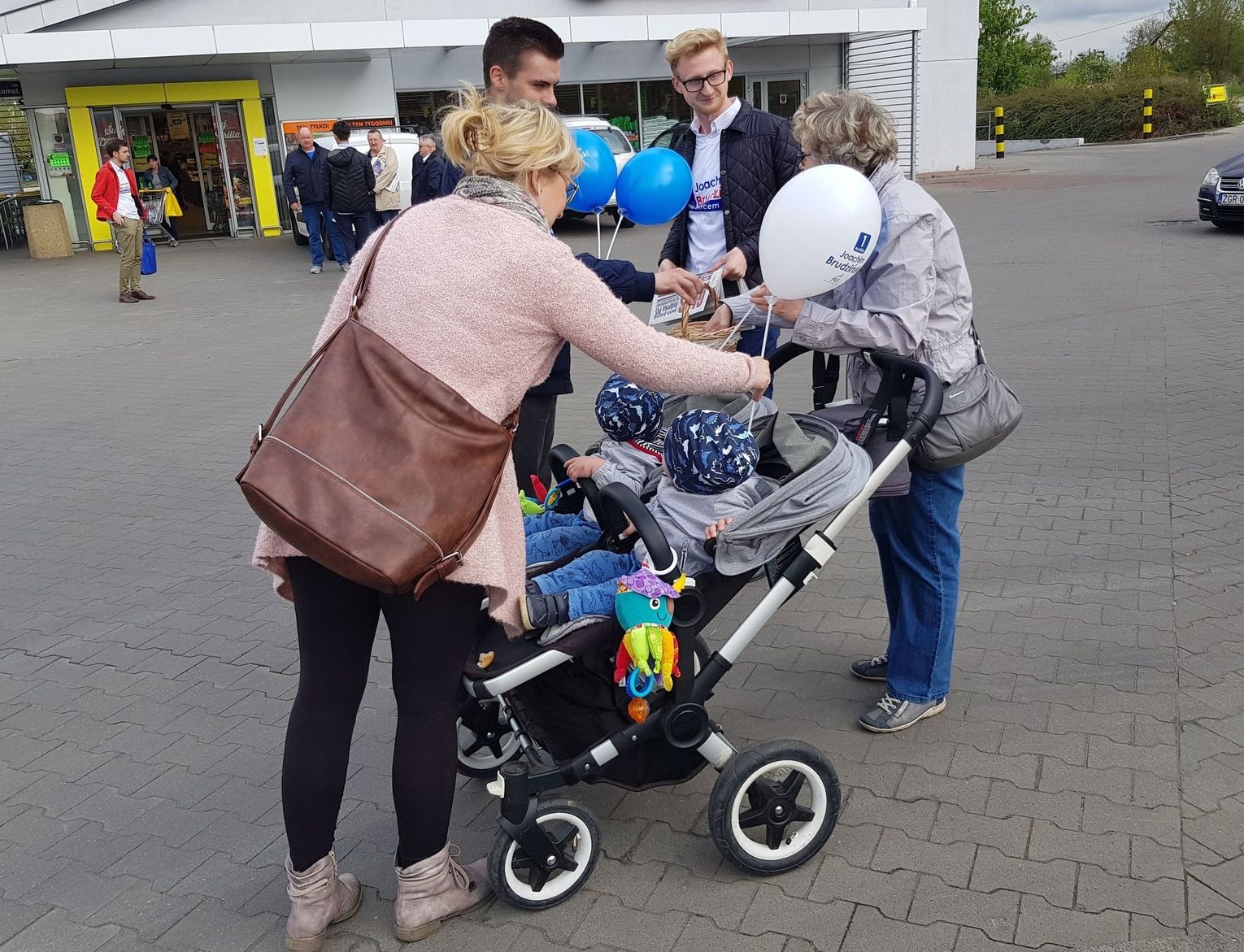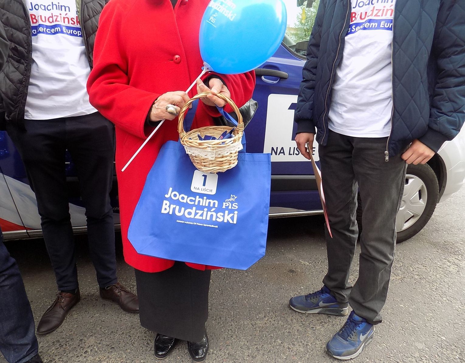 Młodzi ludzie z młodzieżówki PiS wraz z lokalnymi działaczami namawiali do głosowania na Joachima Brudzińskiego. Rozdawali ulotki, torby, długopisy, cukierki i balony.