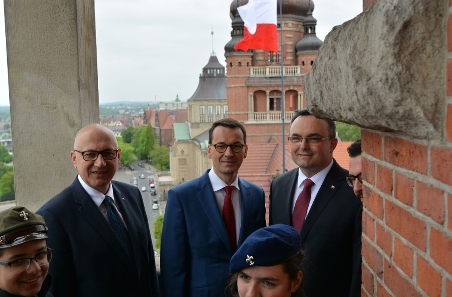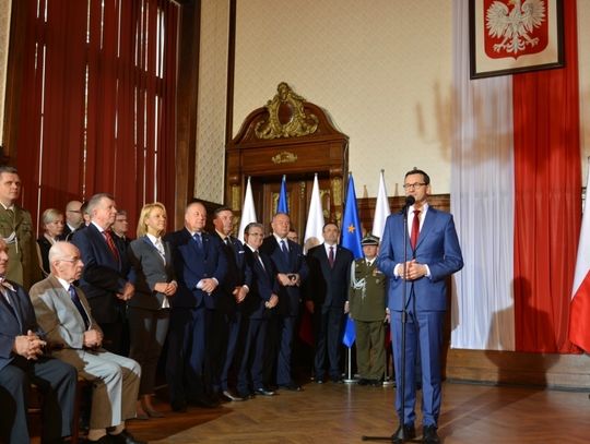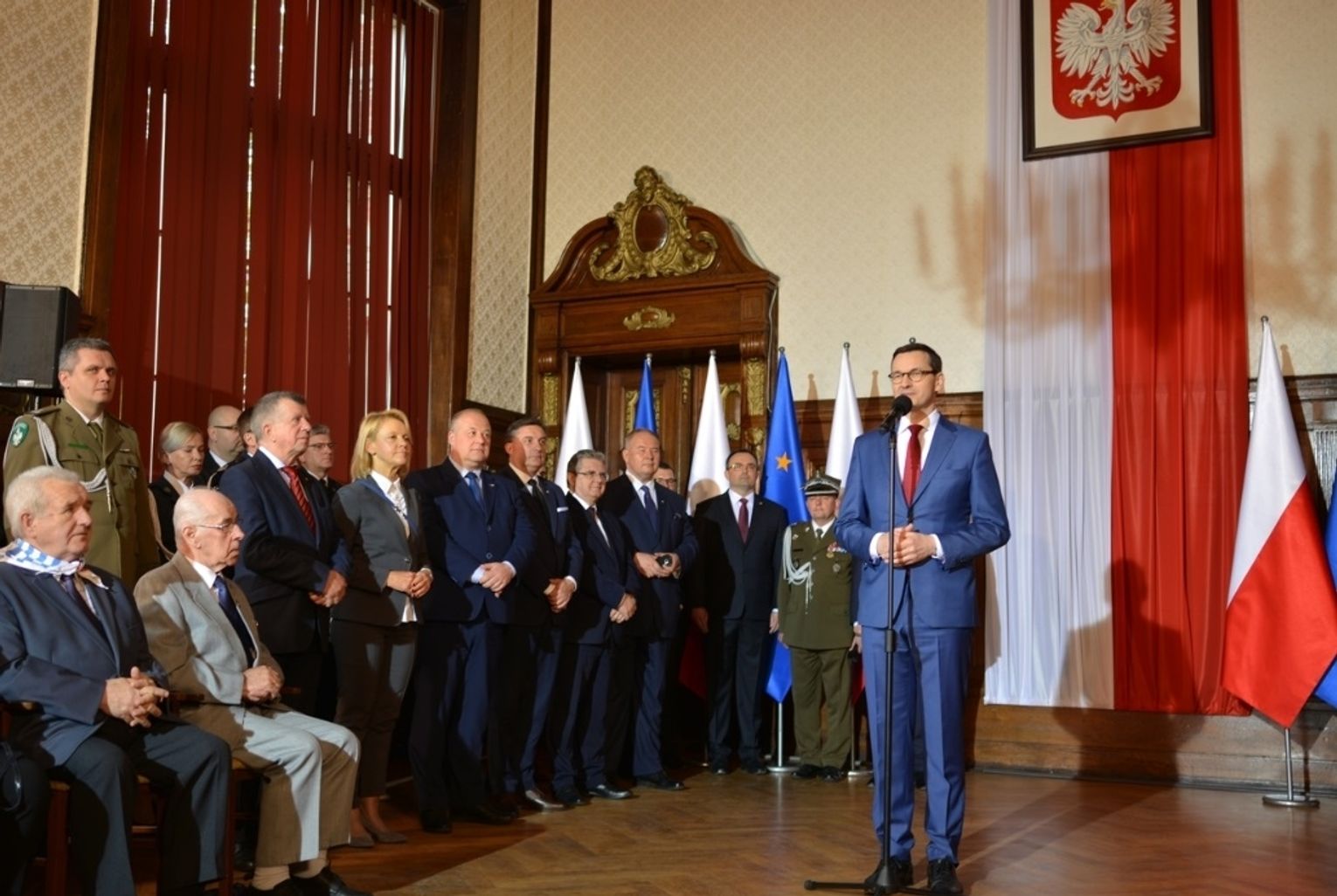 Po podniesieniu flagi, któremu towarzyszyło odegranie przez orkiestrę wojskową hymnu państwowego, w Zachodniopomorskim Urzędzie Wojewódzkim premier i minister spotkali się z harcerzami, kombatantami i działaczami opozycji antykomunistycznej.