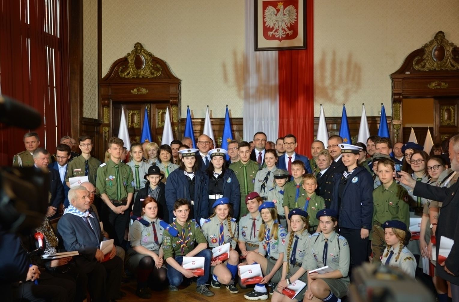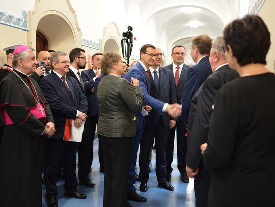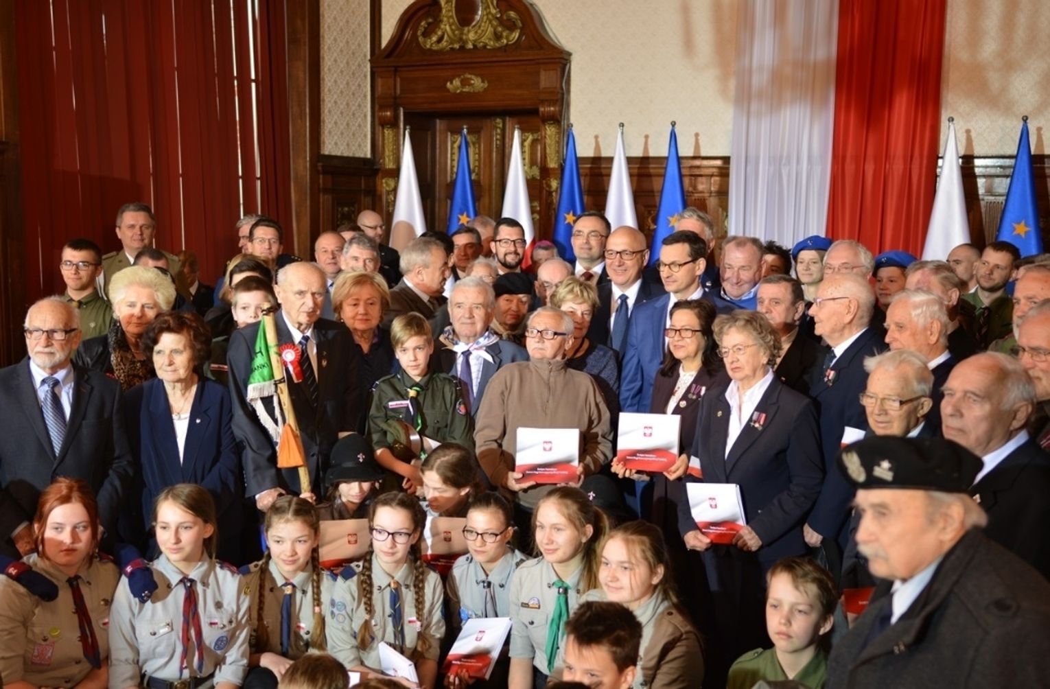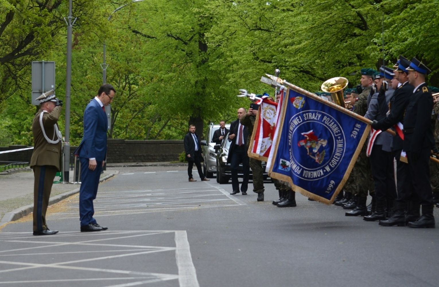 Po podniesieniu flagi, któremu towarzyszyło odegranie przez orkiestrę wojskową hymnu państwowego, w Zachodniopomorskim Urzędzie Wojewódzkim premier i minister spotkali się z harcerzami, kombatantami i działaczami opozycji antykomunistycznej.