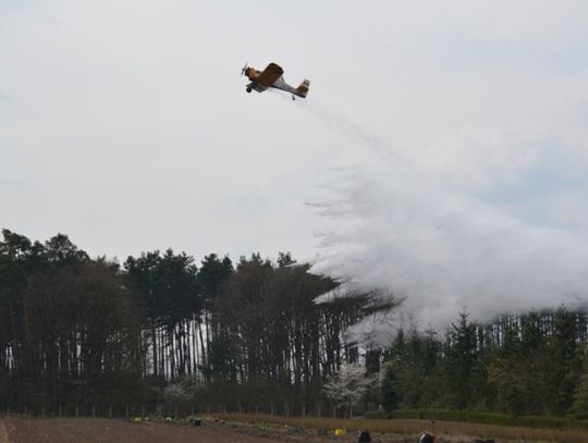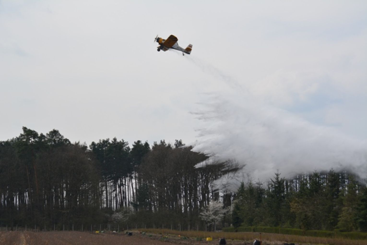 Po przyjeździe na teren działań grupy operacyjnej, pożar obejmował swoim zasięgiem powierzchnię ok. 25 ha i w dalszym ciągu rozprzestrzeniał się w kierunku północnym. Na miejsce koncentracji dojeżdżały kolejne jednostki dysponowane przez Stanowisko Kierowania. Kierujący Działaniem Ratowniczym wspólnie z pracownikami nadleśnictwa do ugaszenia pożaru zadysponował samolot gaśniczy Dromader.