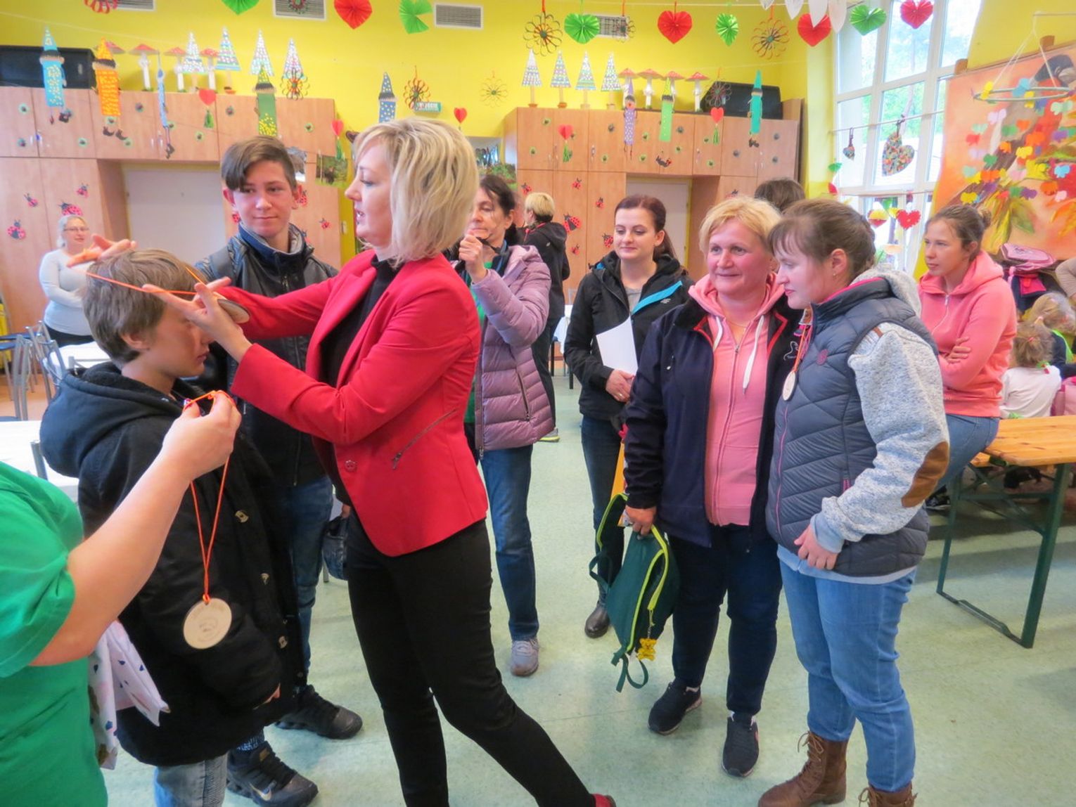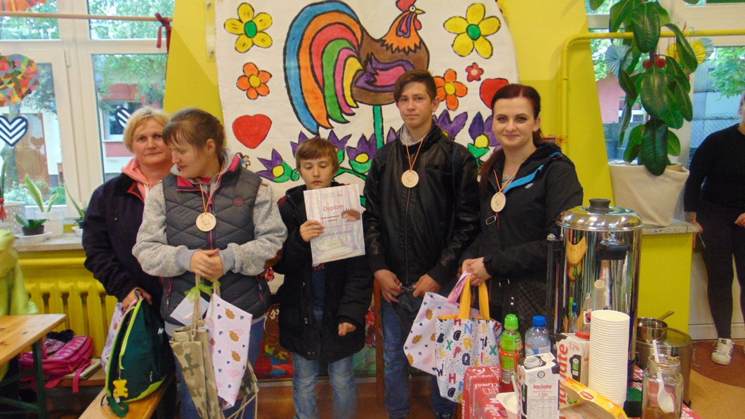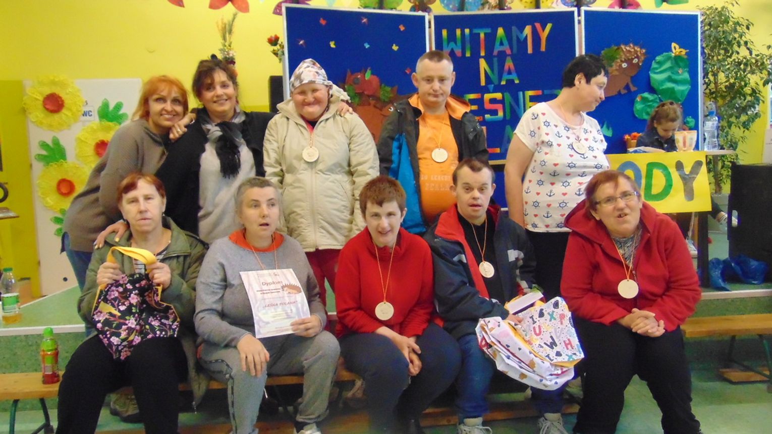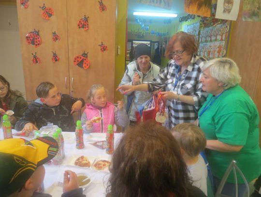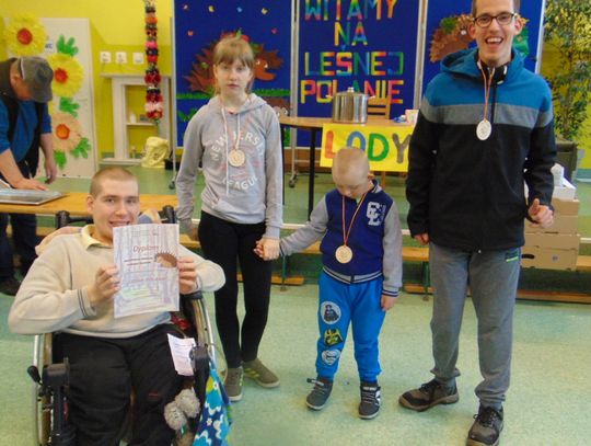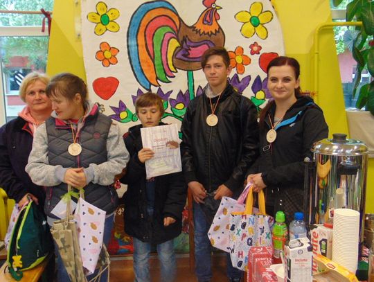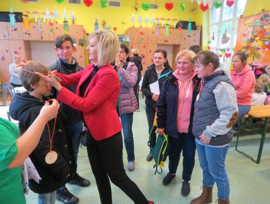 Każdy z uczestników na koniec otrzymał medal z jeżykiem, wesołym symbolem tegorocznej imprezy oraz drobny upominek. Nagrody wręczali wicestarosta powiatu gryfińskiego Ewa Dudar i dyrektor ZS w Nowym Czarnowie Małgorzata Wakuluk. Serdeczne podziękowania składamy sponsorom imprezy: Starostwu Powiatowemu w Gryfinie, Stowarzyszeniu na Rzecz Osób Niepełnosprawnych MOST oraz sklepowi Intermarche. Szczególnie ciepłe podziękowania kierujemy do dyrektor Domu Pomocy Społecznej w Nowym Czarnowie Julii Porwit, która jak zawsze wsparła naszą inicjatywę. Dziękujemy również wolontariuszom z Zespołu Szkół Ponadgimnazjalnych nr 2 w Gryfinie za wszelką pomoc. Ekologiczny charakter imprezy wsparł Powiatowy Zakład Aktywizacji Zawodowej w Gryfinie, który wykonał specjalnie z tej okazji okolicznościowe medale oraz kolorowe torby na upominki.