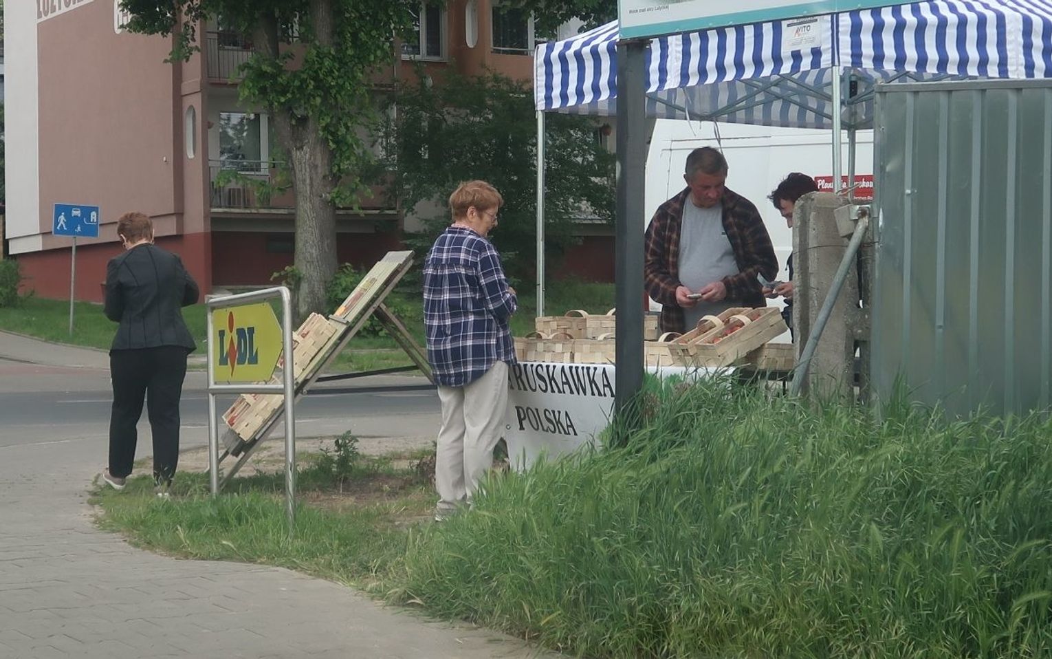 Zdradzamy, tym miejscem jest ul. Chrobrego. Po prostu stoisko z owocami ustawione jest na chodniku, jak to w Gryfinie.