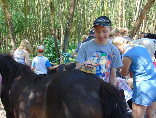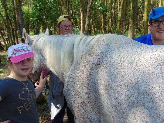 Wierzbowy Las to urokliwe miejsce schowane nieopodal głównej drogi do Kołbacza. Mieliśmy okazję obcować z przyrodą przez duże P. Las, konie różnej maści i wielkości, przygarnięty przez gospodarzy mały dzik, którego mama zginęła pod kołami auta i przyjazne, przemiłe psiaki gospodarzy. Nasi uczniowie mieli okazję wziąć udział w porannej toalecie koni, pojeździć na trójkołowych „rumakach” oraz rywalizować w licznych konkurencjach zręcznościowych. Mamy z Rady Rodziców zapewniły kiełbaski, które piekliśmy na ognisku. Były też napoje oraz upieczone przez rodziców pyszne ciasta. Dziękujemy gospodarzom Wierzbowego Lasu oraz wszystkim, dzięki którym był to bardzo udany Dzień Dziecka.
