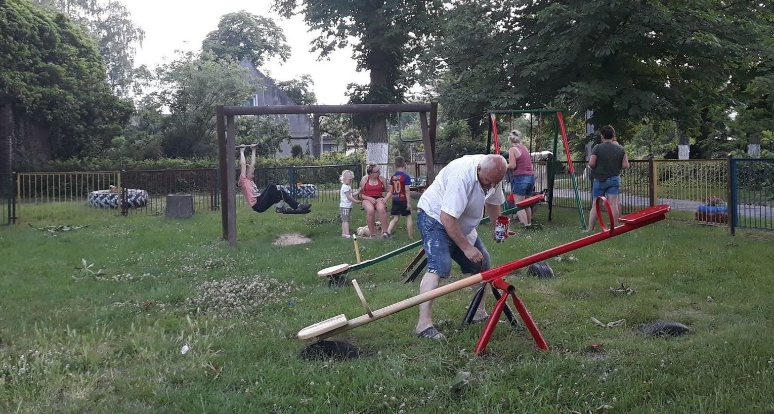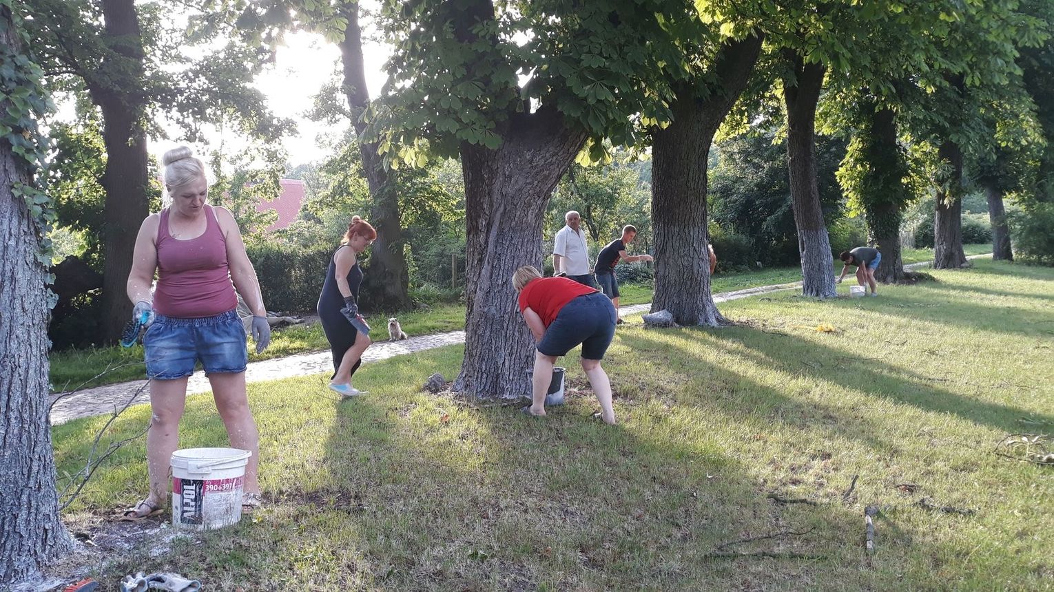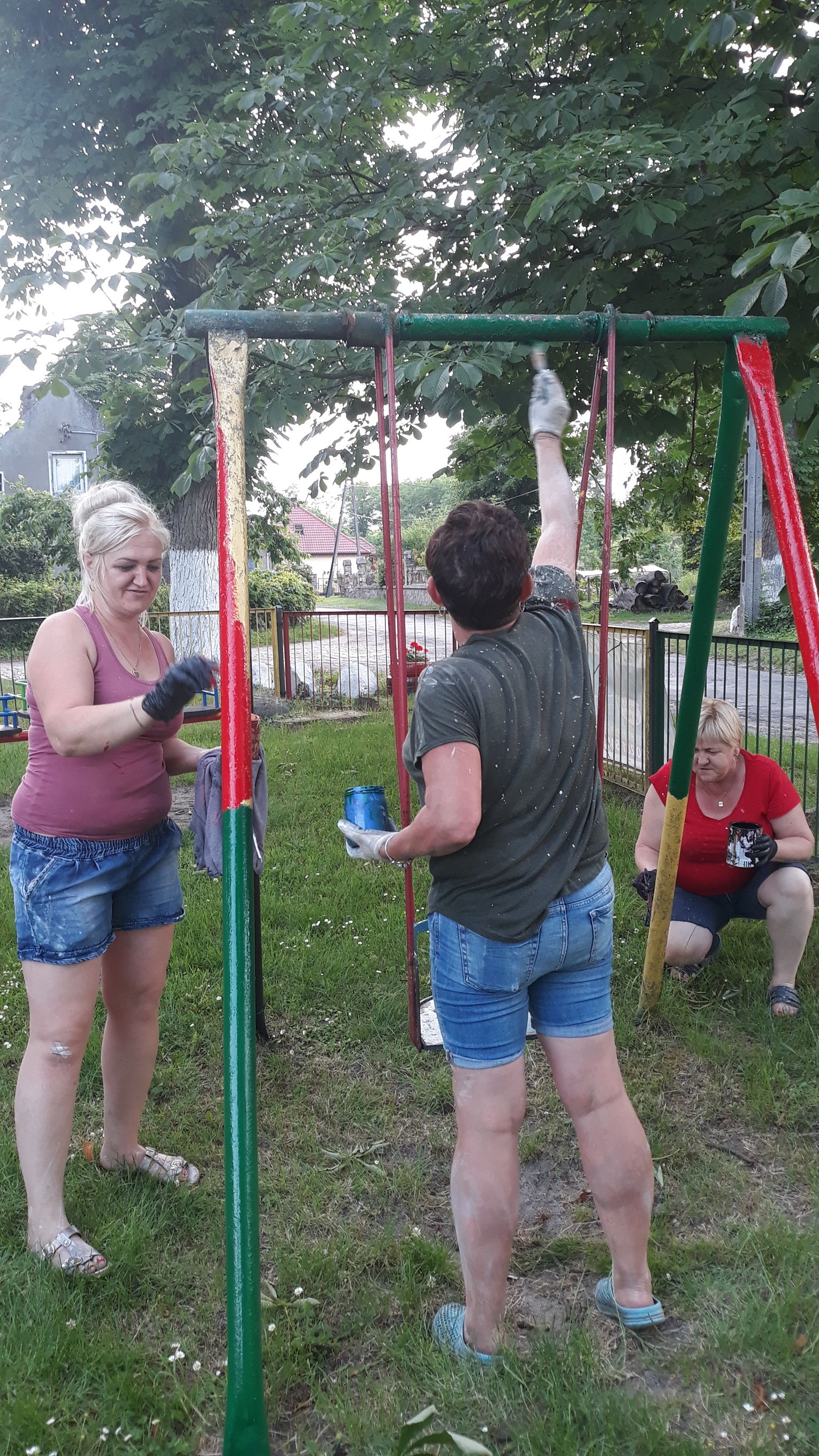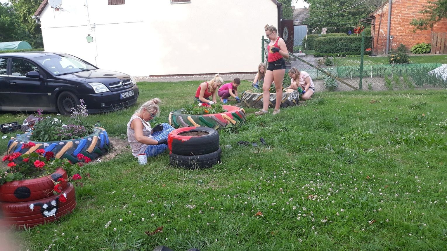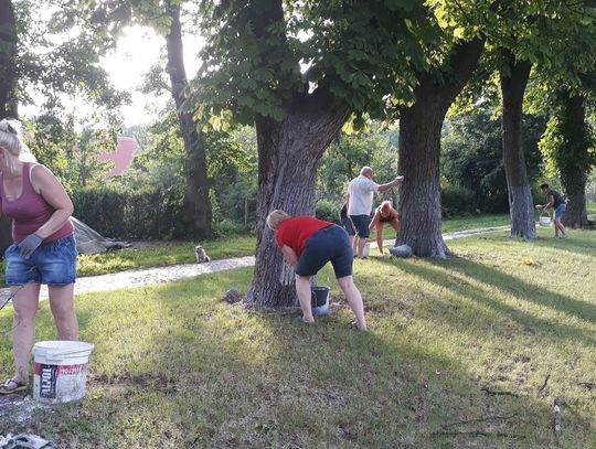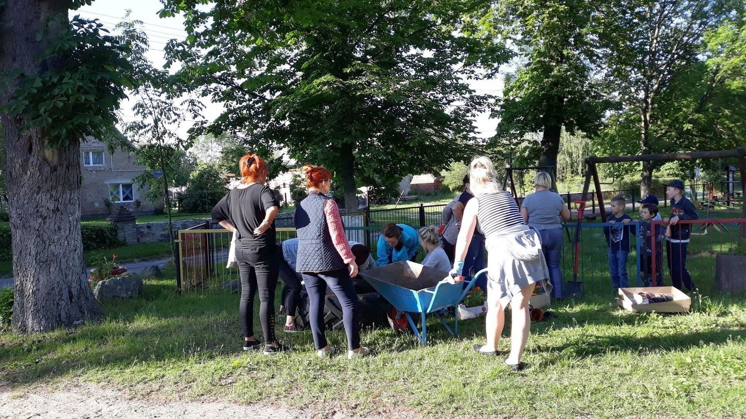 Szczególnie serdecznie dziękujemy zaangażowanym mieszkańcom naszej miejscowości za poświęcenie swojego wolnego czasu na pracę w czynie społecznym, jakim było zrobienie klombów z opon, pomalowanie i obsadzenie kwiatami, o białkowanie drzew, pomalowanie huśtawek na placu zabaw.