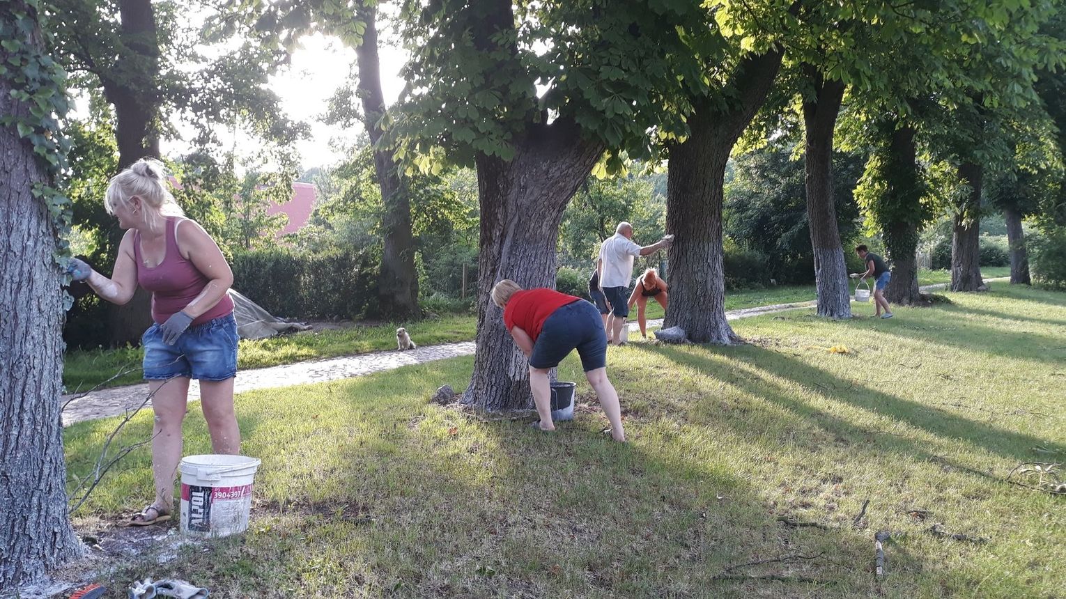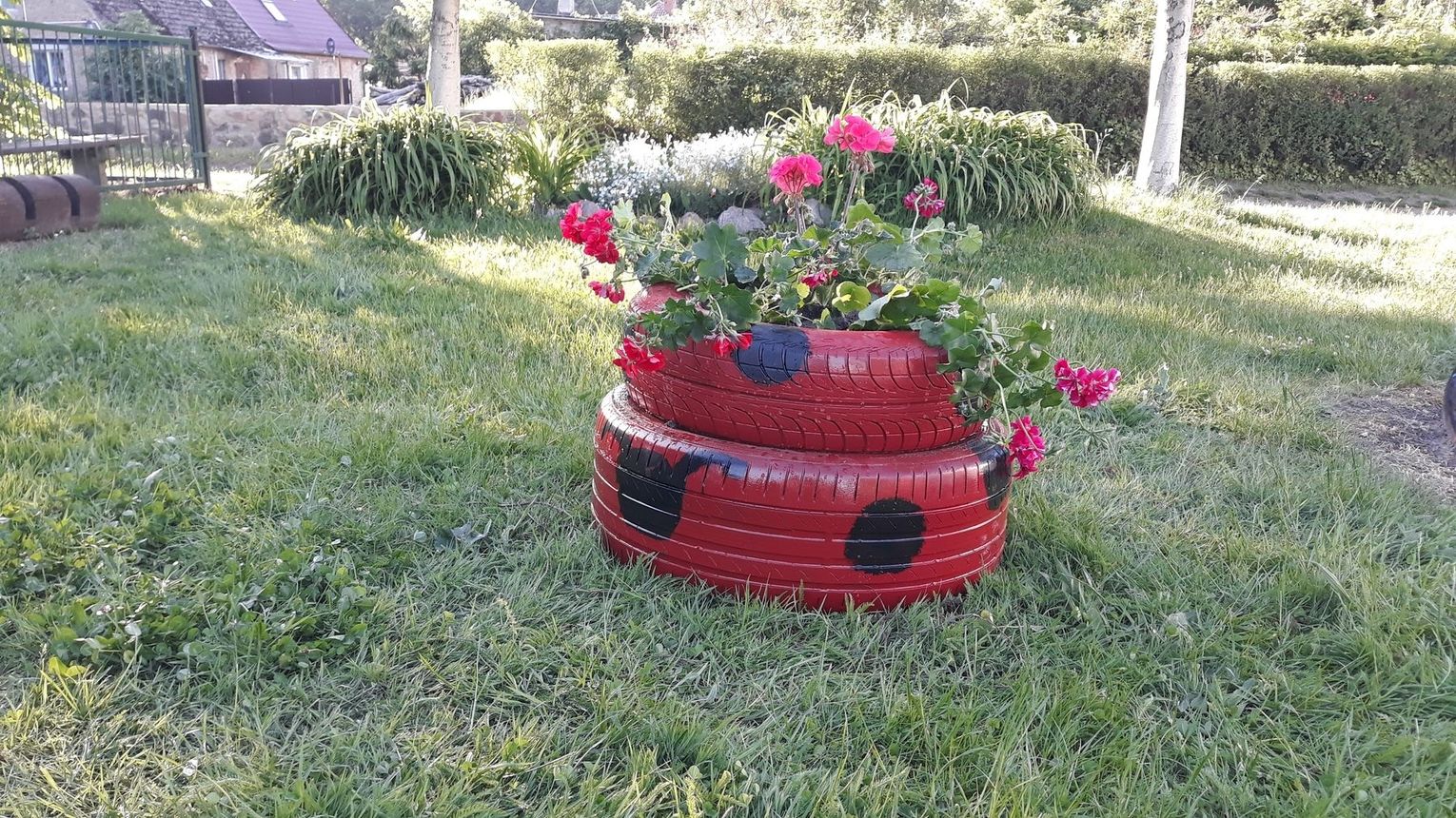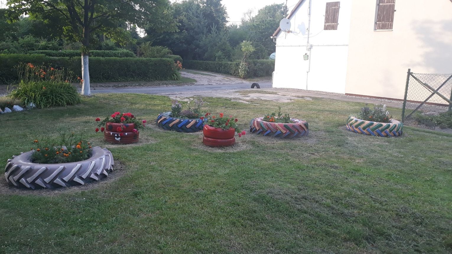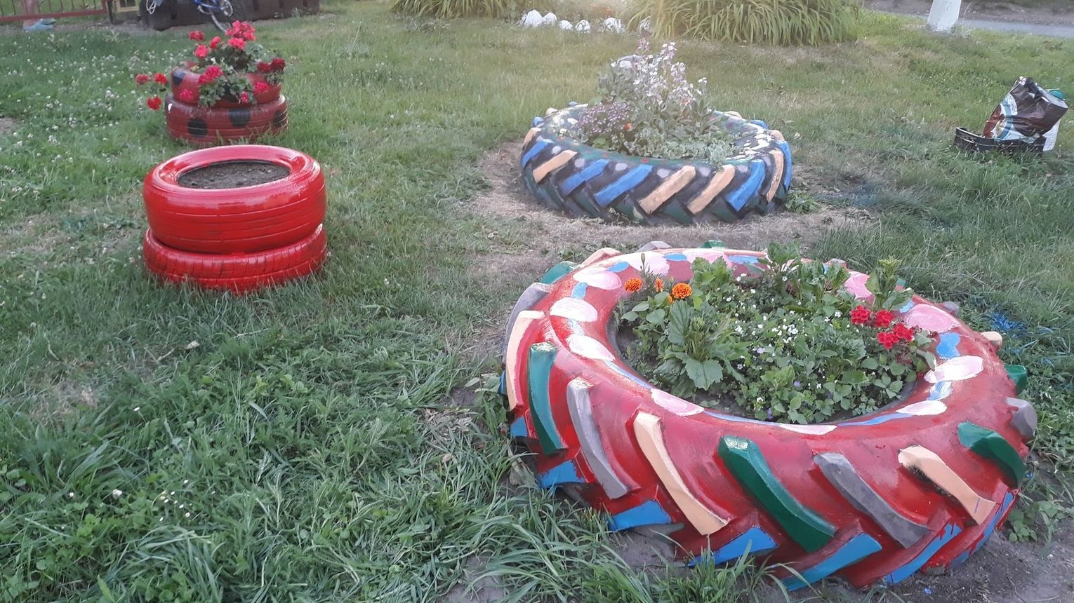 Szczególnie serdecznie dziękujemy zaangażowanym mieszkańcom naszej miejscowości za poświęcenie swojego wolnego czasu na pracę w czynie społecznym, jakim było zrobienie klombów z opon, pomalowanie i obsadzenie kwiatami, o białkowanie drzew, pomalowanie huśtawek na placu zabaw.